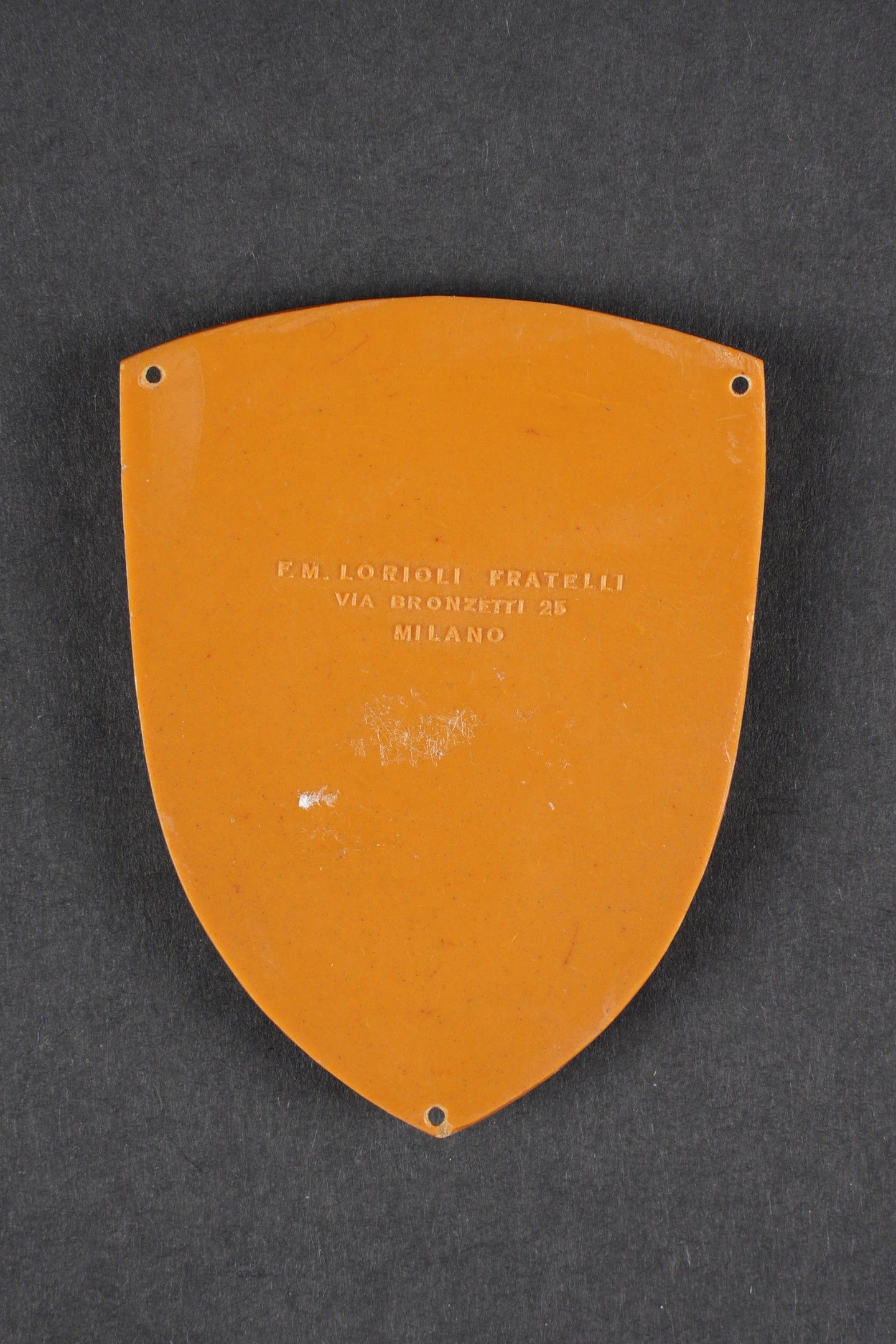 Handle plate of the 7th Legion of the MVSN. In bakelite, discrete lacks of paint. Three fixing points. Manufactured by Lorioli Fratelli Milano. Some wear and patina to be noted. Condition II+. MVSN 7th Legion Sleeve Plaque Bakelite plaque with minor paint losses. Three attachment points. Made by Lorioli Fratelli Milano. Some wear and patina noted. Condition II+.