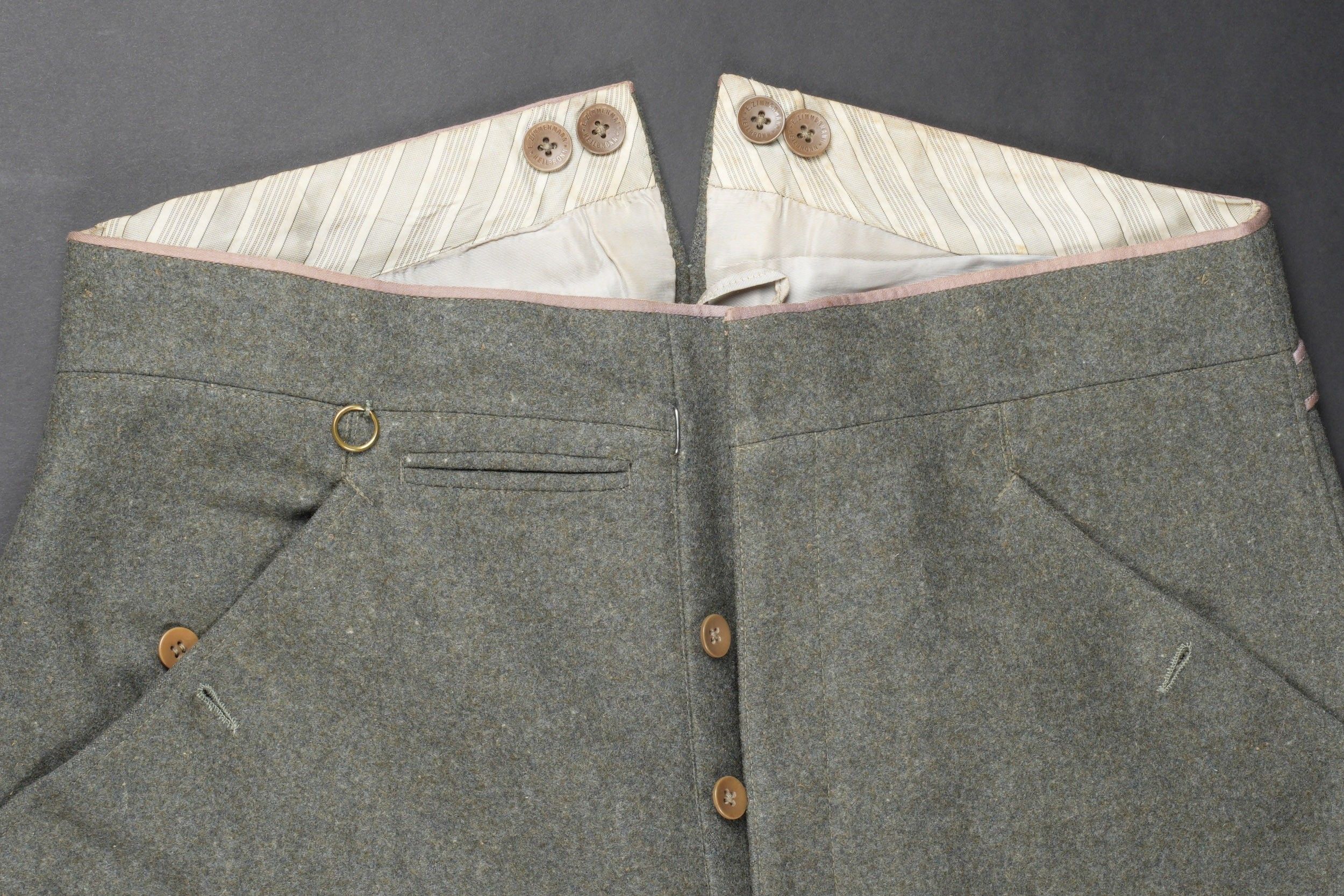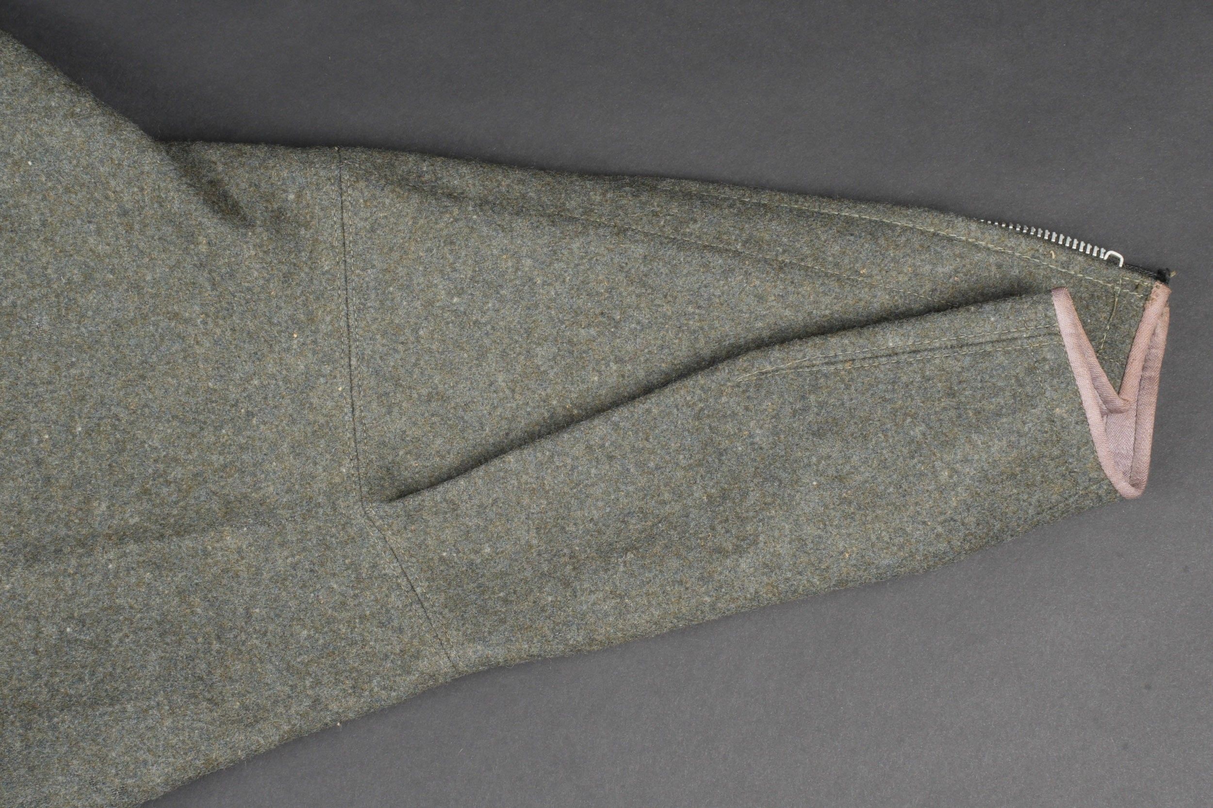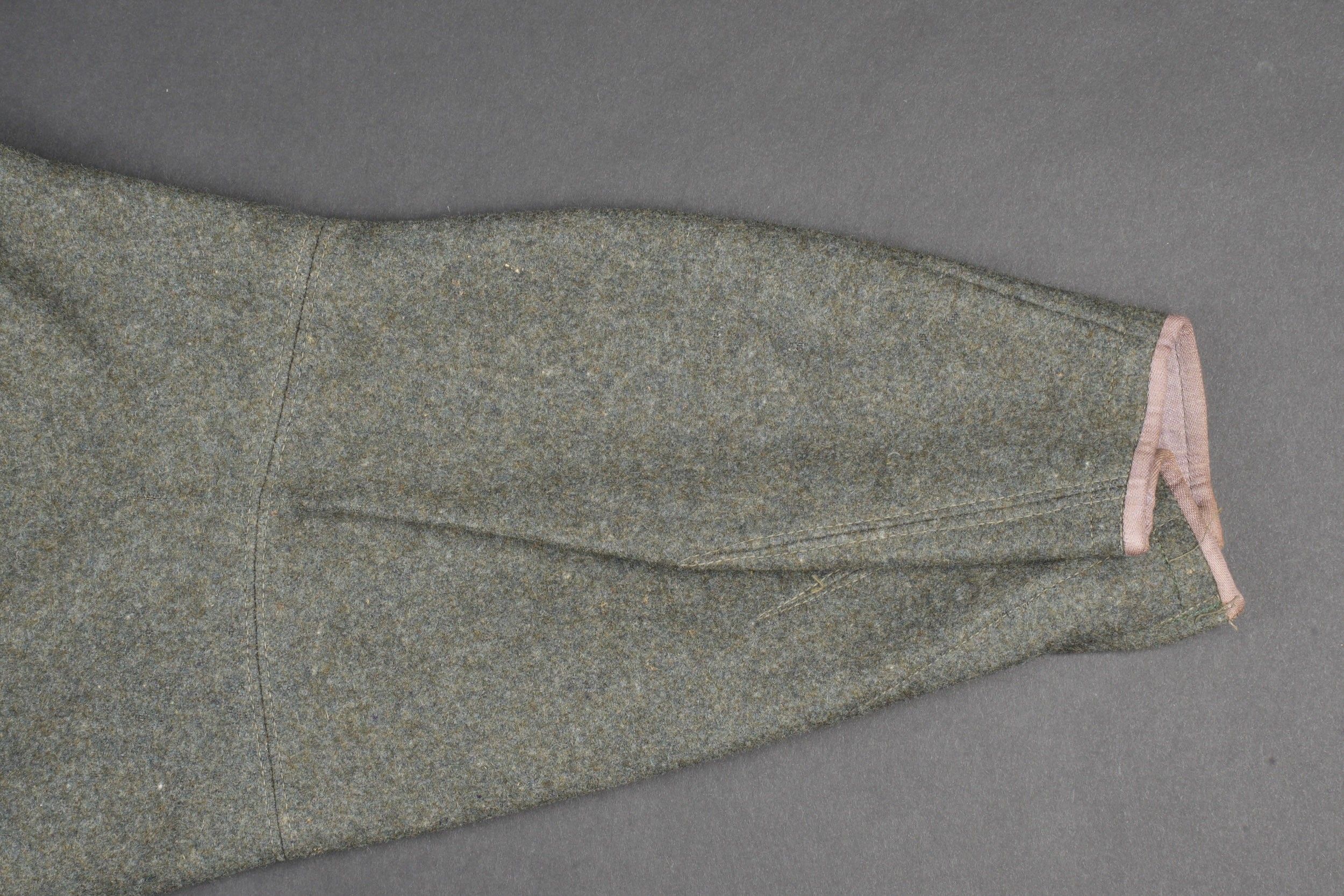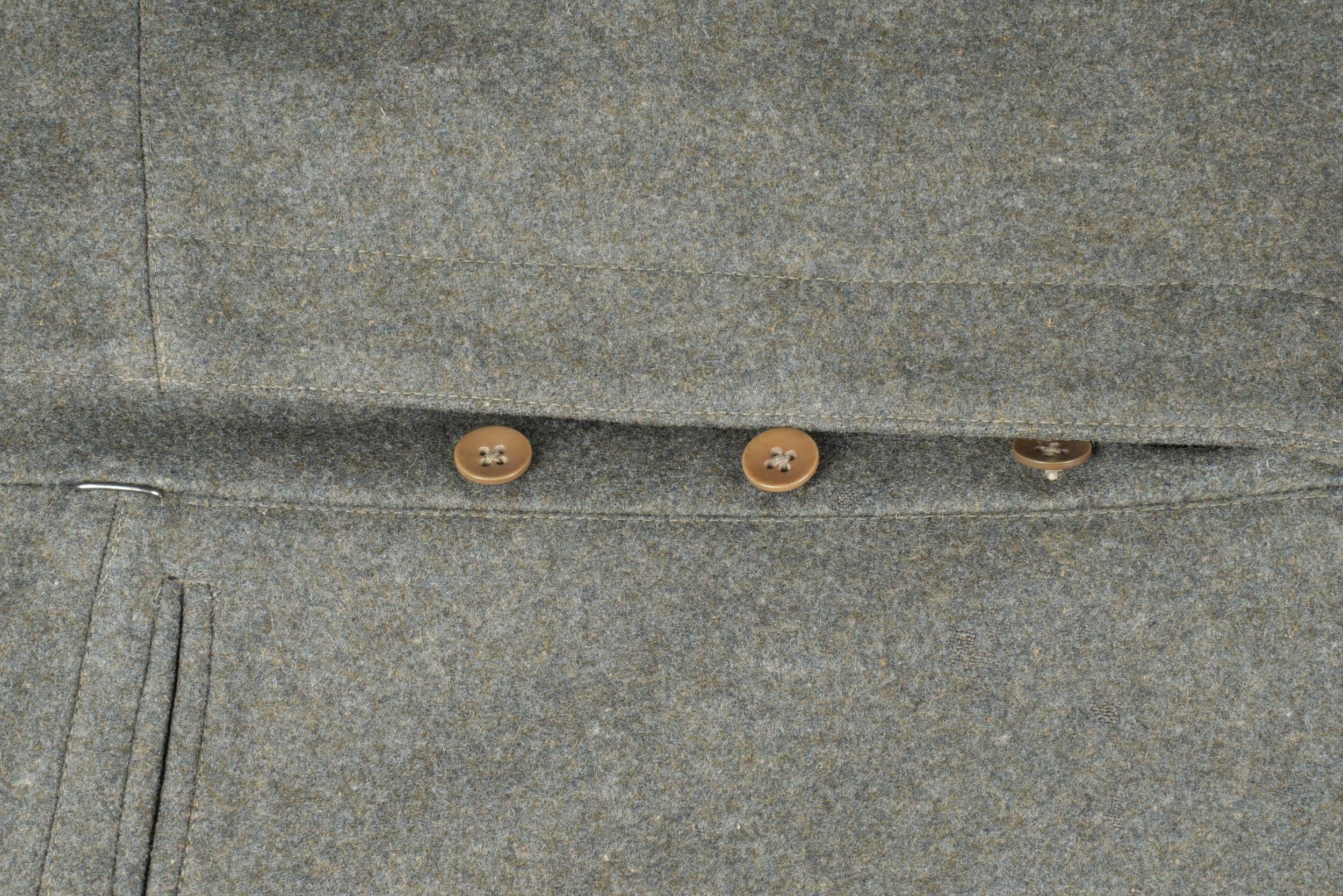 Saddlebags. In Feldgrau cloth. All buttons are present. Some are made by Zimmermann. Legs close with functional zips. Interior lined in civilian fabric. No visible markings. Some wear and patina to be noted, as well as a few moth marks and repairs. Condition II+. Riding breeches in Feldgrau cloth. All buttons present, some marked Zimmermann. Lower legs with working zippers. Lined in civilian fabric without visible markings. Some wear and patina on the piece with minor moth traces and repairs. Condition II+