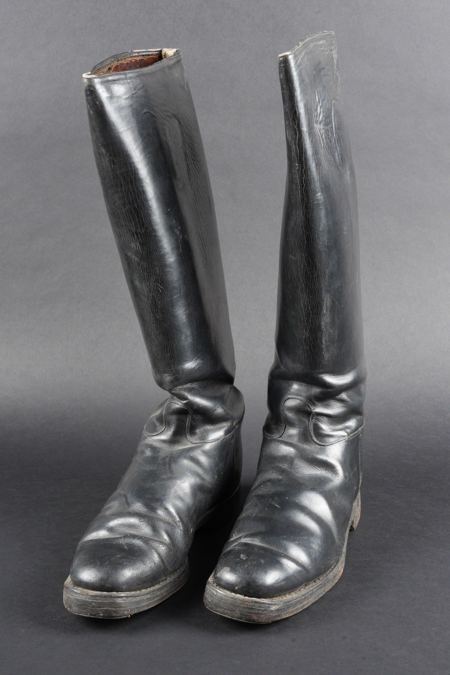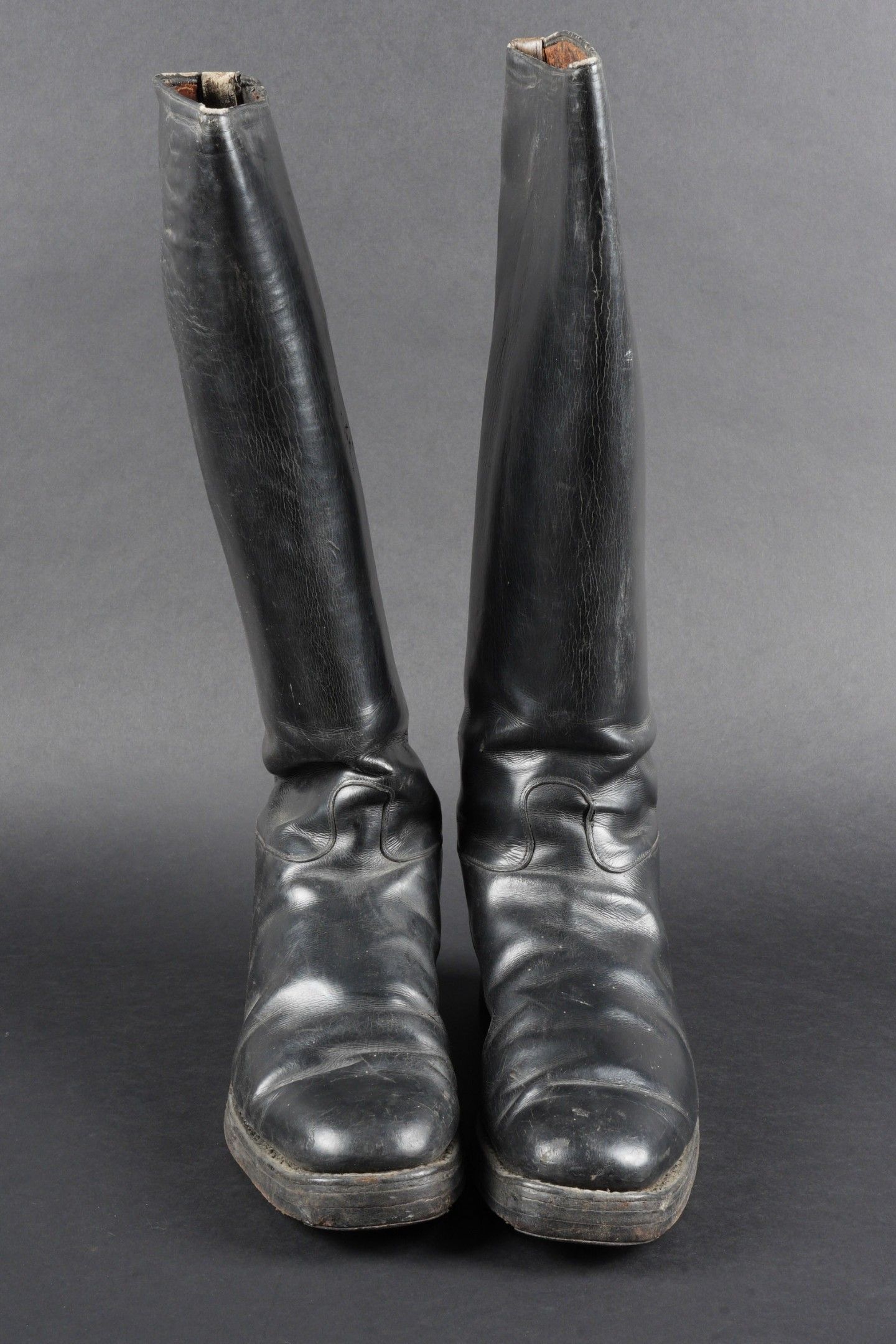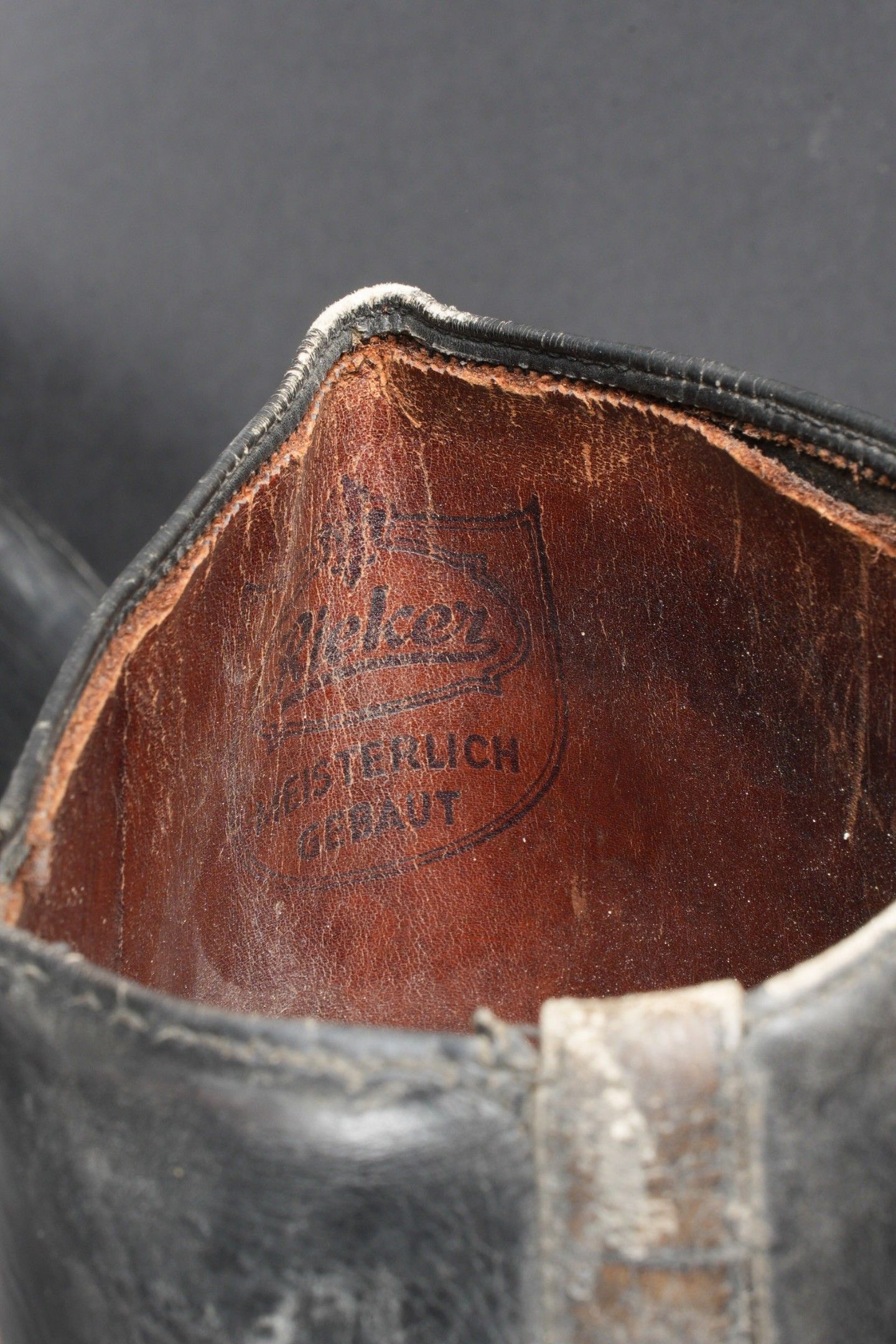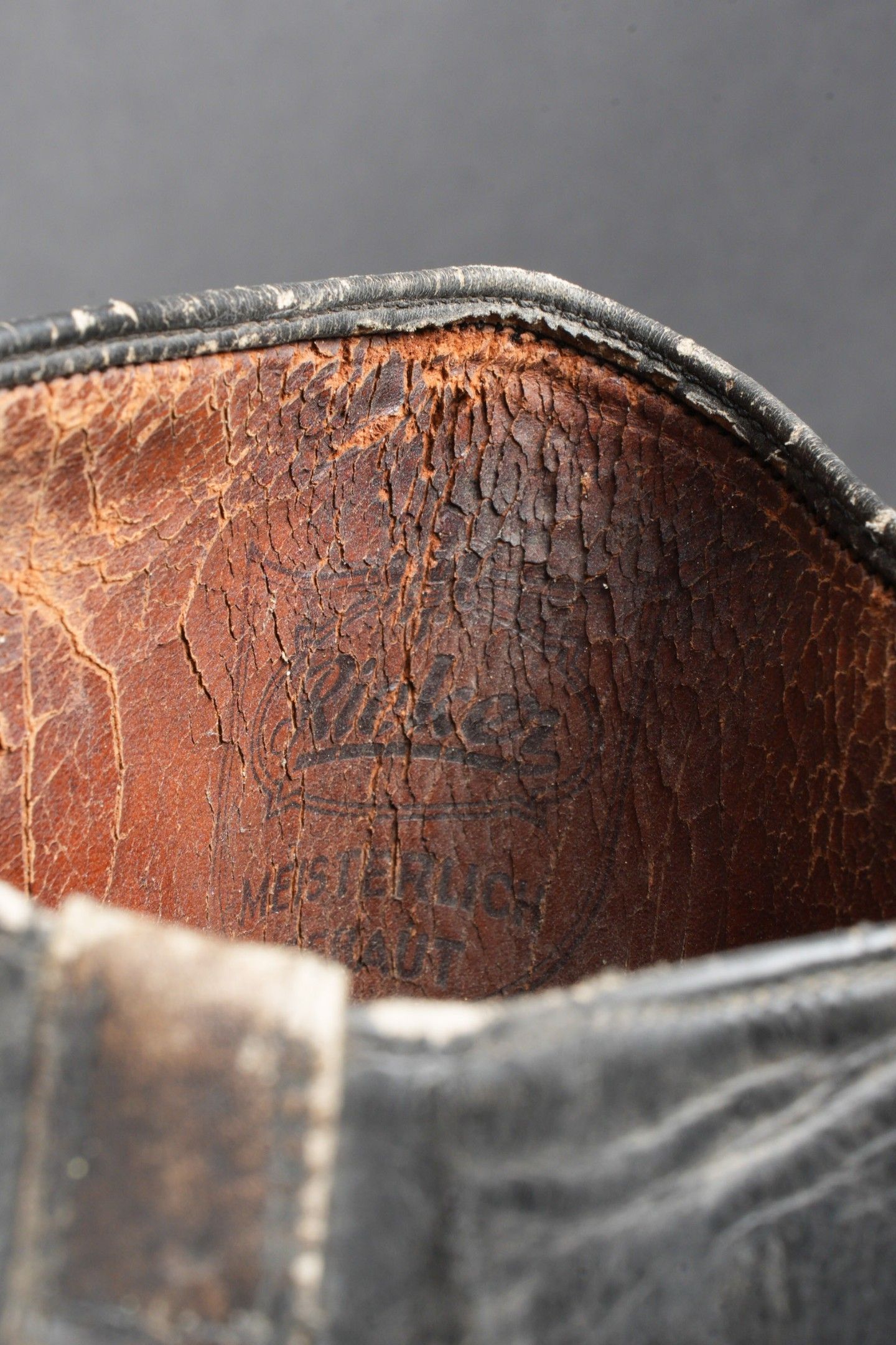 German officer boots. Homogenous pair. High uppers. In thick black leather. Made by Rieker. Leather soles and heels, shod. Some wear and patina. Condition II+. German officer boots. Matching pair in thick black leather with leather soles and heels fitted with nails. Made by Rieker. Some wear and patina on the pieces. Condition II+