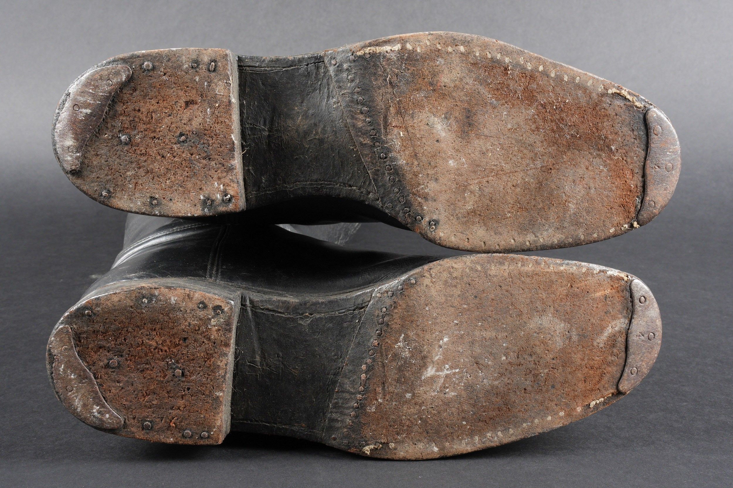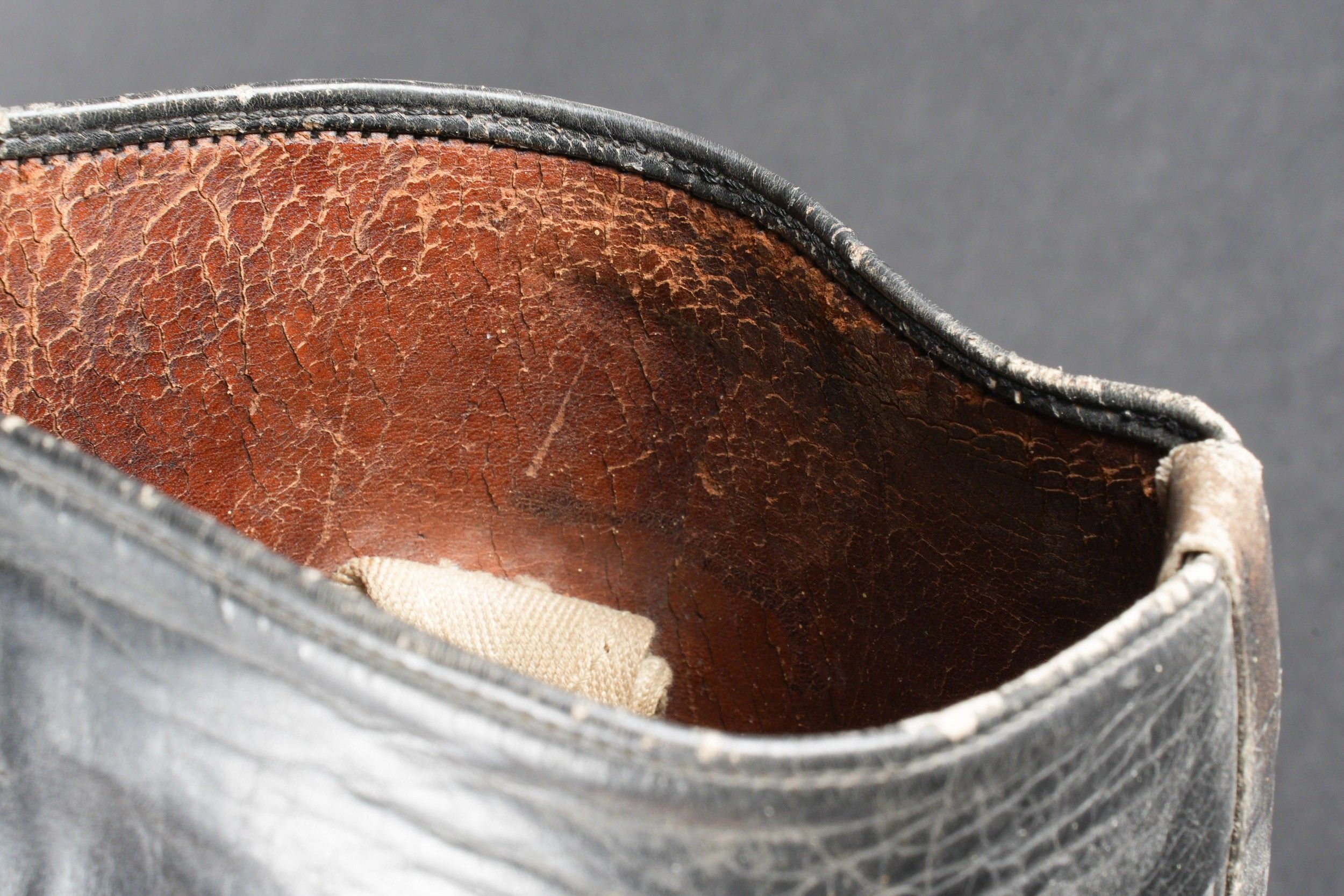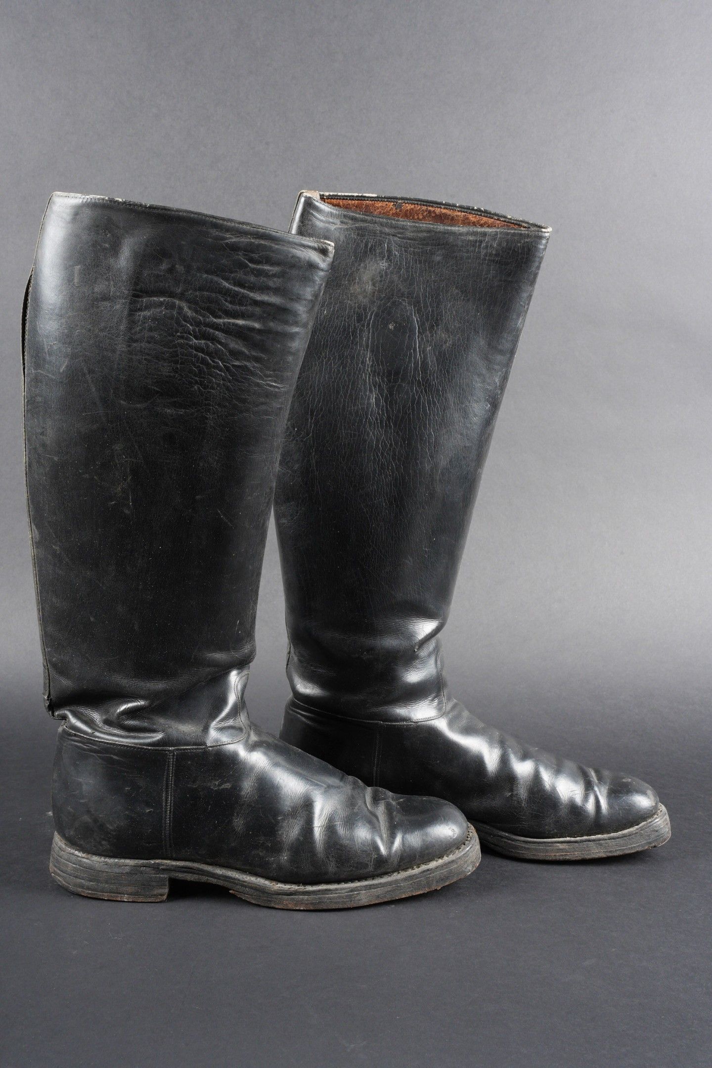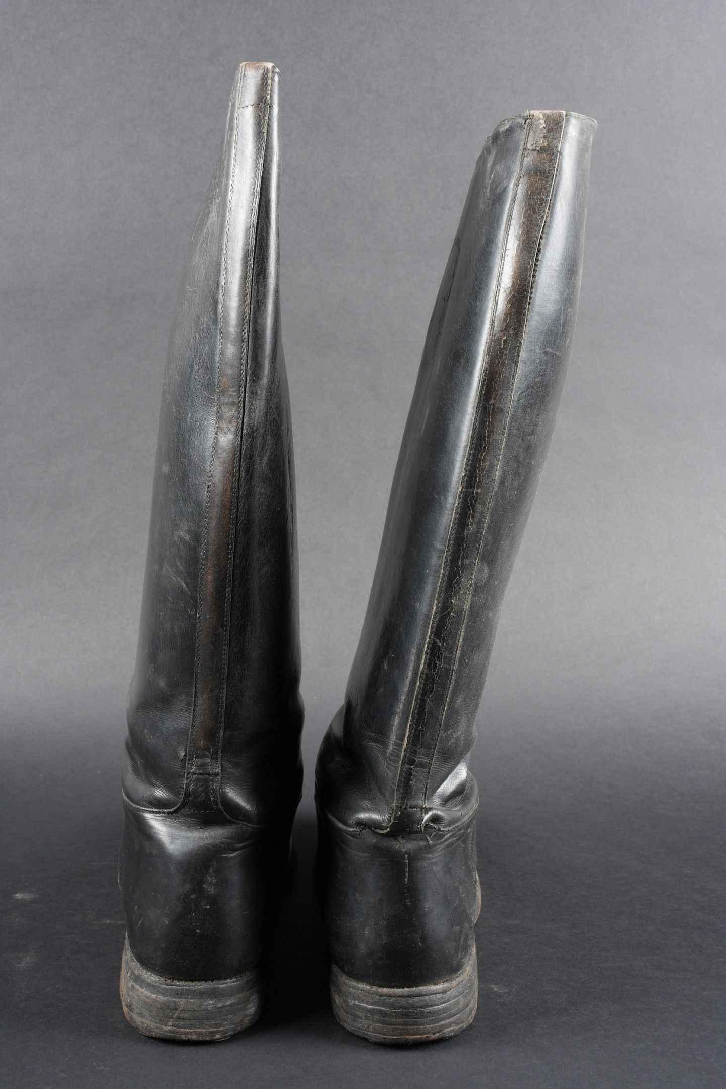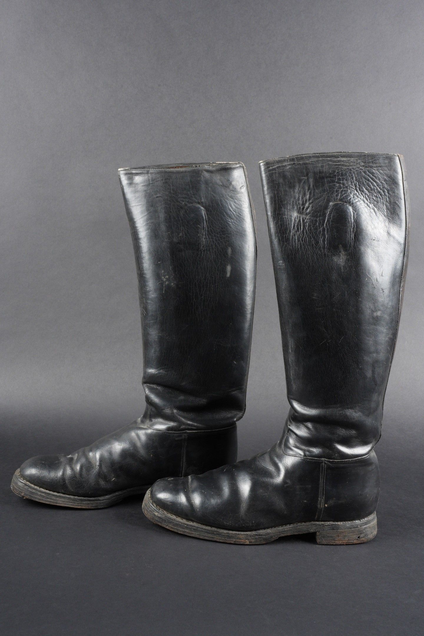 German officer boots. Homogenous pair. High uppers. In thick black leather. Made by Rieker. Leather soles and heels, shod. Some wear and patina. Condition II+. German officer boots. Matching pair in thick black leather with leather soles and heels fitted with nails. Made by Rieker. Some wear and patina on the pieces. Condition II+