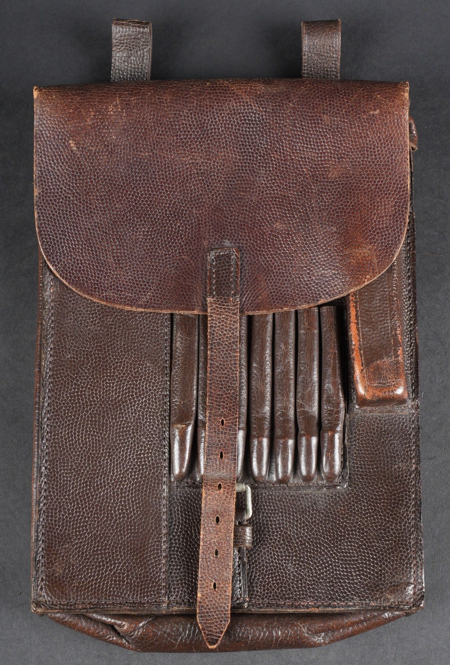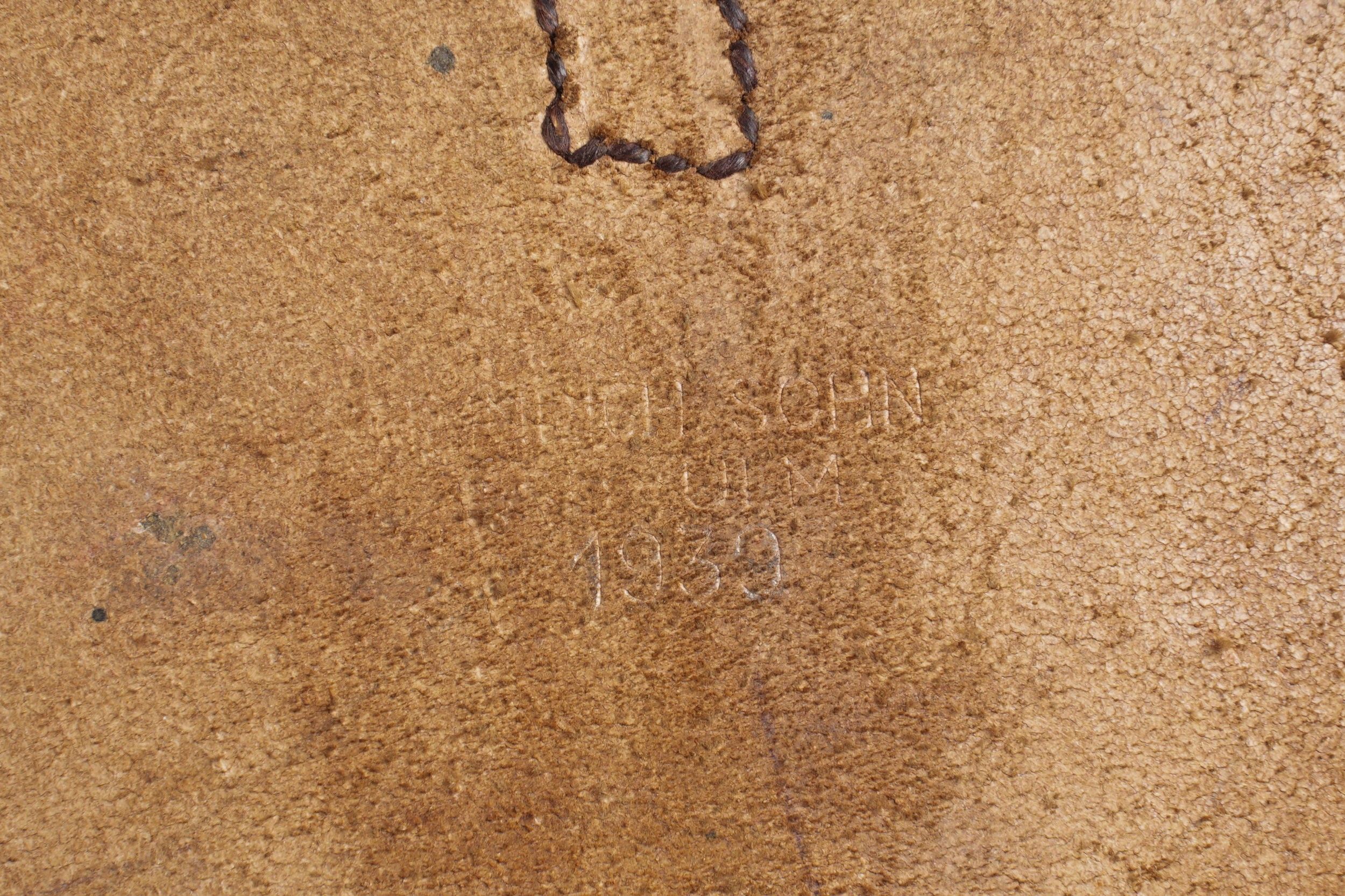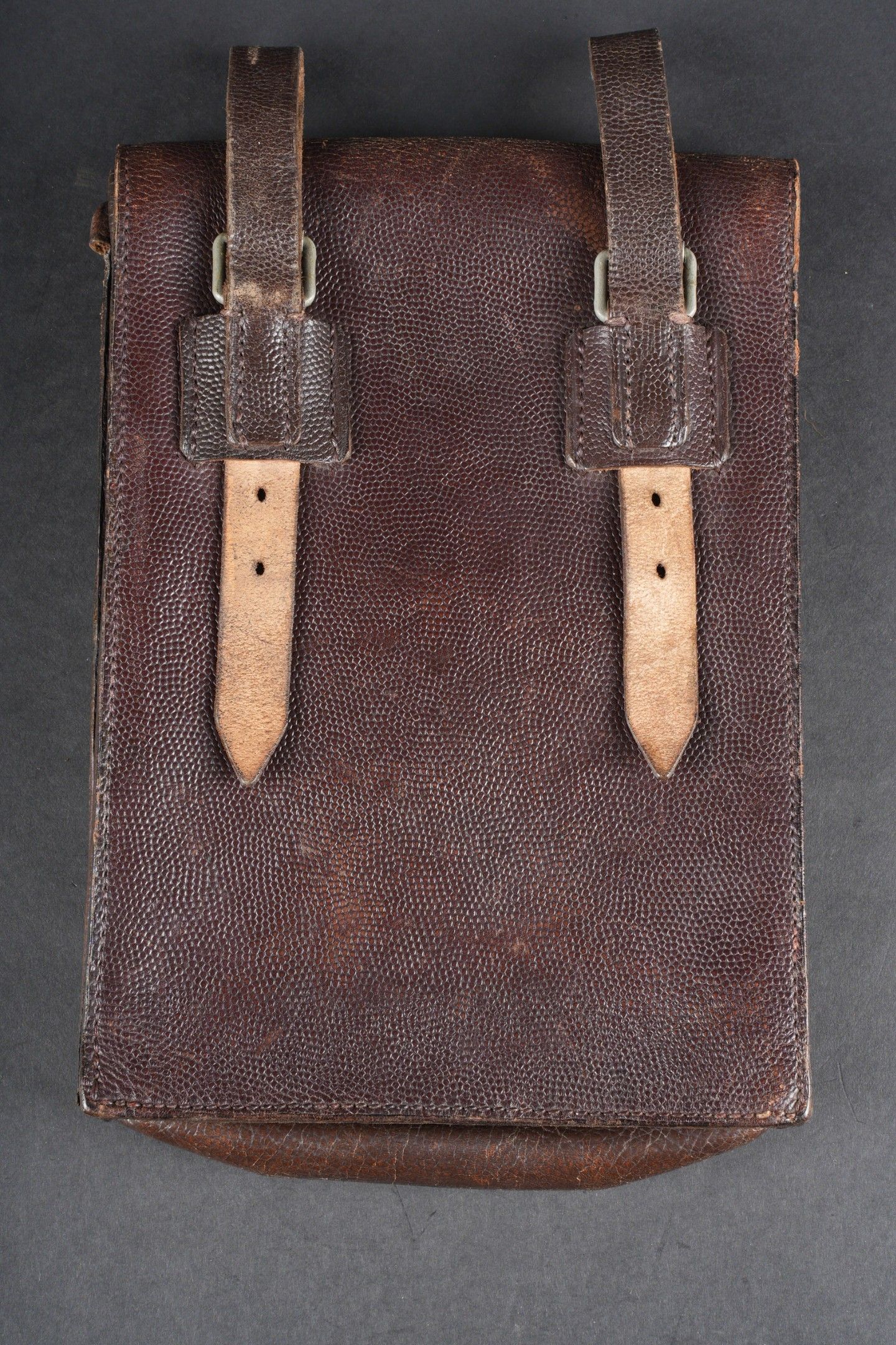 German card holder. Brown grained leather. All straps are present. Empty. Manufacturer's markings illegible. Dated 1939. Some wear and patina. Condition II+. German map case in brown grained leather. All straps present. Empty. Maker's markings illegible. Dated 1939. Some wear and patina on the piece. Condition II+