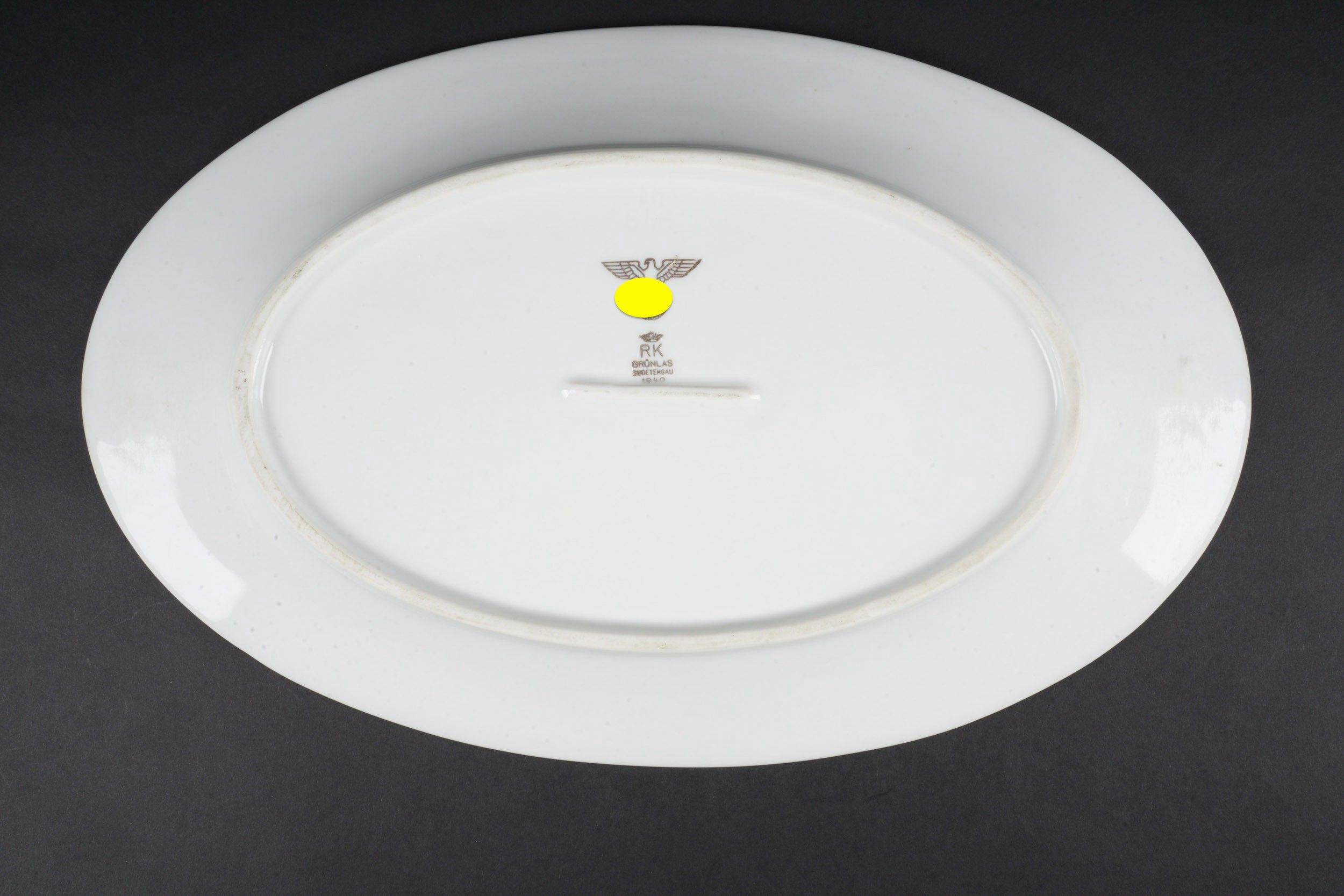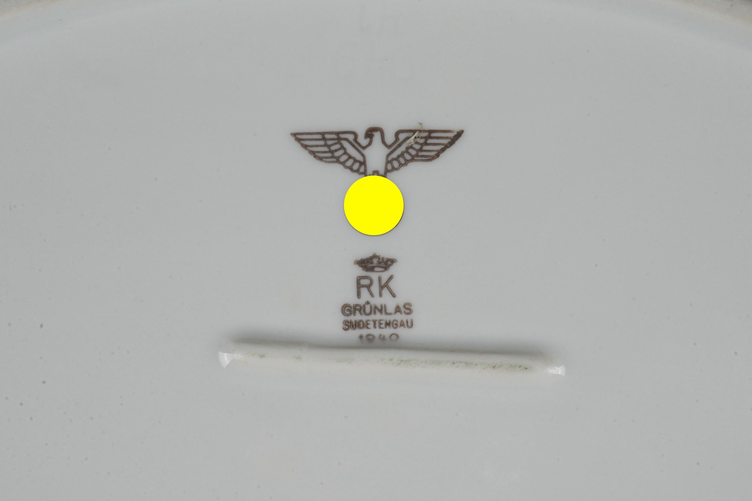 Heer dish. White ceramic. Large model 41 cm. Nice Heer eagle. Made by RK 1940. Some wear and patina. Condition II+. Heer plate in white ceramic, large 41 cm model with fine Heer eagle. Made by RK, dated 1940. Some wear and patina on the piece. Condition II+