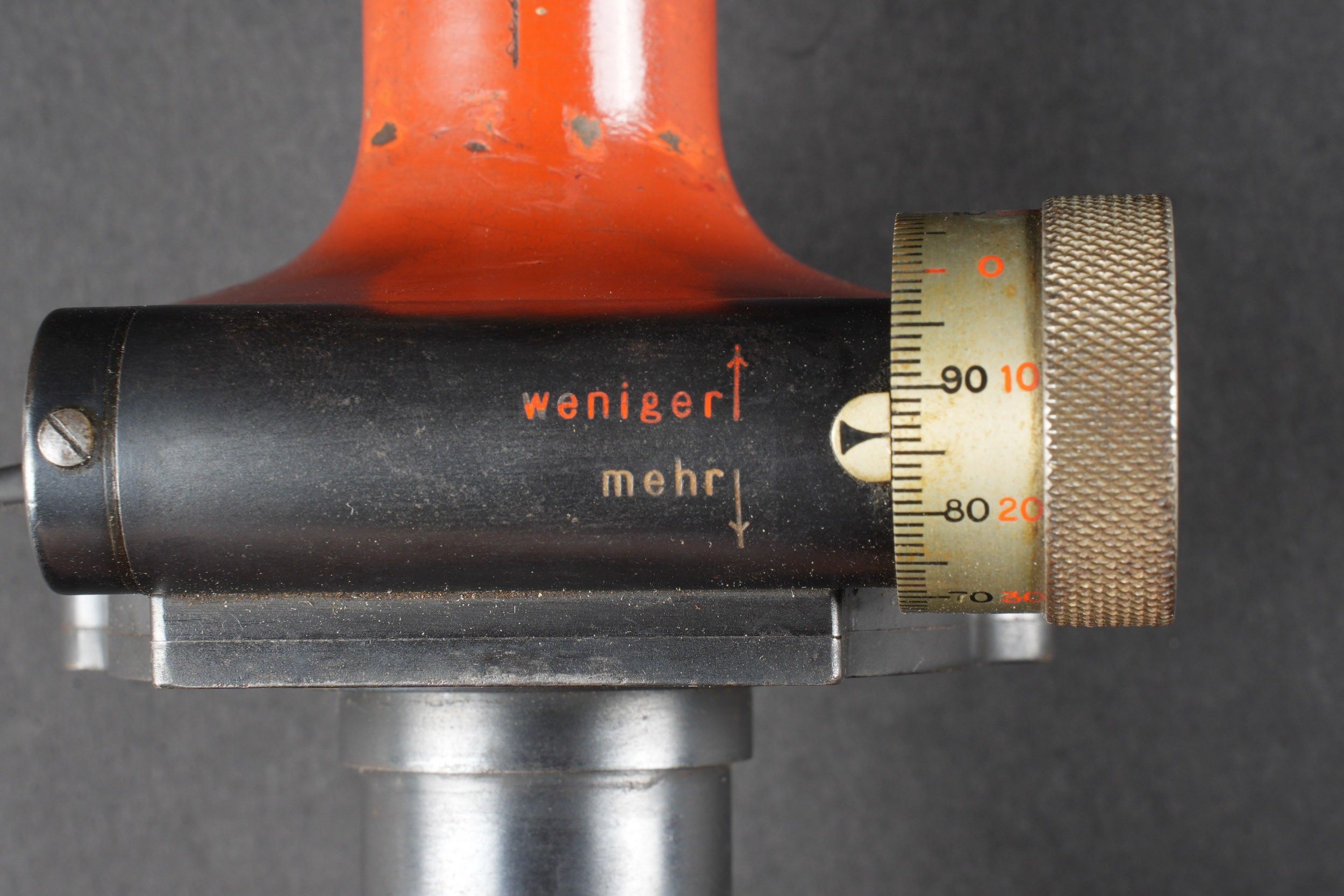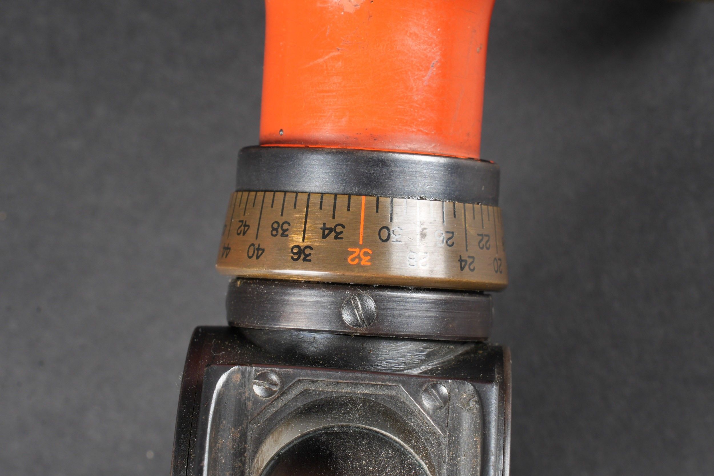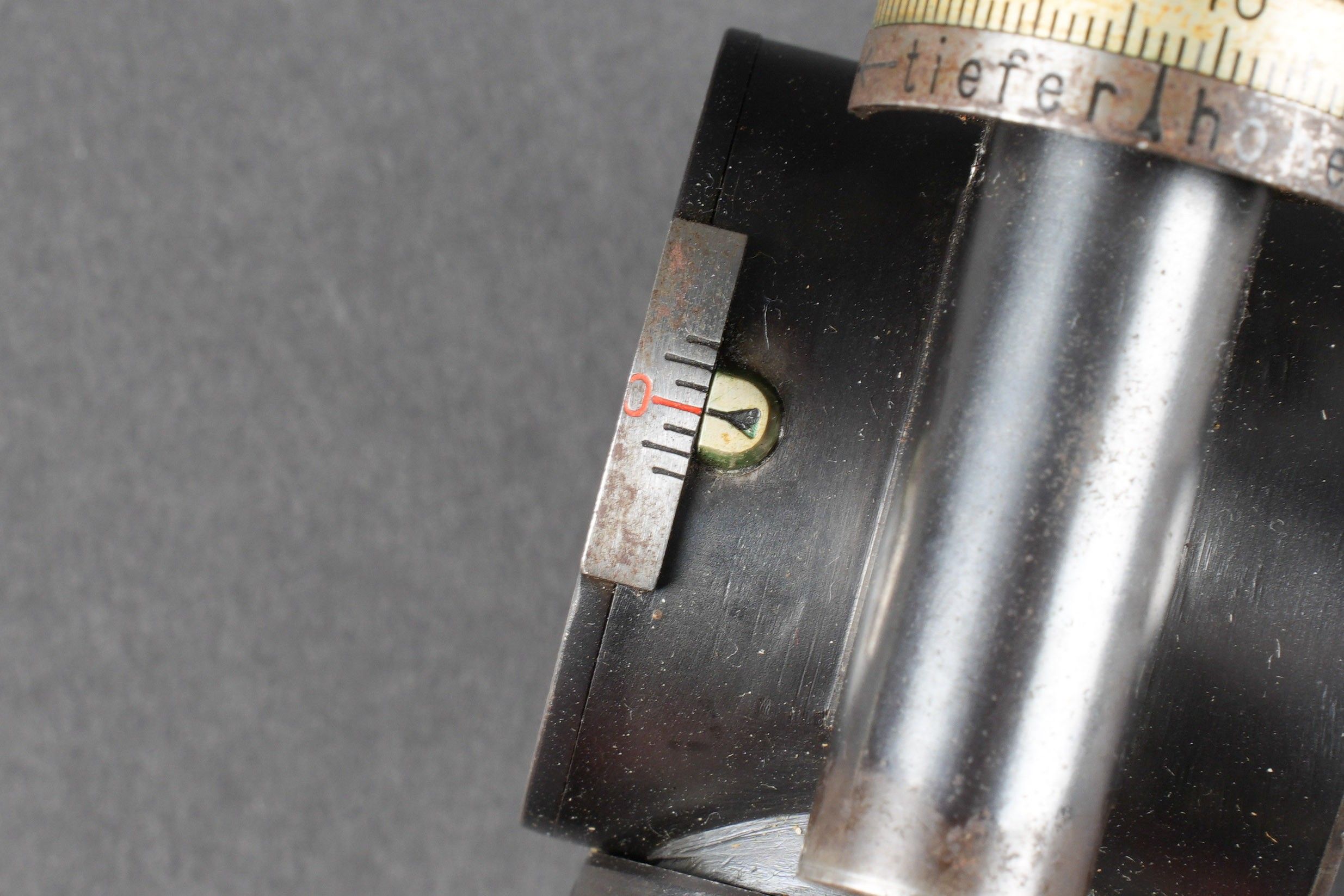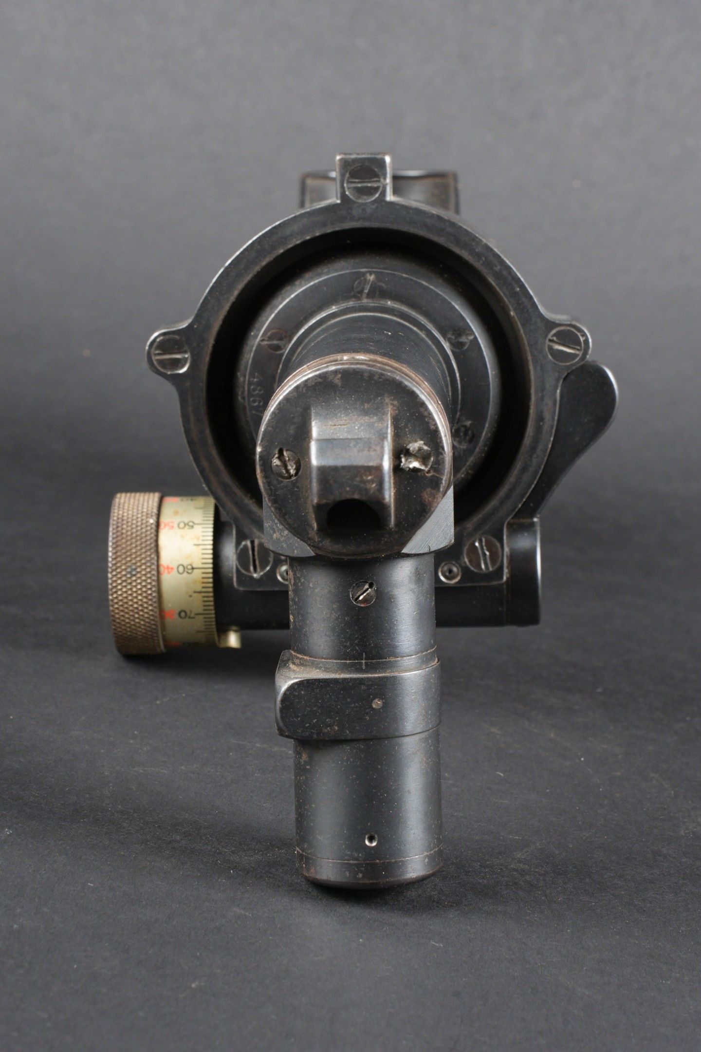 Artillery scope. Metal. 95% original colour. 95% original red colour. All moving parts are functional. Manufacture GP Goerz Berlin Rundblick Fernrohr Nr 85773 DRP. Clear and graduated optics, showing some stains. Slight wear and oxidation. Condition I-. Artillery scope in metal with 95% of original finish and red colour. All moving parts functional. Marked GP Goerz Berlin Rundblick Fernrohr Nr 85773 DRP. Clear graduated optics with minor spotting. Slight wear and oxidation on the piece. Condition I-