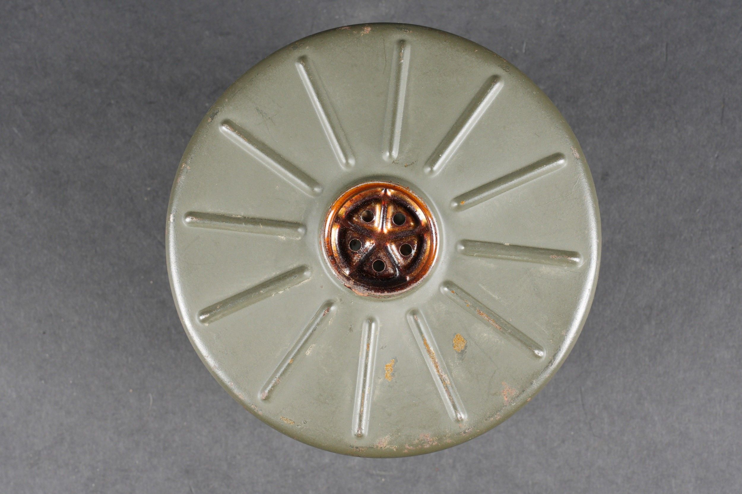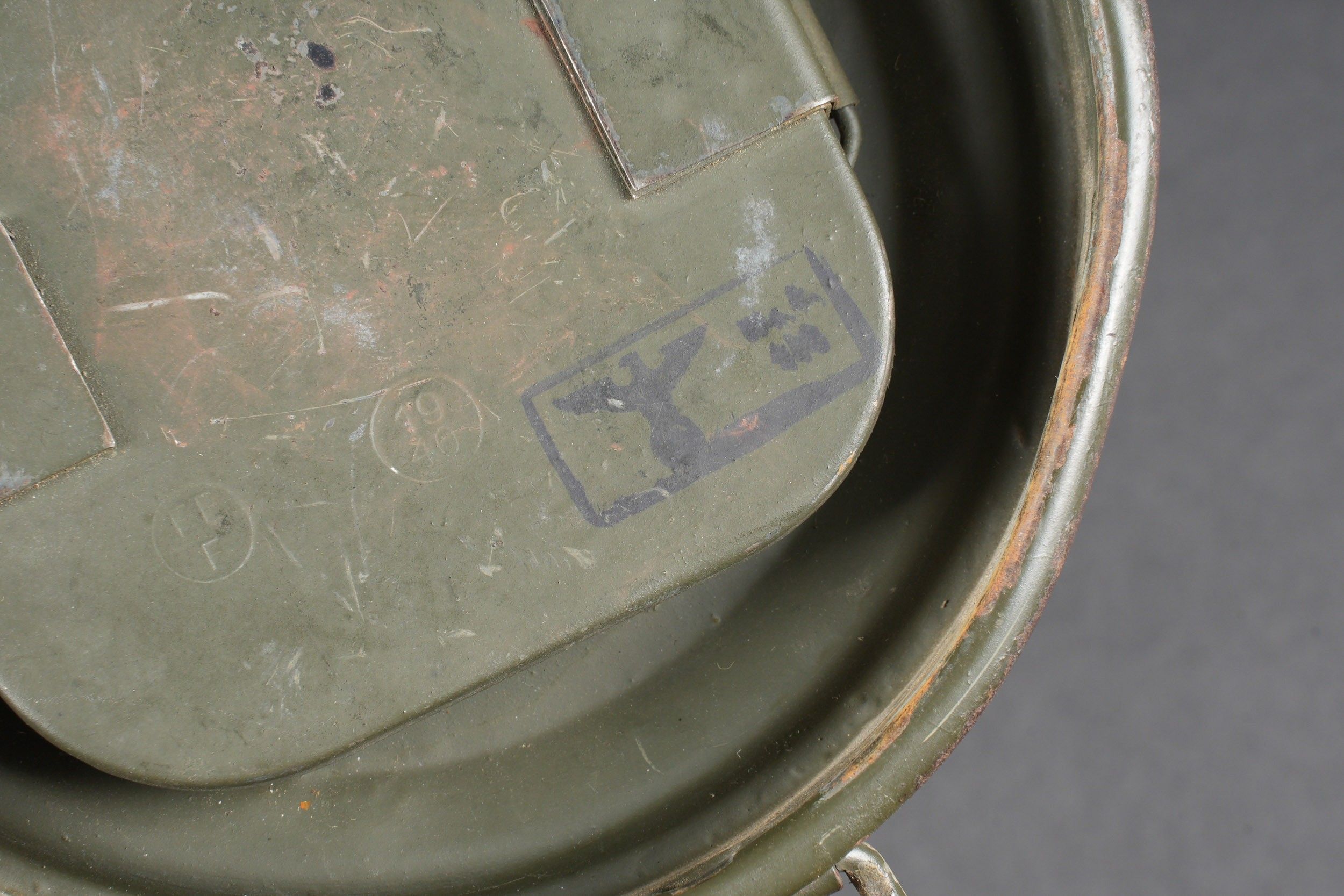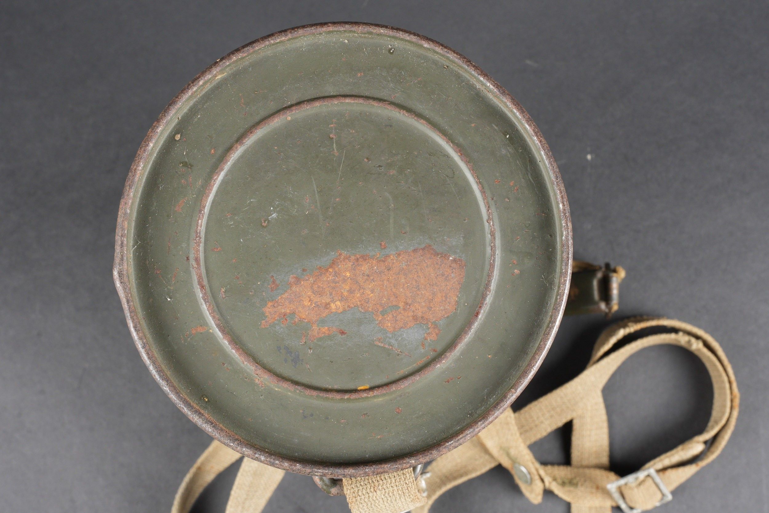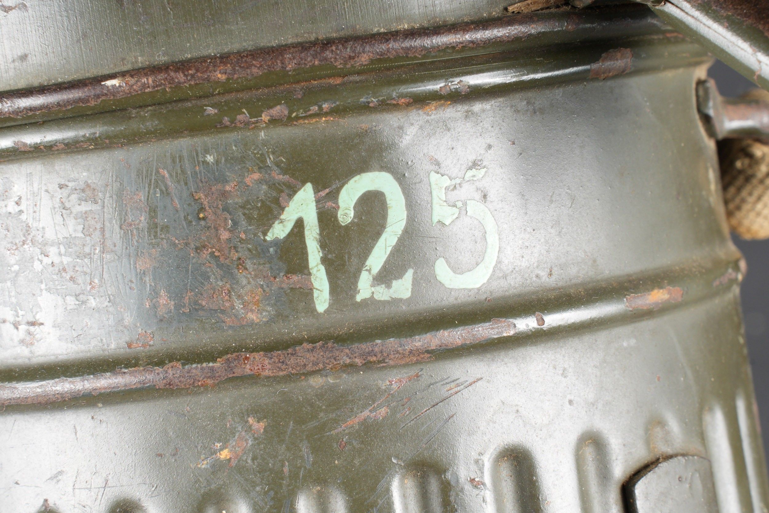 German anti-gas mask. Long metal case, 70% Feldgrau paint.