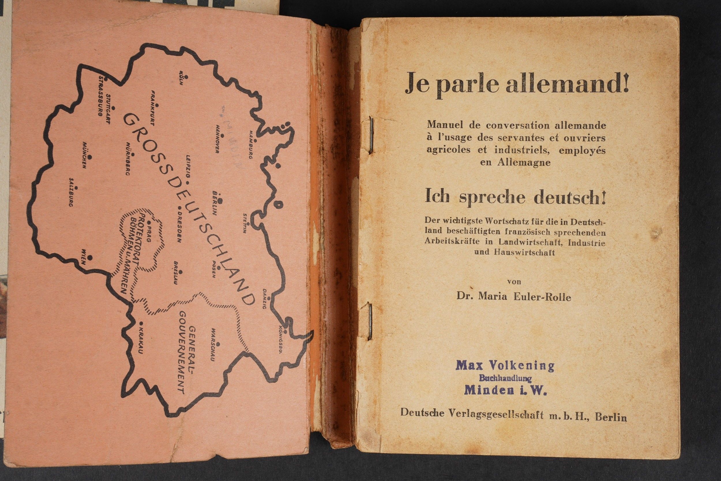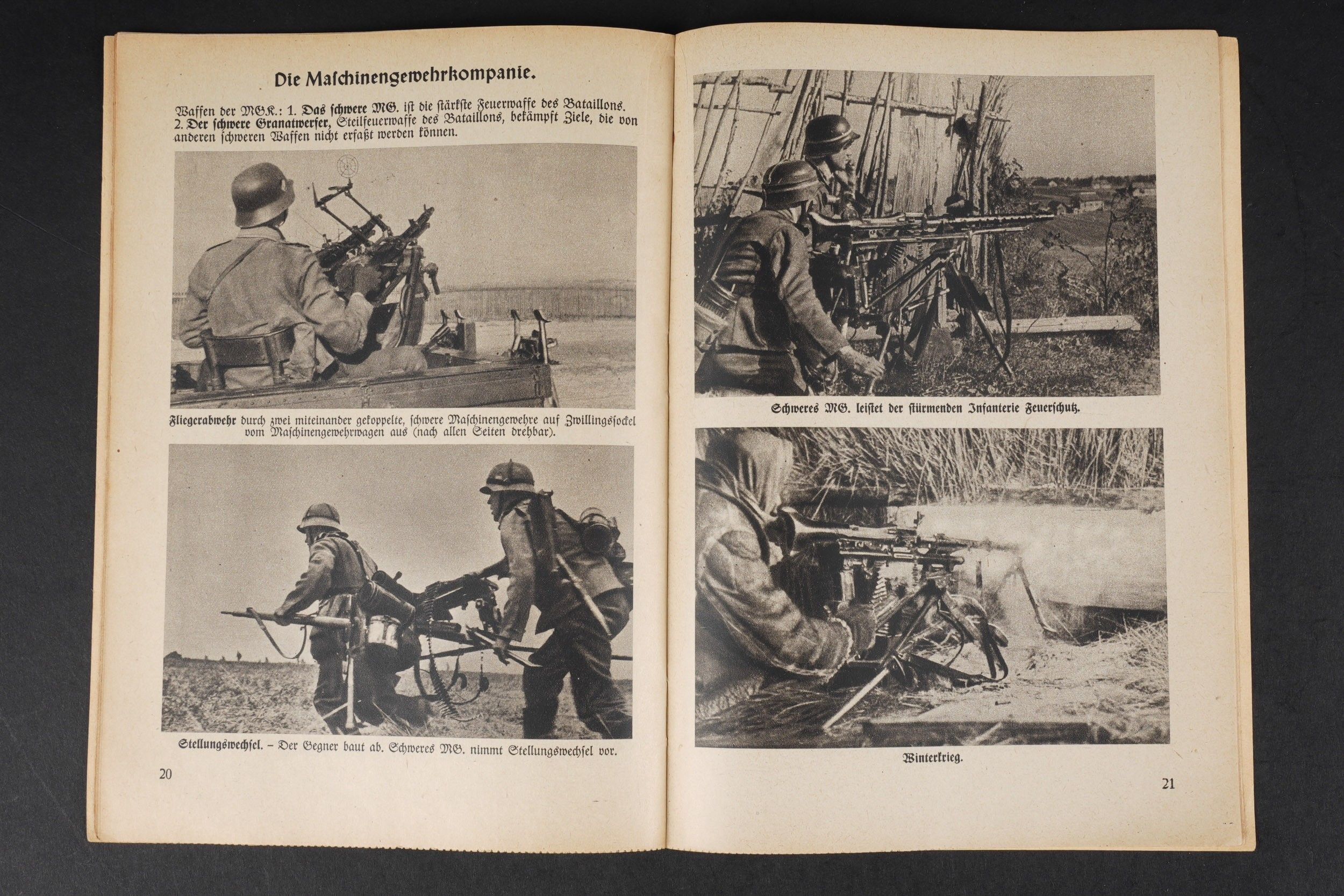 German booklets. Including a booklet I speak German, from Deutsche Verlagsgesellschaft mbH Berlin. A booklet die Infanterie Waffenhefte des Heeres. Some wear and patina to parts, as well as a few stains. Condition II+. German booklets. Includes I speack german, published by Deutsche Verlagsgesellschaft mbH Berlin, and Die Infanterie Waffenhefte des Heeres. Some wear, patina, and stains. Condition II+.