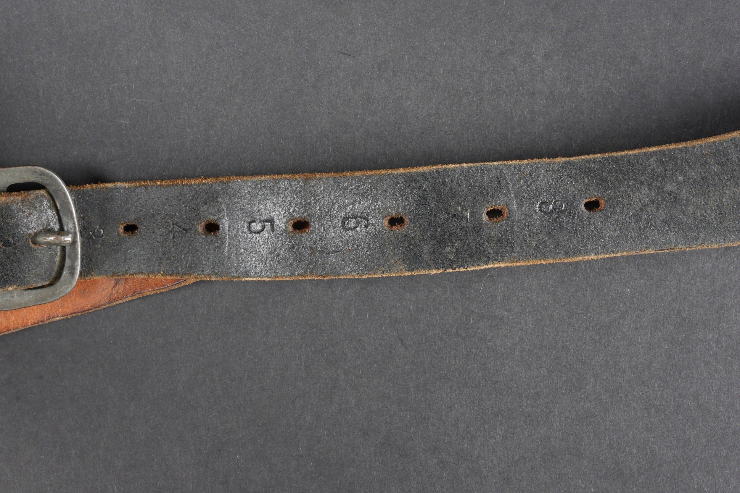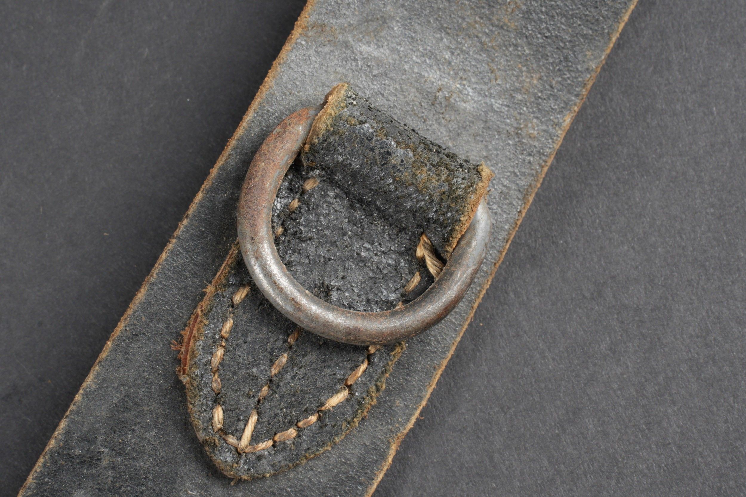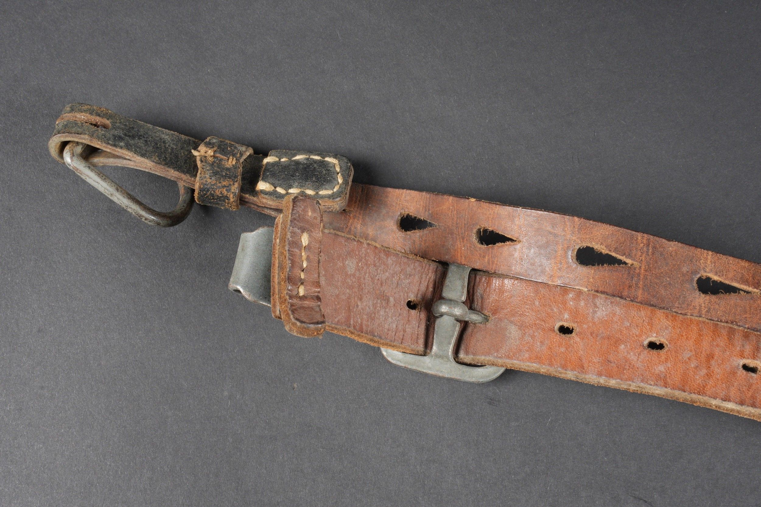 Heavy brelage. Black and brown leather. All metal parts present and 80% original colour. Soft leather. Marked RBNr 013036831. Some wear and patina. Condition II+. German combat Y-straps. Black and brown leather. All metal fittings present with 80% original finish. Supple leather. Marked RBNr 013036831. Some wear and patina. Condition II+.