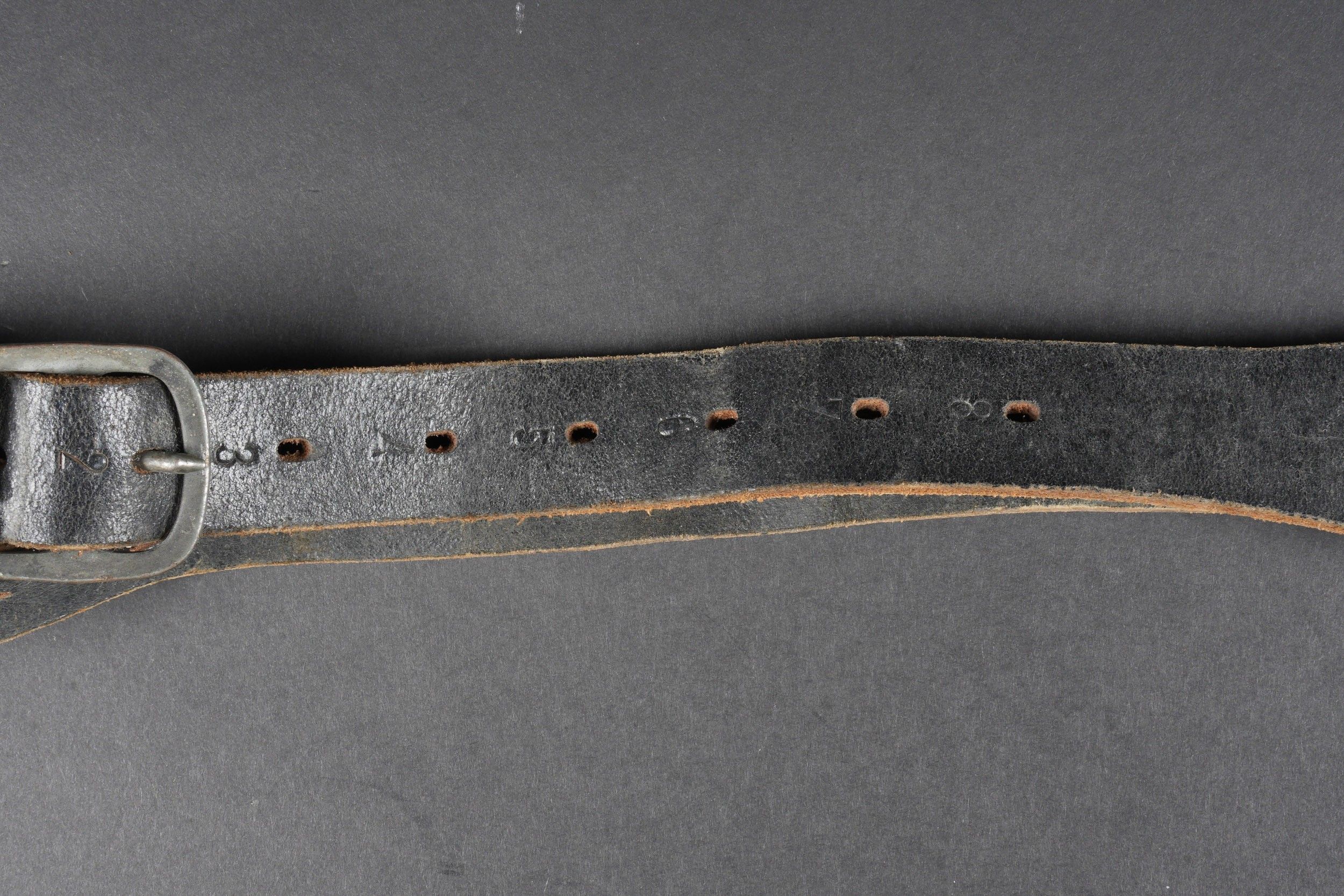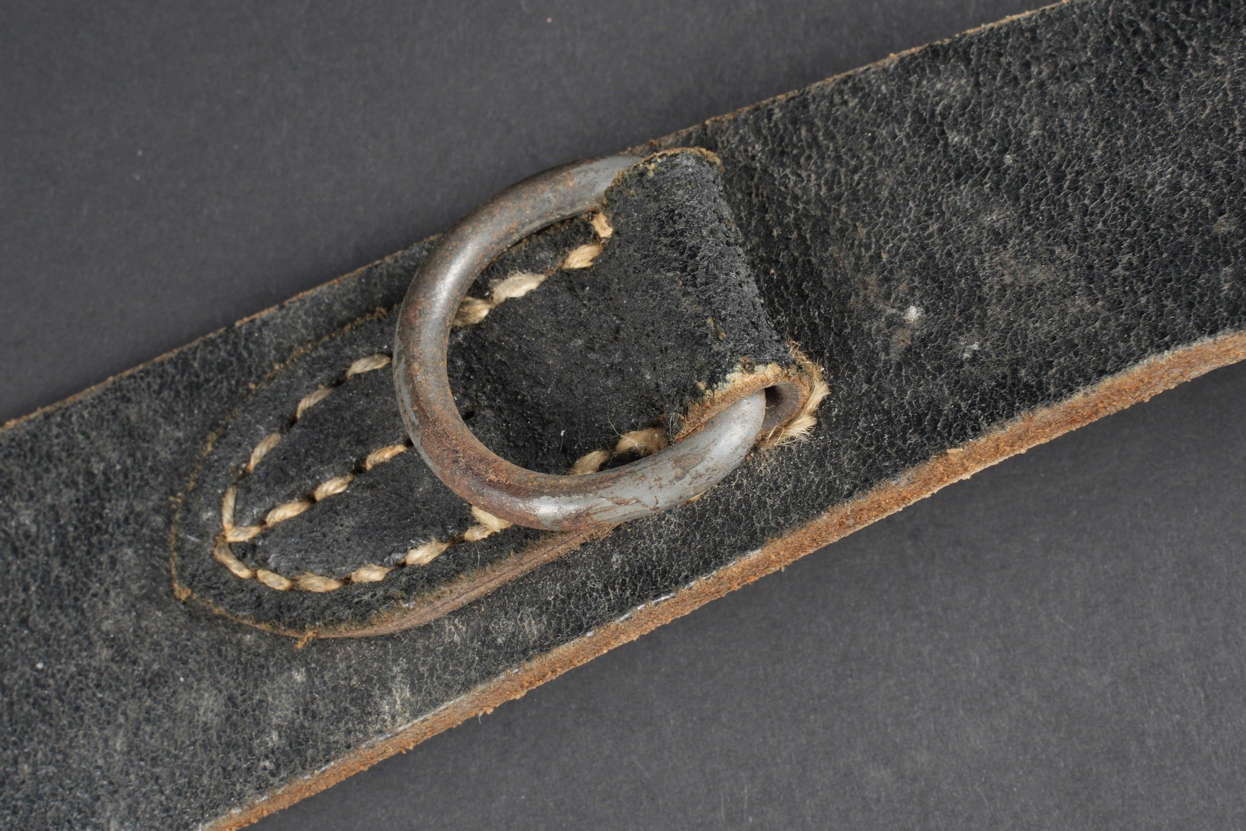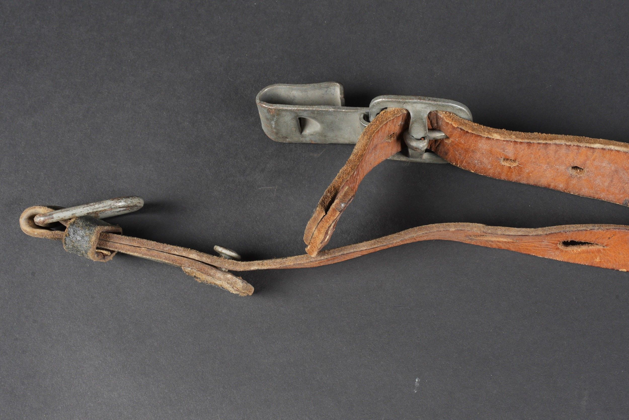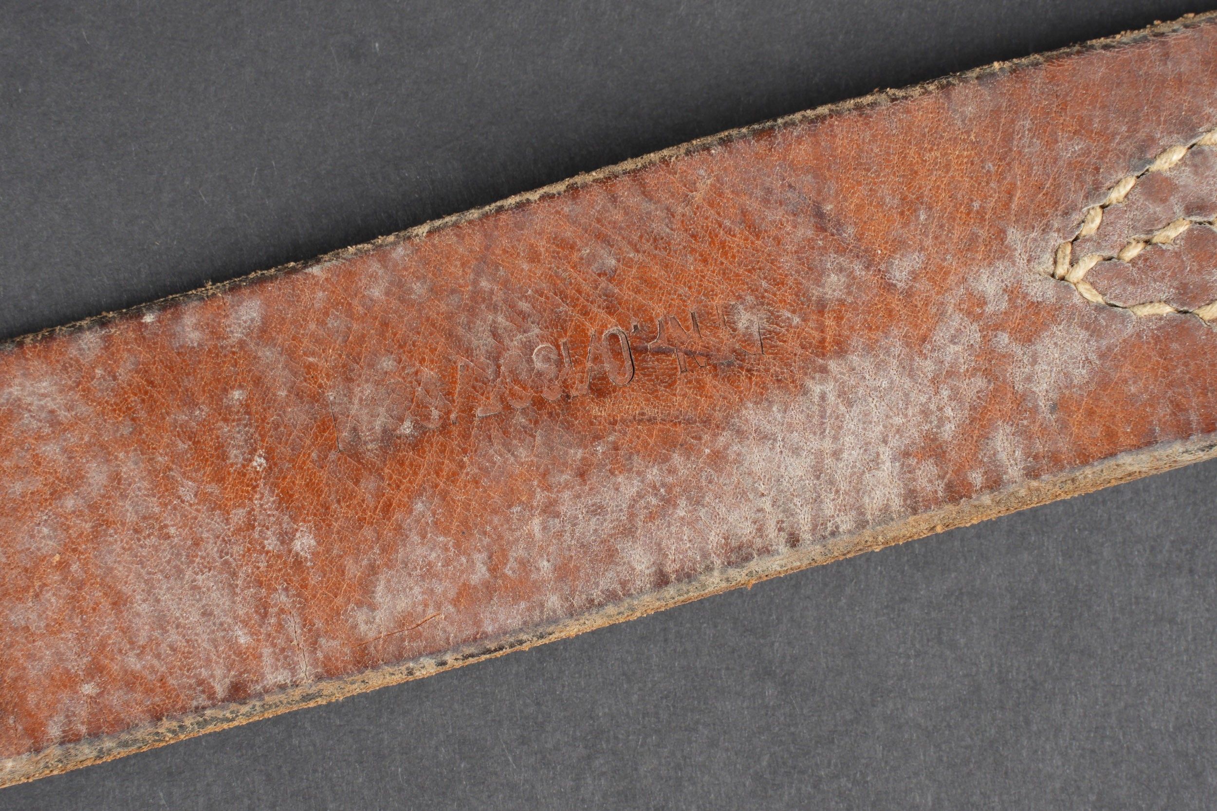 Heavy brelage. Black and brown leather. All metal parts present and 80% original colour. Soft leather. Marked RBNr 013036831. Some wear and patina. Condition II+. German combat Y-straps. Black and brown leather. All metal fittings present with 80% original finish. Supple leather. Marked RBNr 013036831. Some wear and patina. Condition II+.