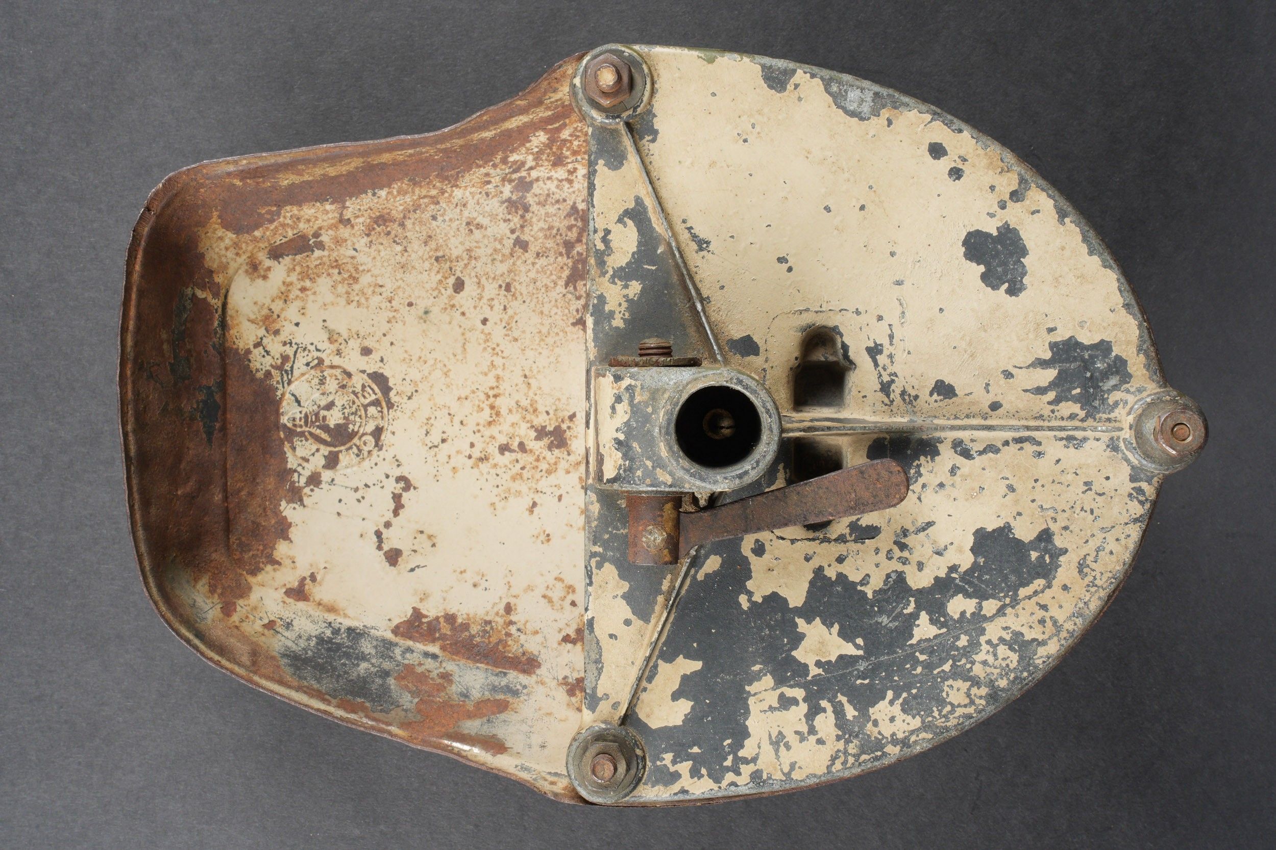 Camouflaged notek. Metal, some dents visible. 70% camouflaged three-tone sandvertocre paint. Glass complete. The stand is missing. Nice visible Notek marking. All moving parts are functional. Some wear and patina. Condition II+. Camouflaged Notek light Metal construction, a few teeth visible. Three-tone sandgreenochre camouflage paint 70% intact. Complete glass lens. Mounting bracket missing. Clear Notek marking. All moving parts functional. Shows wear and patina. Condition II+.