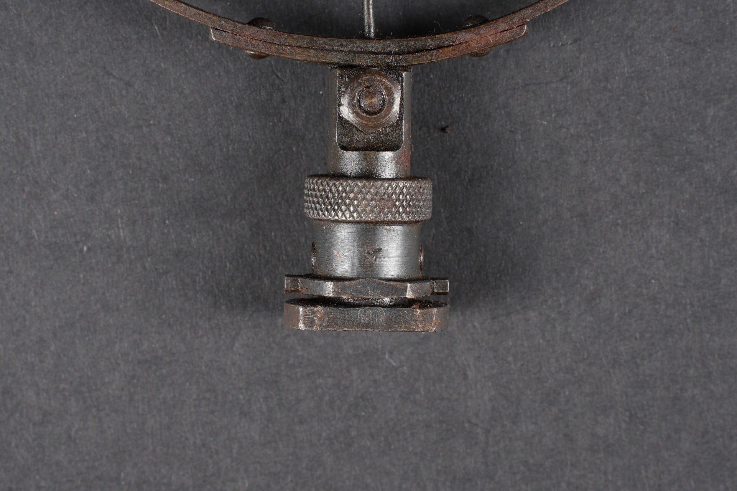 Anti-aircraft sight. Made of metal. Mounting bracket complete. Nice Waa eagle visible. Slight wear and patina. Condition I-. Anti-aircraft sight. Metal construction with complete mounting bracket. Clear eagle Waa stamp visible. Shows light wear and patina. Condition I-.