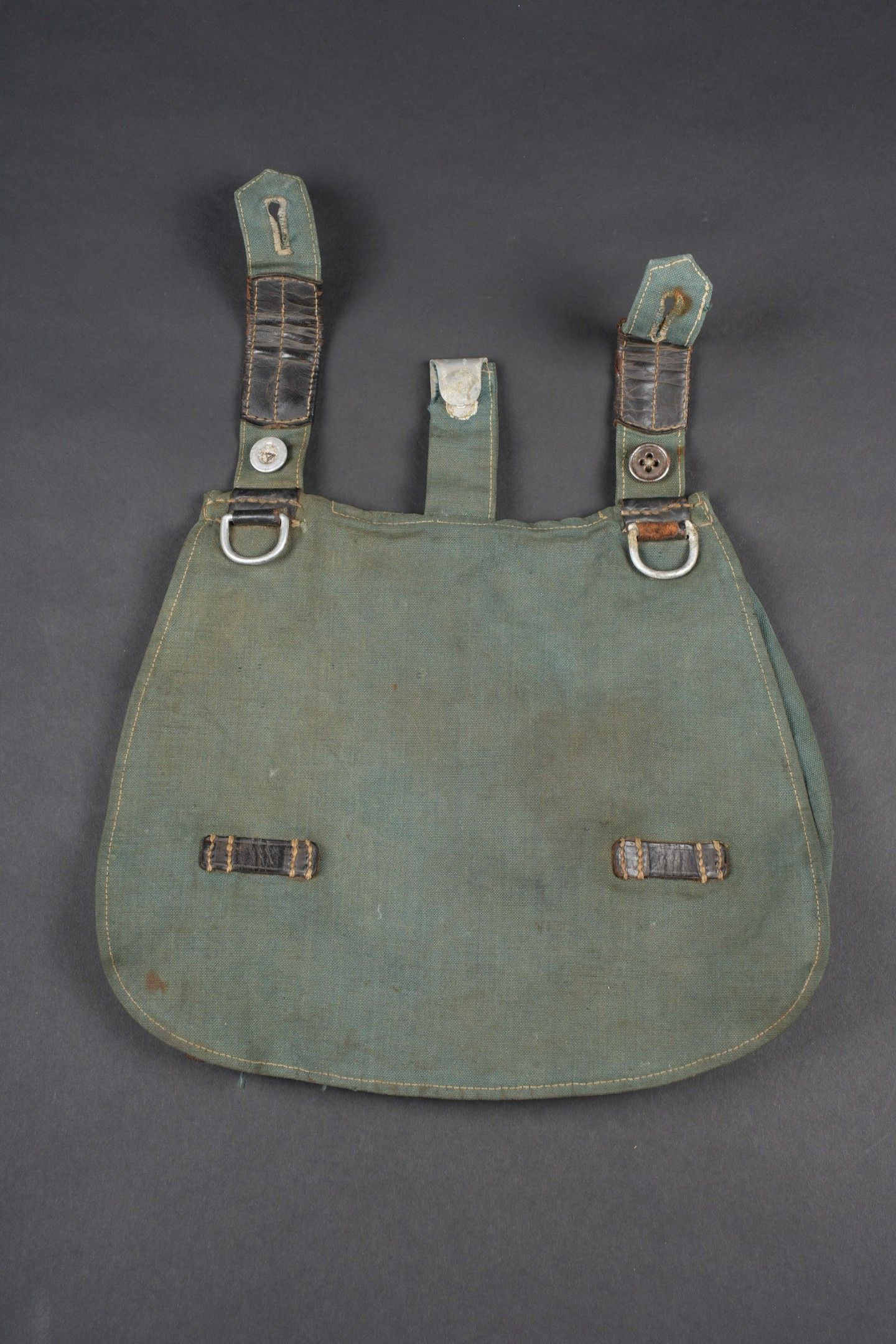 Polizei bread bag. Grey-green fabric and black leather.