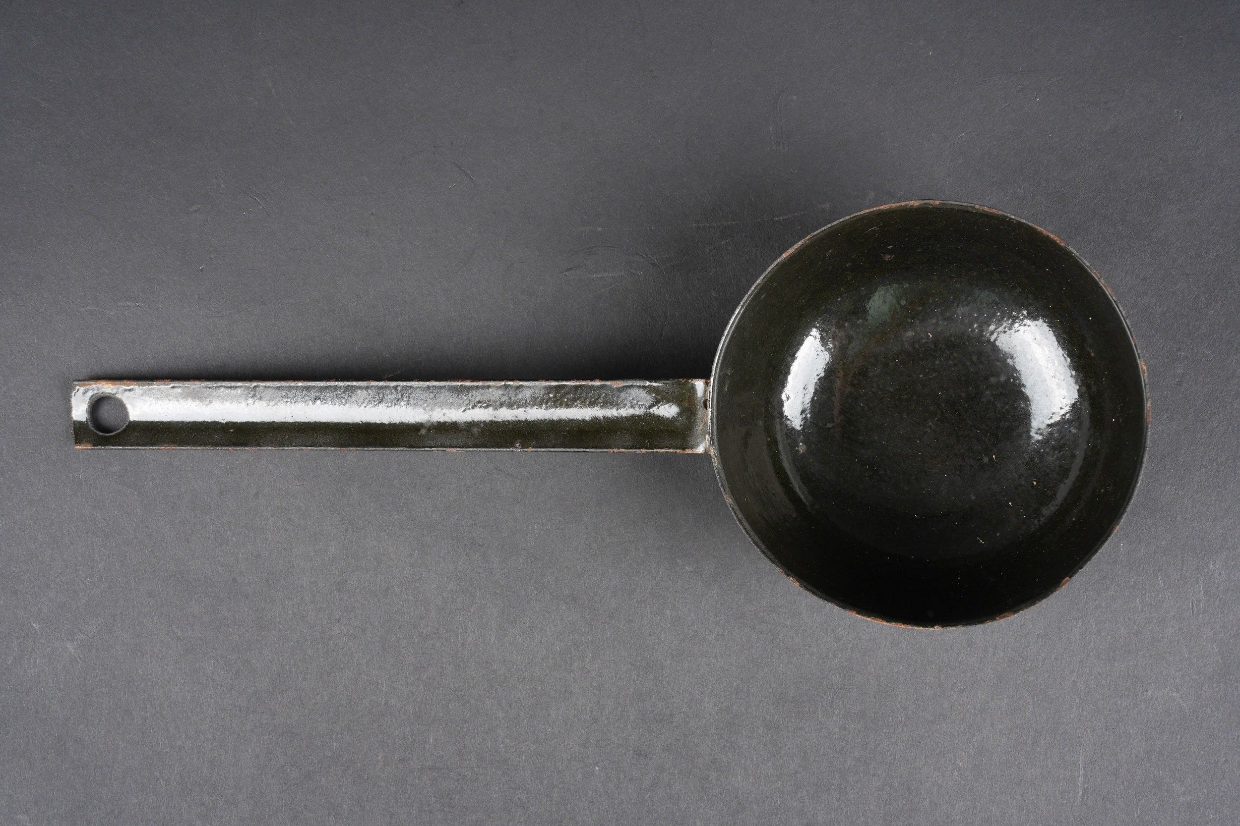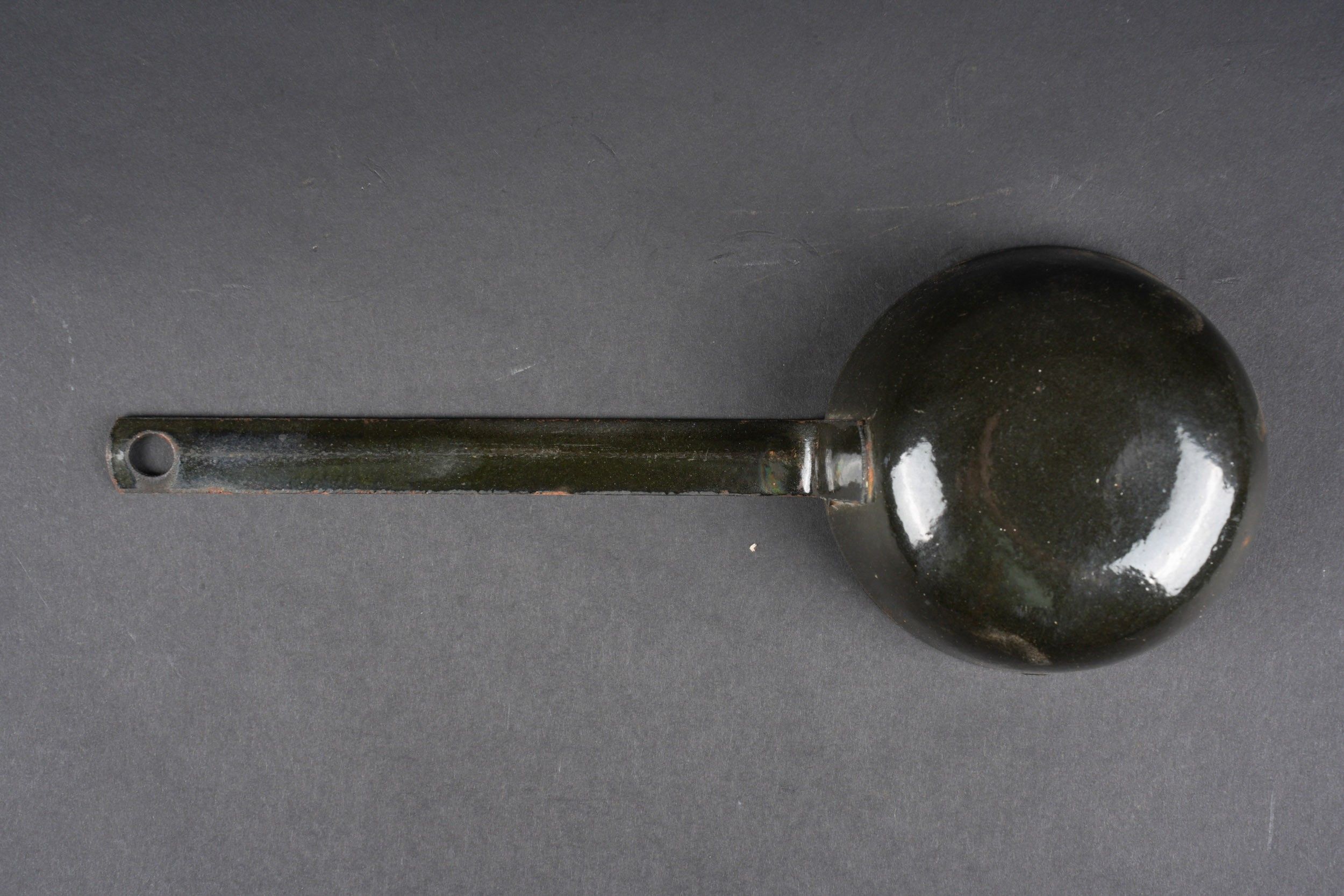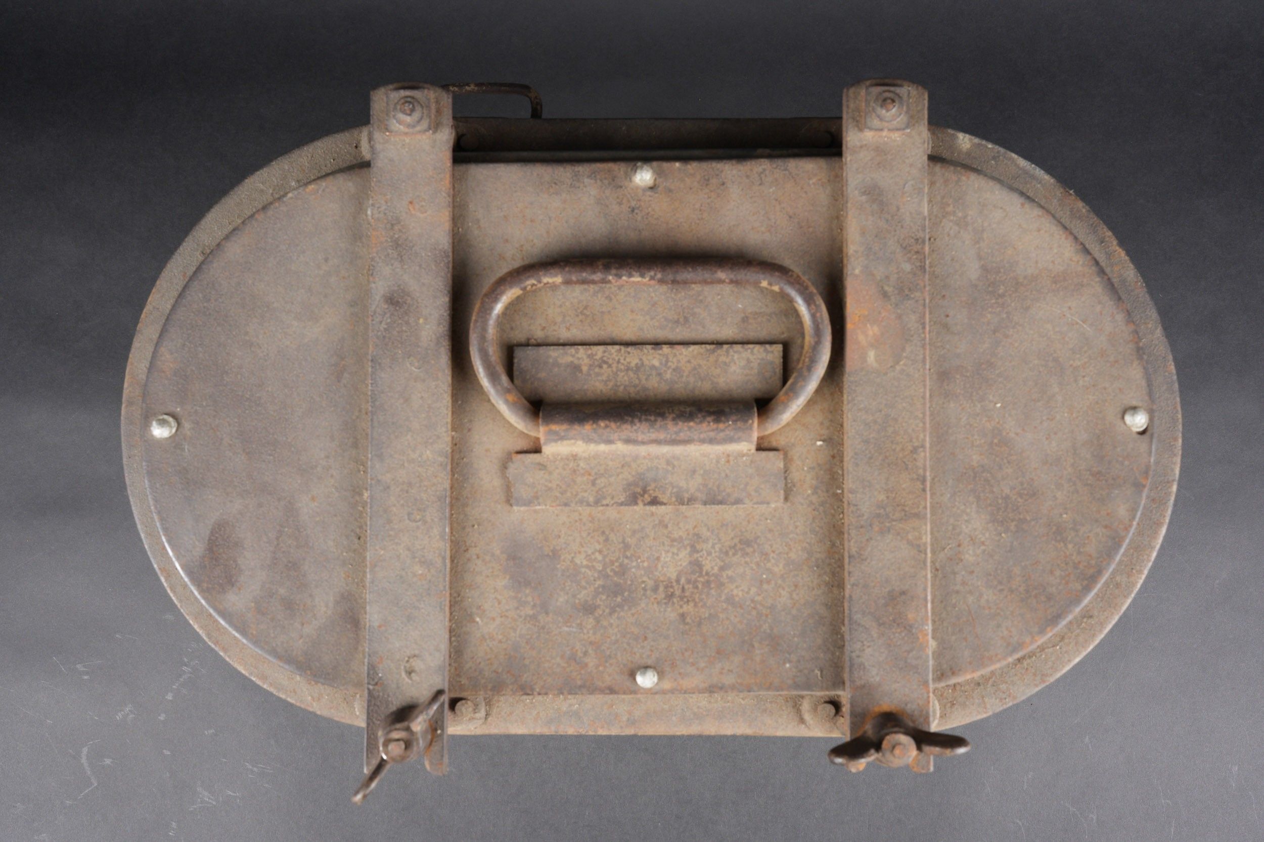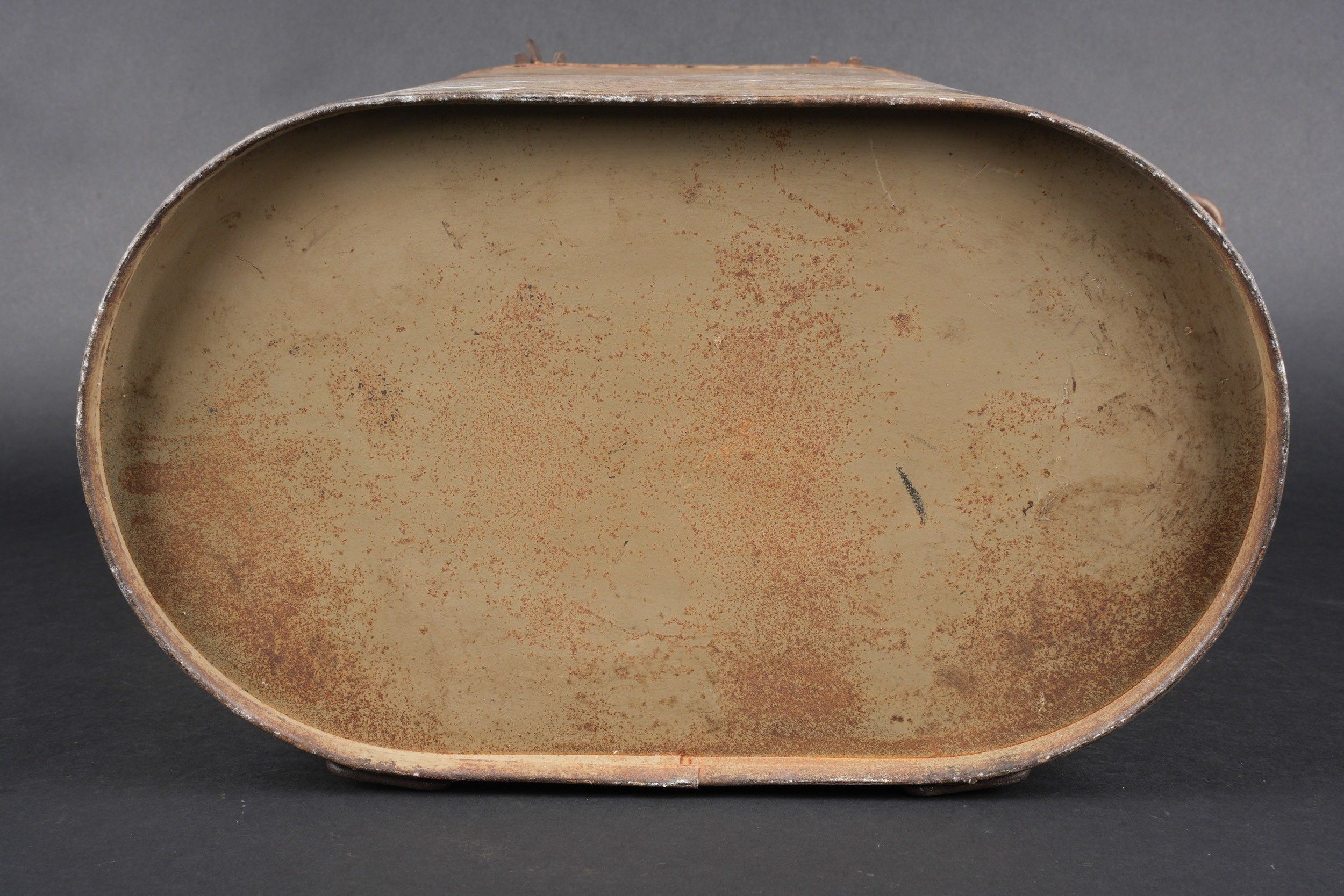 German Norwegian. Metal, 70% sand yellow paint. The carrying handles are complete. Functional closures. Interior lined with black enamelled metal, the ladle is present. HFW 43 manufacture. Some wear and patina. Condition II+. German Norwegian canteen. Metal construction retaining about 70% of its original sand-yellow paint. Carrying handles complete and functional. Closures in working order. Interior lined with black enamelled metal. The ladle is present. Maker marked HFW 43. Showing moderate wear and patina. Condition II+.
