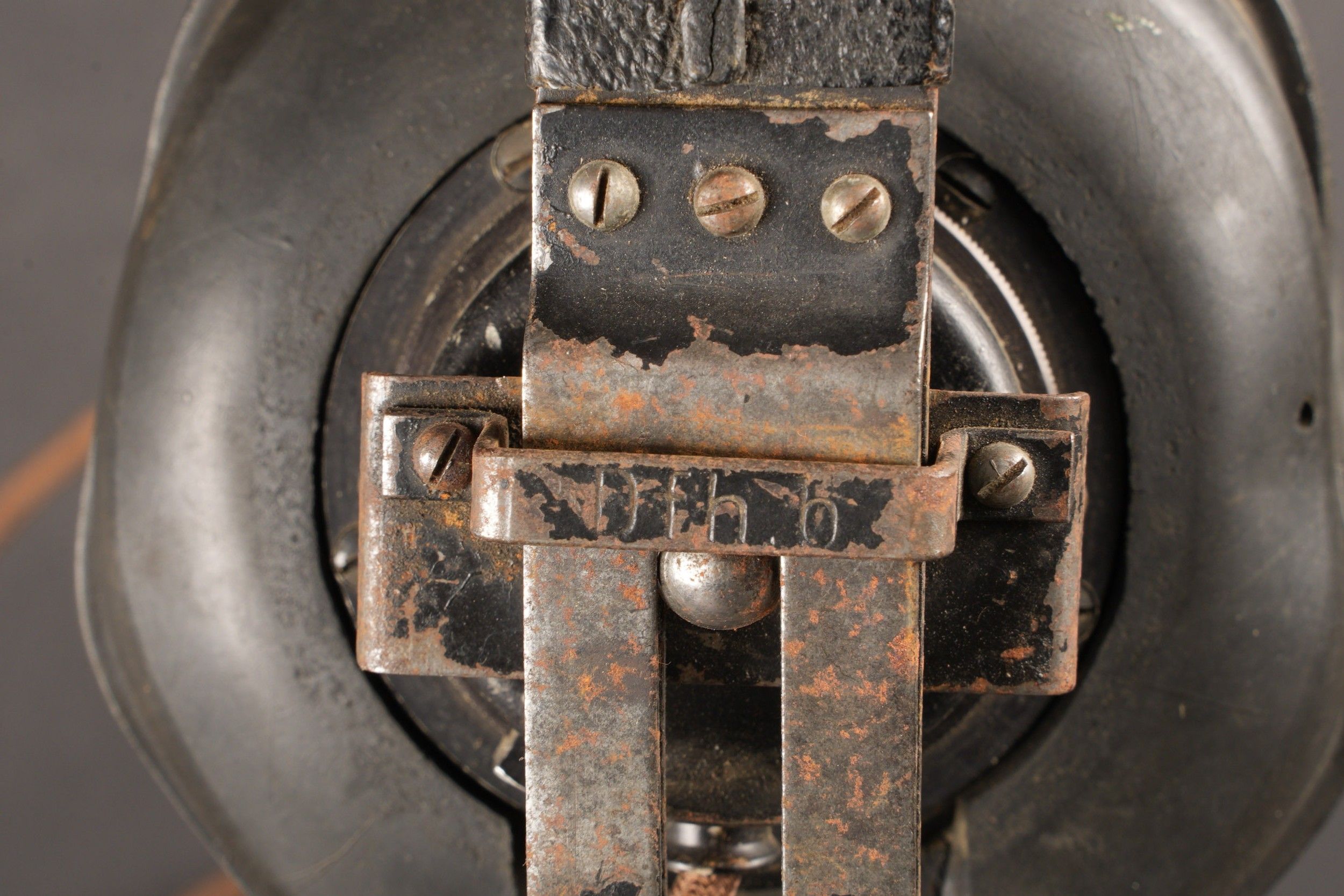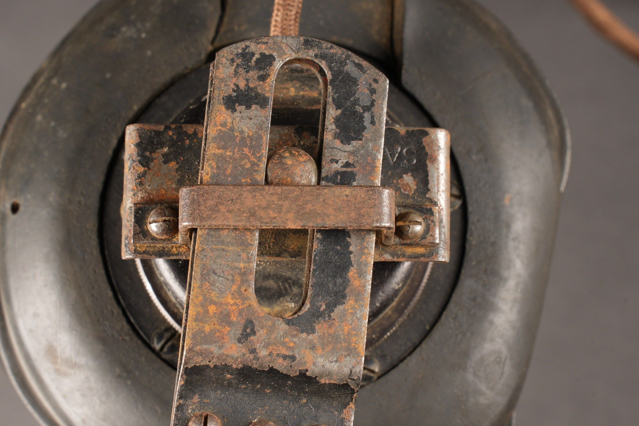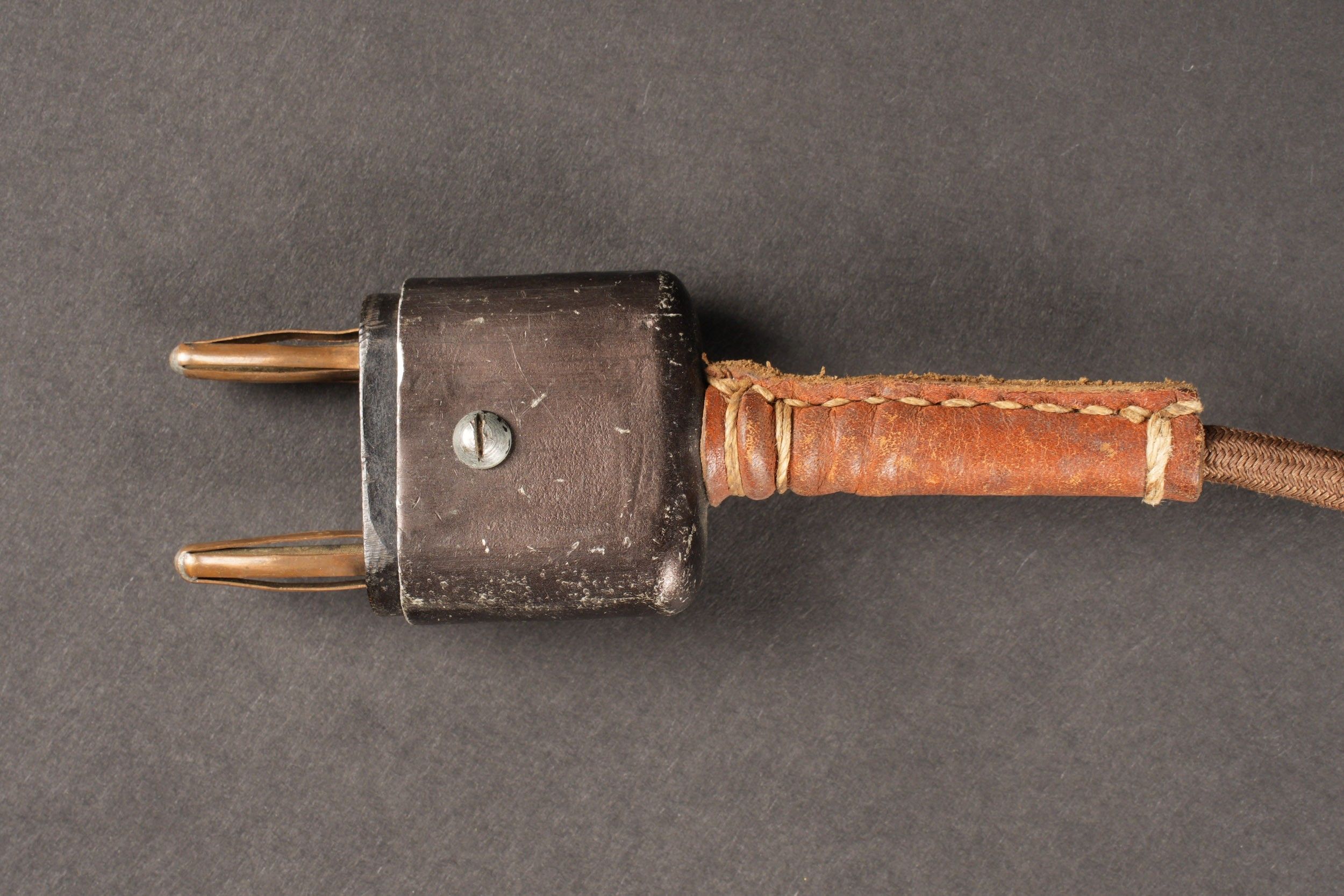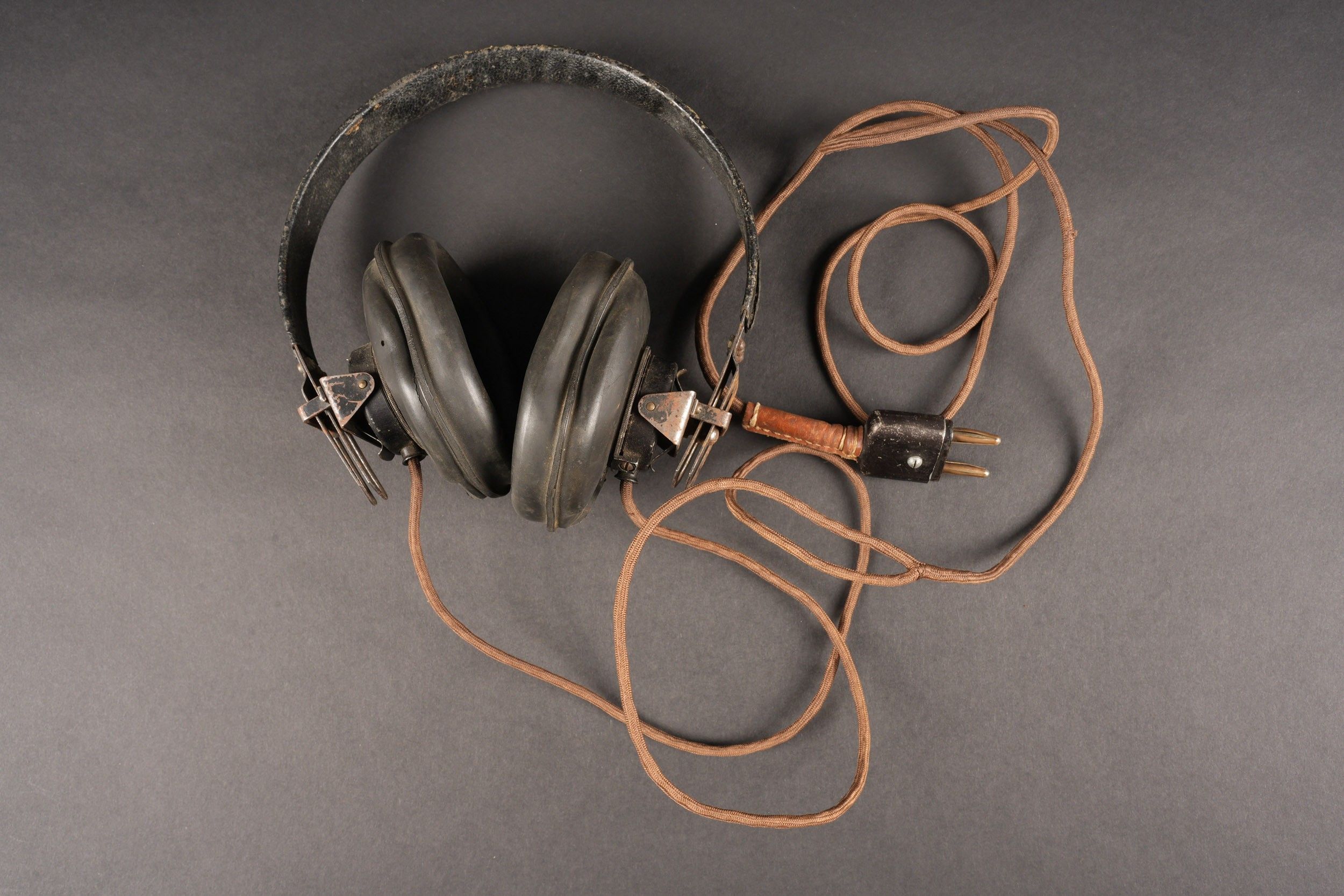 Panzer headphones. Metal frame, covered in thick black imitation leather. The rubber ear protectors are very flexible. Markings DFH B 44. Cable complete with plug. Some wear and patina. Condition II+. Panzer headphones. Metal frame covered in thick black imitation leather. Rubber ear pads very supple. Marked DFH B 44. Complete cable with plug. Some wear and patina. Condition II+.