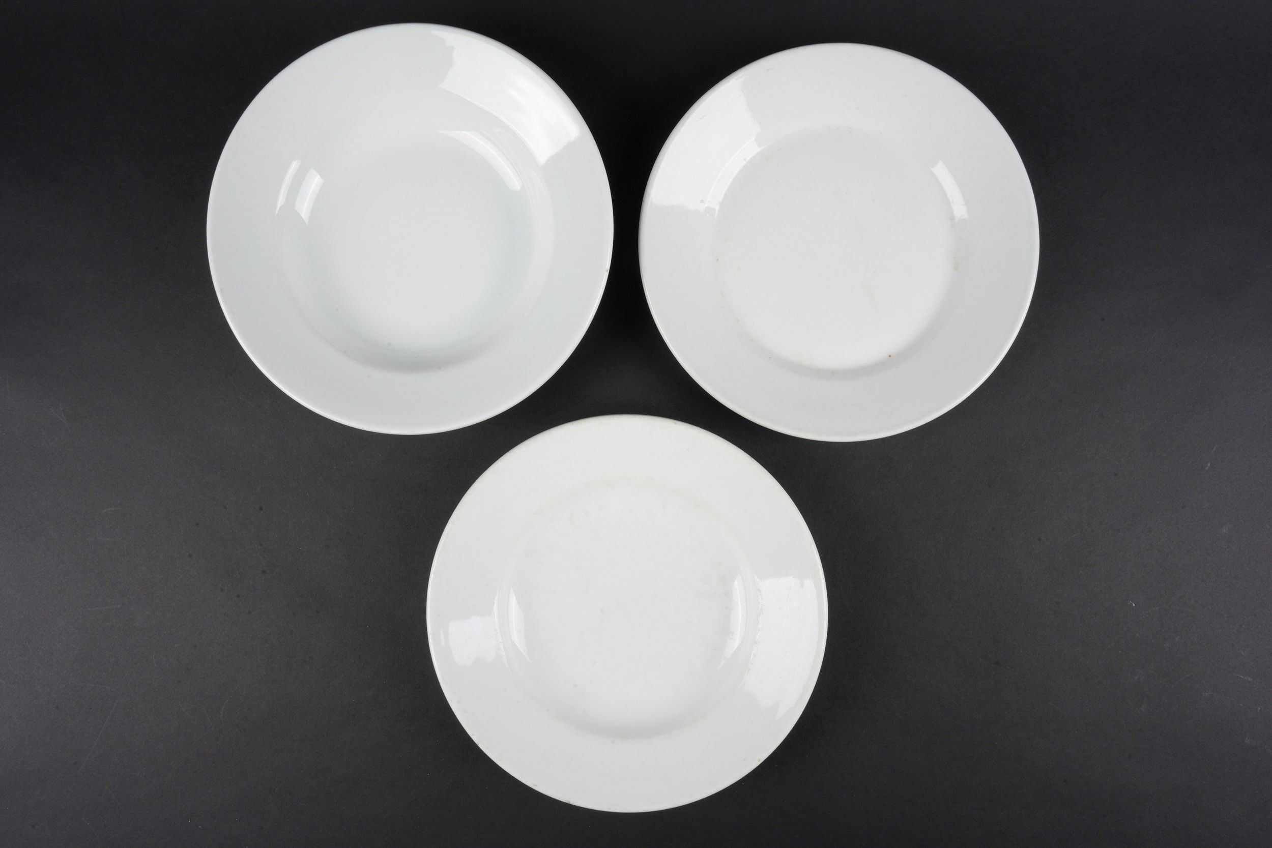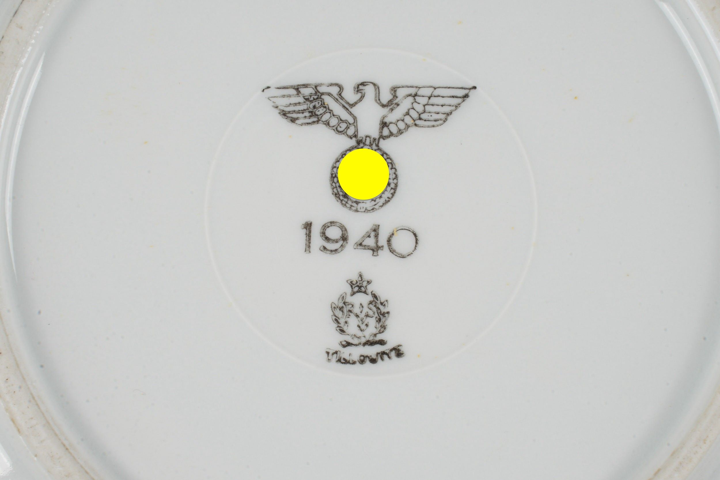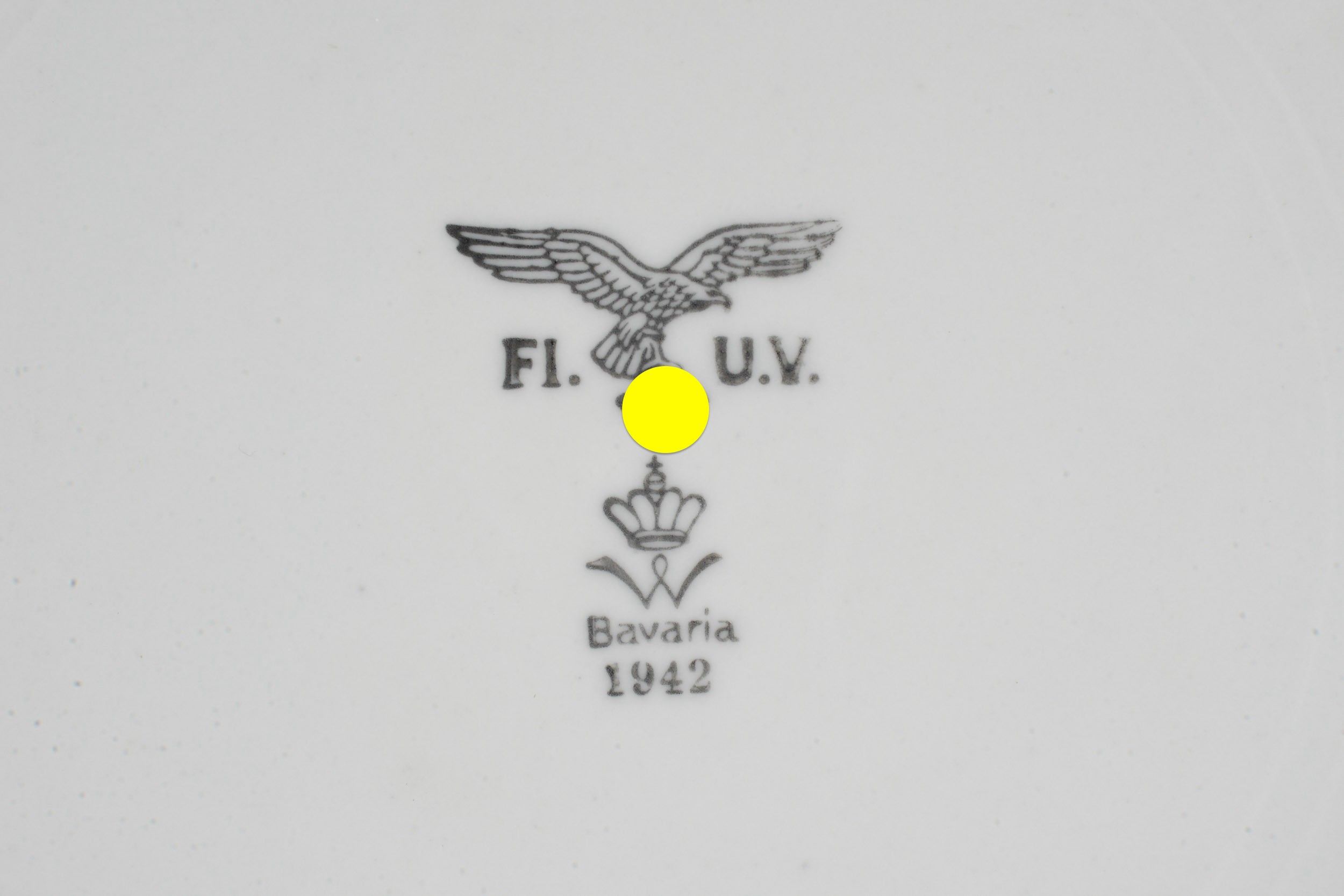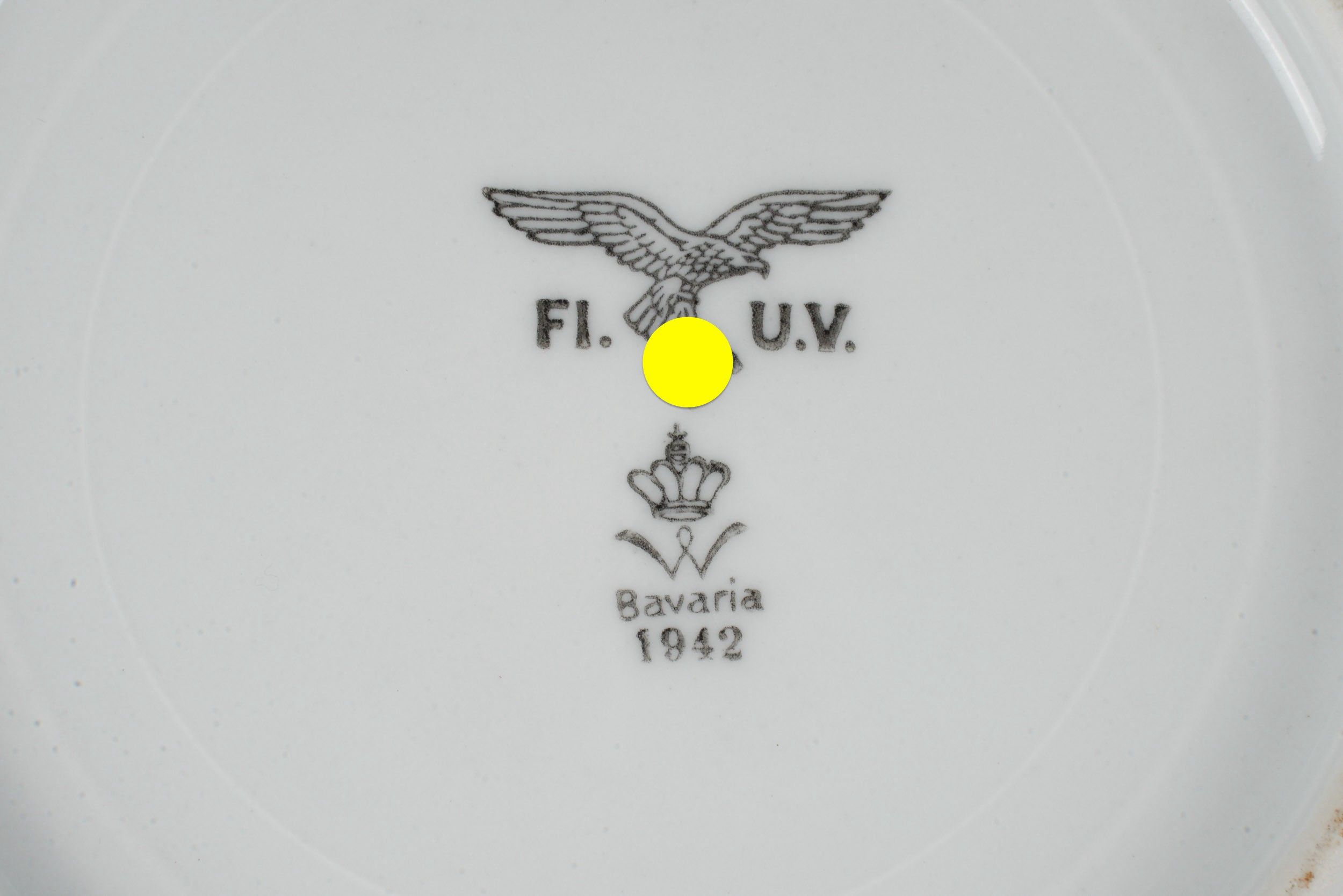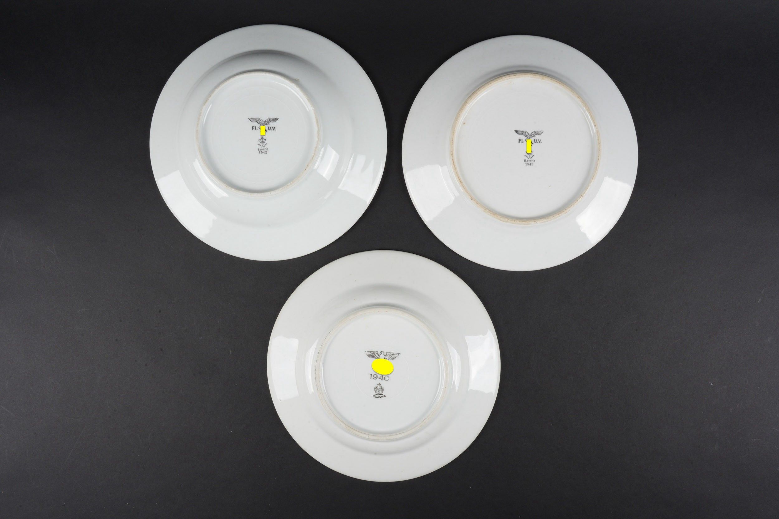 German plates. Two soup plates and one dinner plate in white ceramic. Beautiful Heer and Luftwaffe eagles. Made by Bavaria 1942, 1940, and Bavaria 1942. Some wear and patina to be noted. Condition II+. German plates. Two deep plates and one flat plate in white ceramic. Fine Heer and Luftwaffe eagles. Makers Bavaria 1942, 1940, and Bavaria 1942. Show wear and patina. Condition II+.