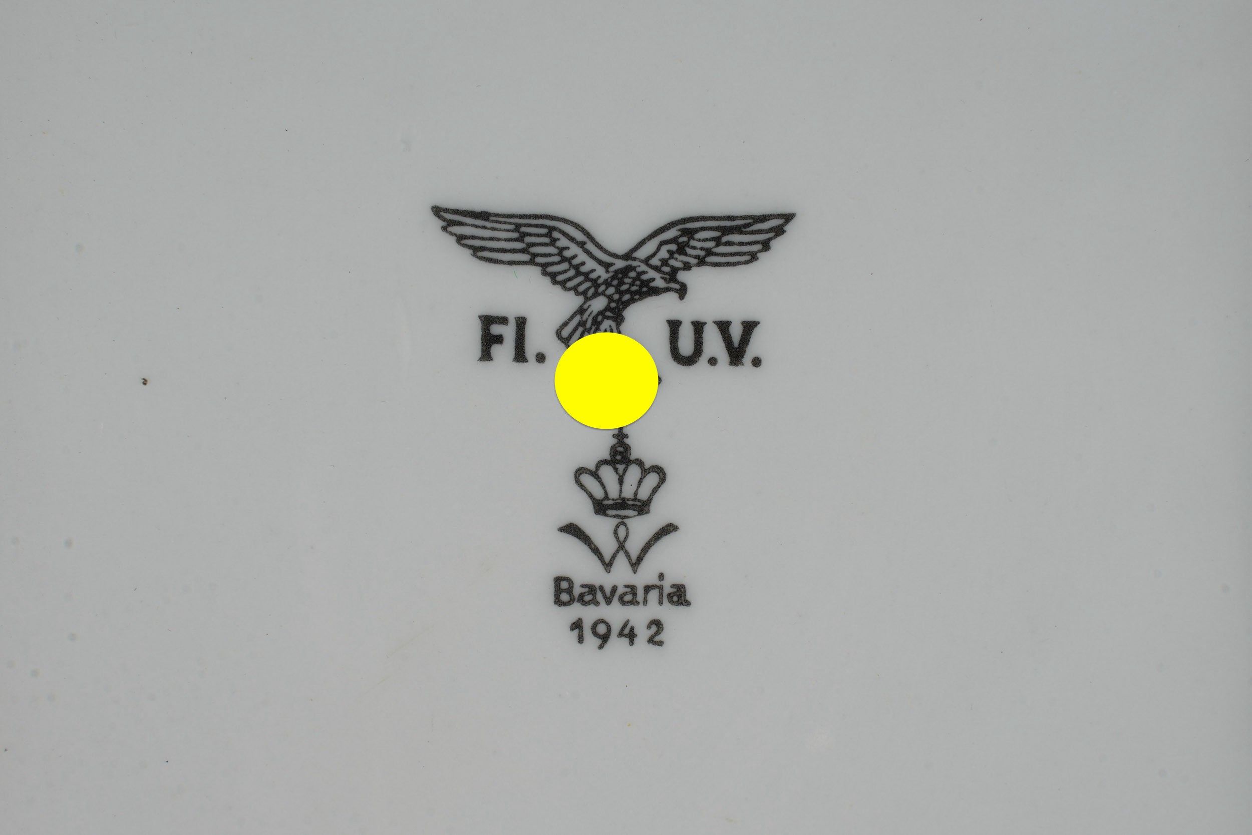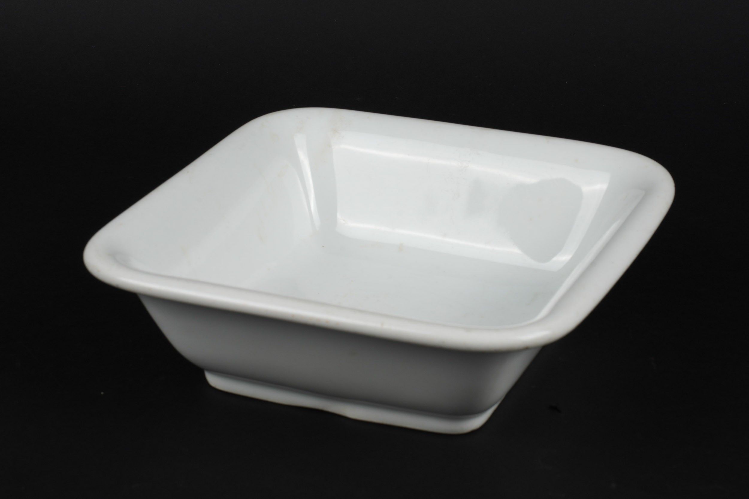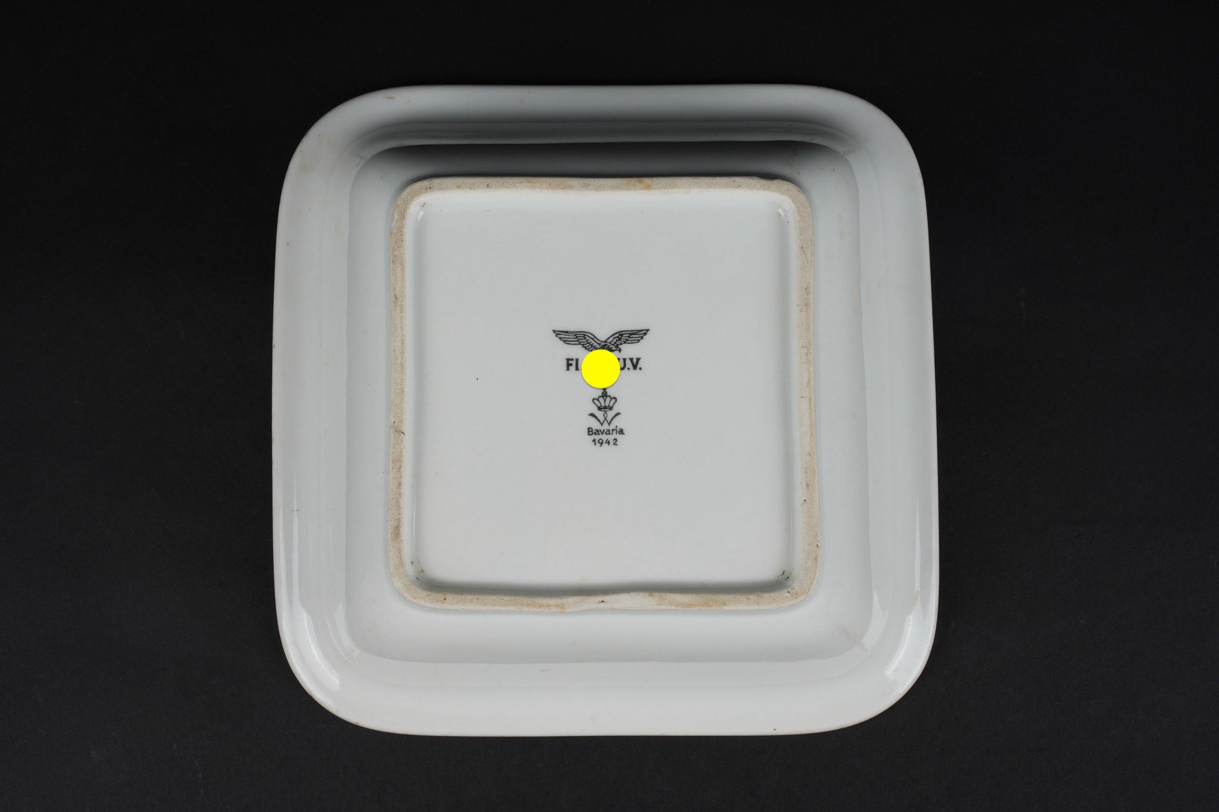 Luftwaffe dish. Square model in white ceramic. Nice Luftwaffe eagle. Made in Bavaria in 1942. Dimensions 21 x 21 cm. Some wear and patina. Condition II+. Luftwaffe serving dish. Square white ceramic model. Fine Luftwaffe eagle. Maker Bavaria 1942. Size 21 × 21 cm. Shows wear and patina. Condition II+.