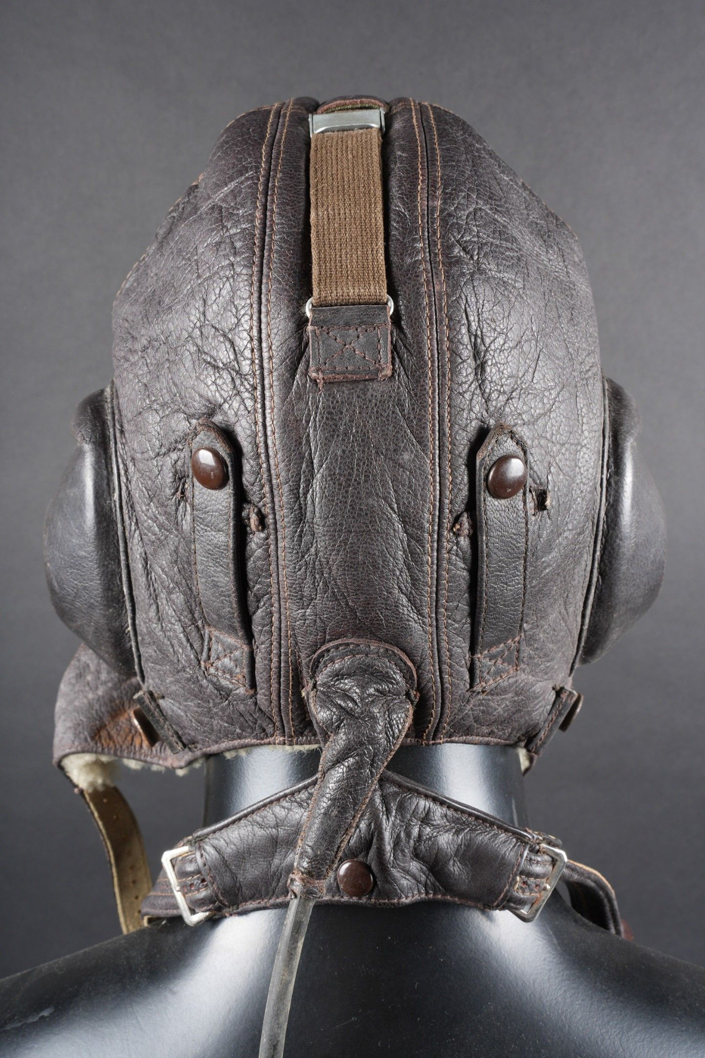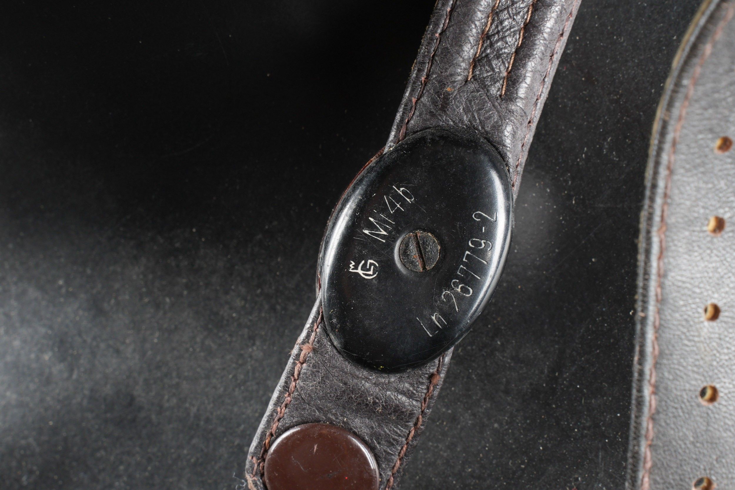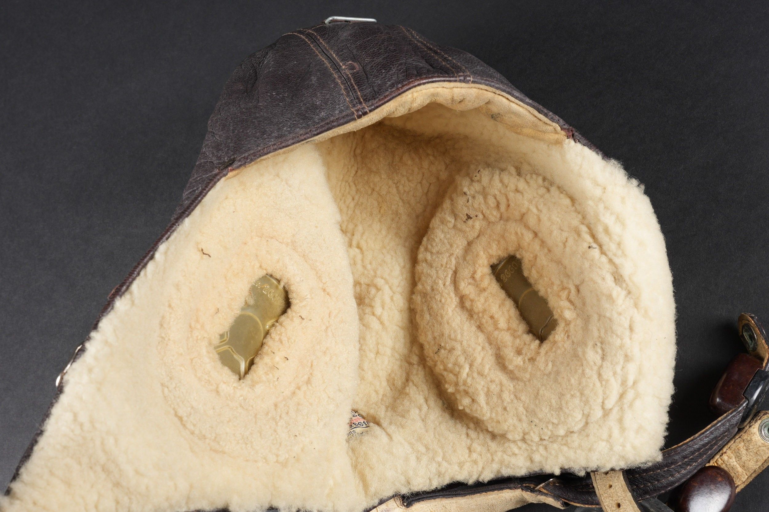 LW pilot's headband. In thick brown leather, lined with faux…