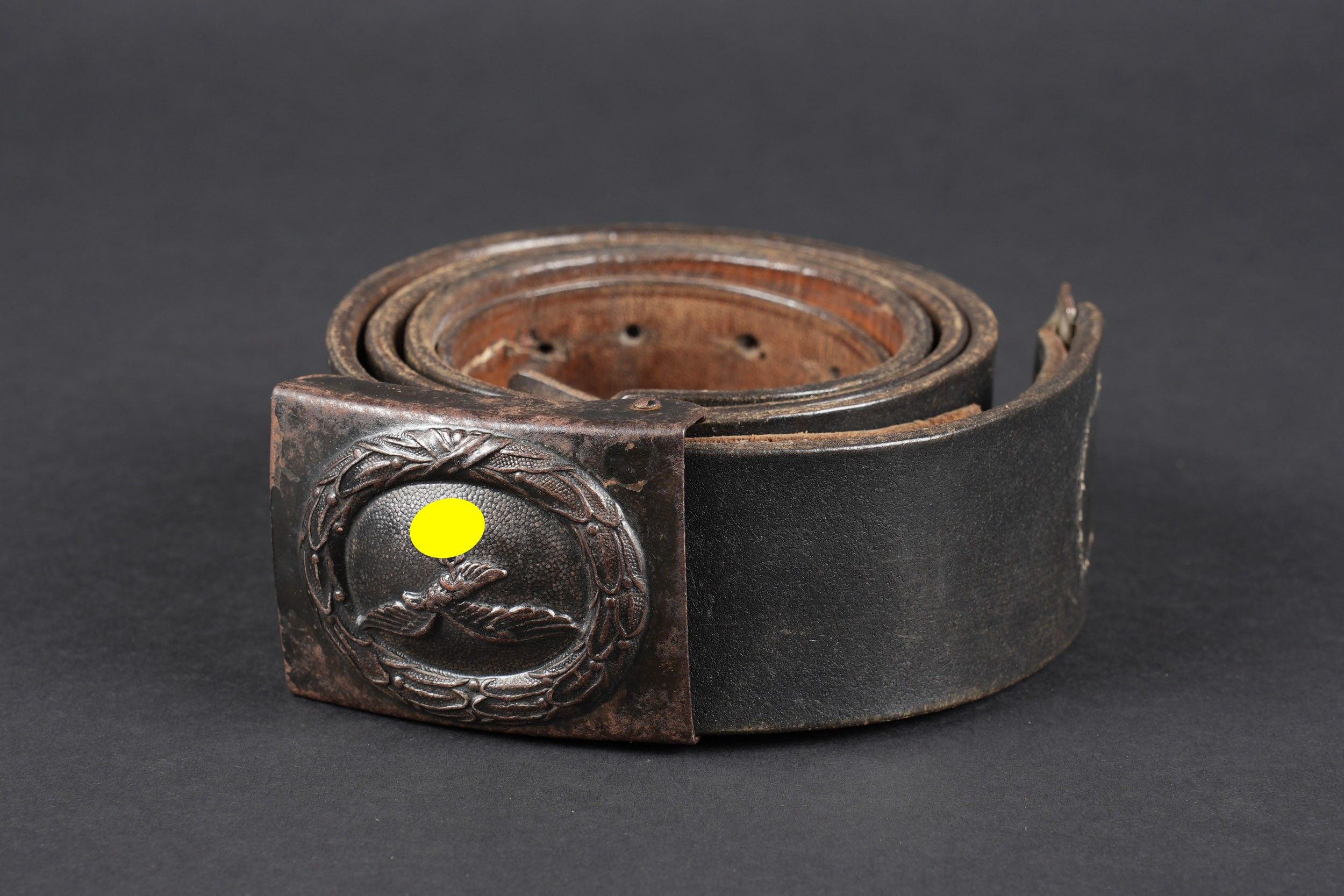 LW belt. Black leather belt. Metal buckle, with 40% Feldgrau…