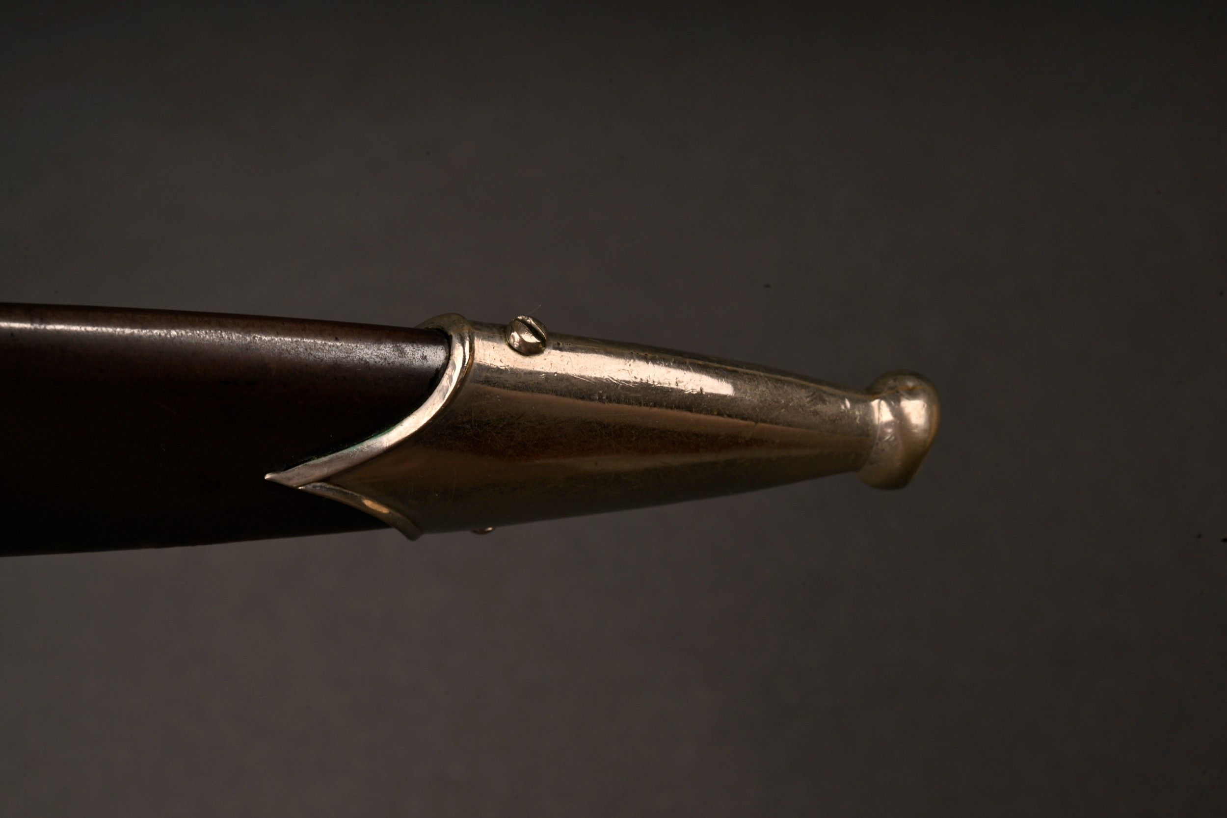 SS dagger model 1933 signed Röhm and partially erased Herder. This is another exceptional dagger but, unlike the previous example, the owner of this one has had a very light sanding operation carried out to remove Ernst Röhm's signature. In fact, the dedication remains in its entirety and the signature is still perfectly visible. One can guess that the owner was somewhat reluctant to remove Ernst Röhm's name. However, this procedure was not without its dangers at the time, as failure to comply with Himmler's directives could result in severe penalties, especially for a member of the Black Order. The fuse shows a few signs of tampering, attesting to the fact that this dagger was worn, even though it was dangerous for its owner's safety. The pastille at the top of the fuse with the double runes has a coppery appearance. This type of disc is generally found on daggers made from early cupro-nickel, which was originally covered with a layer of silver plating. This has disappeared with use over time. The hilt bears the Roman numeral II on the back, indicating that this example passed through the SS control and distribution centre in Dresden. The blade bears minor traces of oxidation, but this does not detract from the overall quality of the piece. The motto and dedication are in very good condition and only the signature is partly faded. This work appears to have been carried out by a professional. The maker's mark, Herder, is perfect. To date, only seven manufacturers are known to have produced these signed Ernst Röhm daggers, and Herder never used a small logo on this type of dagger. The scabbard retains 90% of its black tan and shows a few traces of oxidation. This type of dagger, still bearing Ernst Röhm's dedication with the signature barely erased, is very rarely encountered; more often than not, the signature is completely erased. This is an exceptional piece that is very difficult to find today. This dagger is featured on page 33 of the reference book L'ordre noir, Armes blanches, traditions et symbolique, published by Heimdal - 2023. SS Dagger Model 1933 Röhm Dedication Partially Erased Herder Another exceptional dagger but unlike the previous example the owner of this one had the Röhm signature lightly ground away. The dedication remains fully intact and the signature is still clearly visible. This suggests a certain hesitation by the owner to completely remove Ernst Röhm's name. Such partial erasure was not without risk at the time as failure to comply with Himmler's directives could result in severe punishment especially for a member of the Black Order. The grip shows light handling traces indicating the dagger was worn despite the danger it represented for its owner. The grip emblem with the double runes shows a coppery hue, typical of early production pieces made of cupro-nickel originally plated with silver, the plating having worn off over time. The crossguard bears the Roman numeral II stamped on the reverse indicating inspection through the SS control and distribution center in Dresden. The blade shows only light oxidation that does not affect the overall appearance. The motto and dedication are in very good condition with only the signature partially erased, a work that appears to have been professionally executed. The maker mark Herder is perfectly preserved. Only seven makers are known to have produced these Röhm dedication daggers and Herder never used the small logo on this type. The scabbard retains 90% of its black finish with some light oxidation. Daggers that still retain the Röhm dedication with only the signature partially erased are extremely rare since in most examples the entire inscription was removed. Exceptional and very hard to find today. This dagger is featured on page 33 of L'ordre noir, Armes blanches, traditions et symbolique, published by Heimdal in 2023.