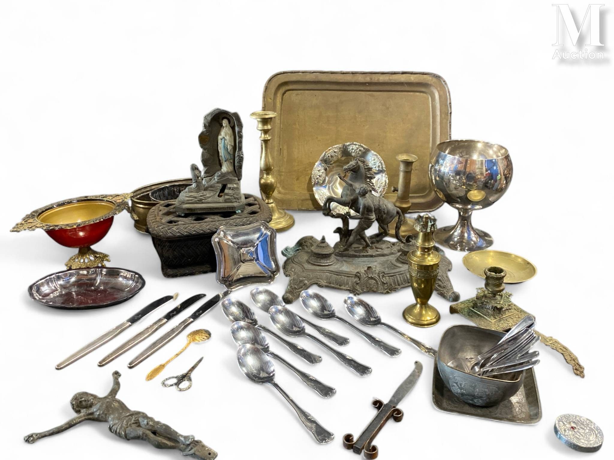 Comprising: trays, cutlery, candlesticks, bowls, and miscellaneous.