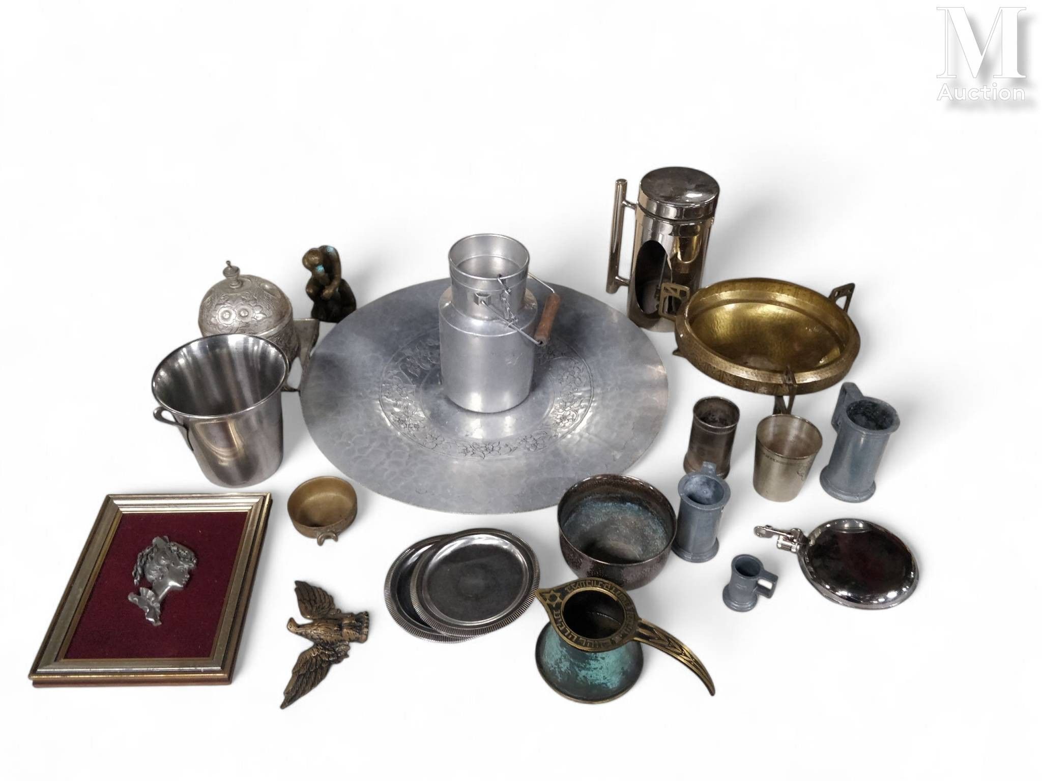 HANDLE - METAL comprising; pewter dish and mug, carafe base,…