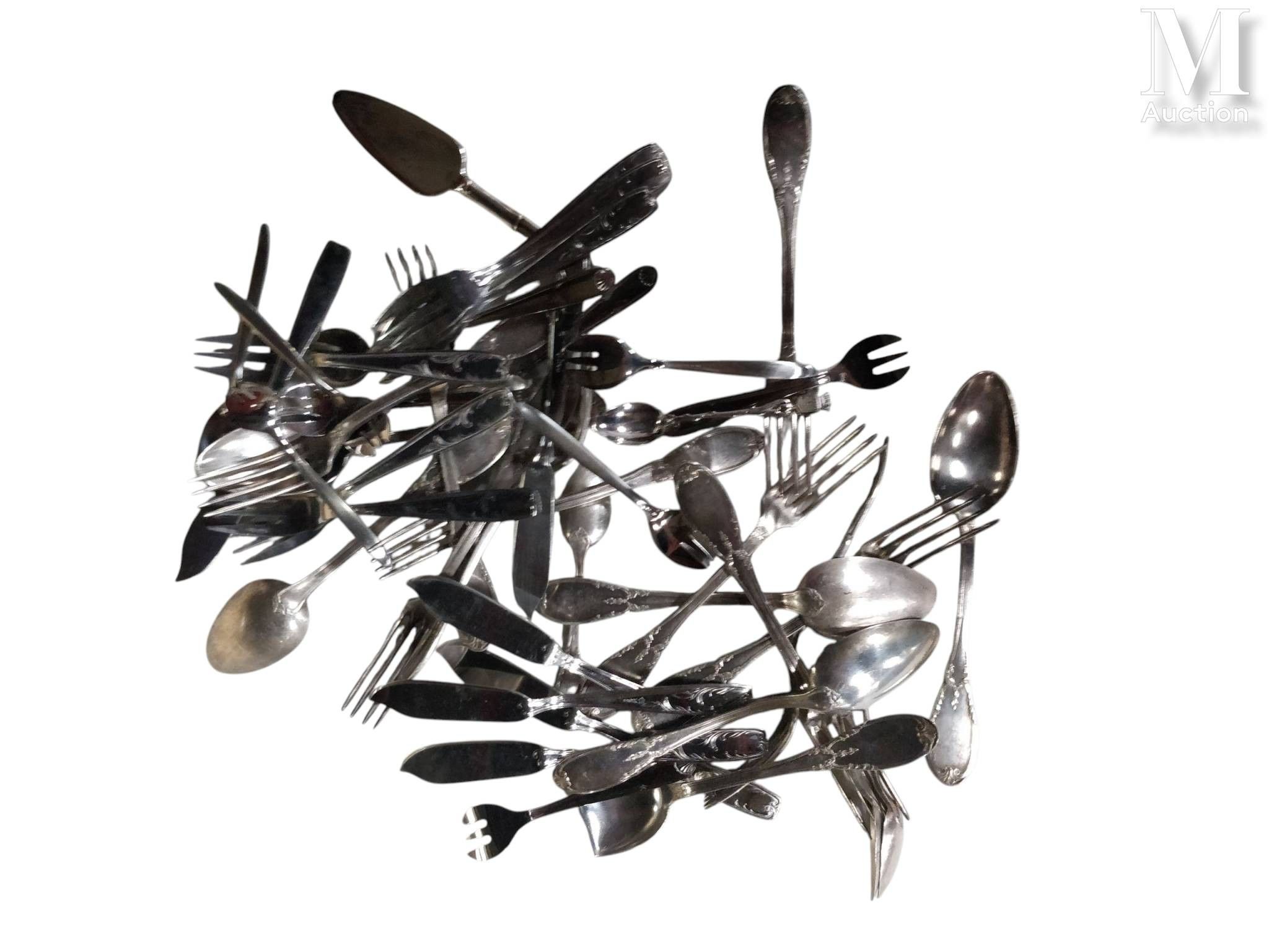 comprising; pewter dish and mug, carafe base, brass tripod bowl, set of cutlery and miscellaneous