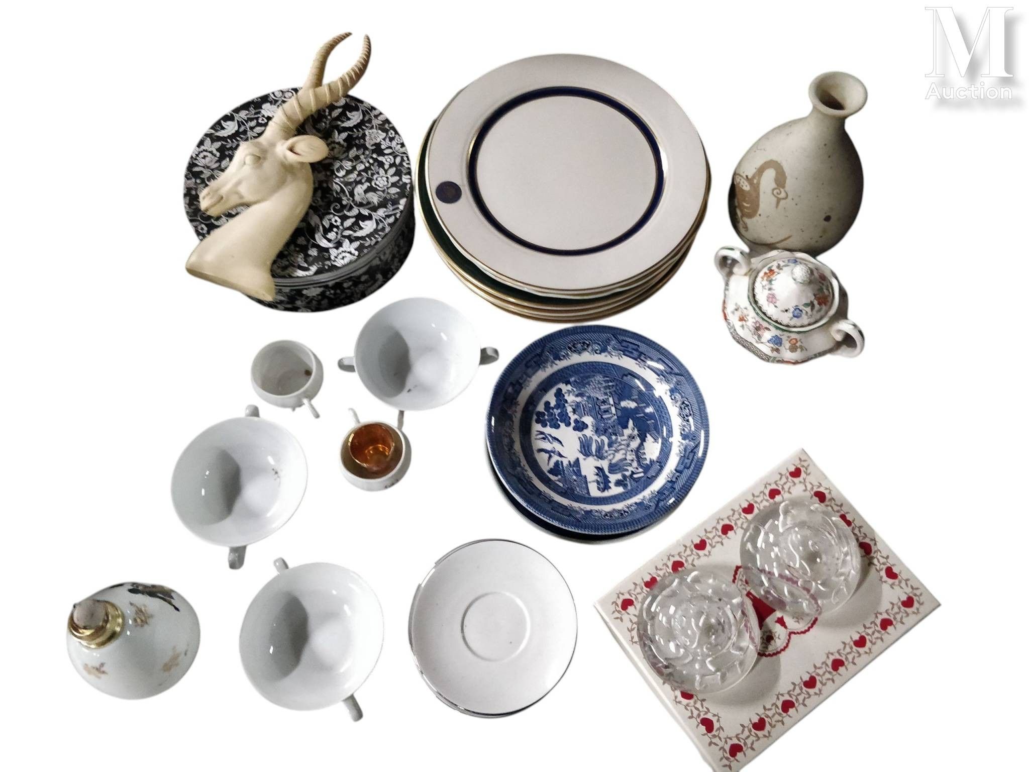 HANDLE - SERVICE SET including; mismatched plates, vase, pap…
