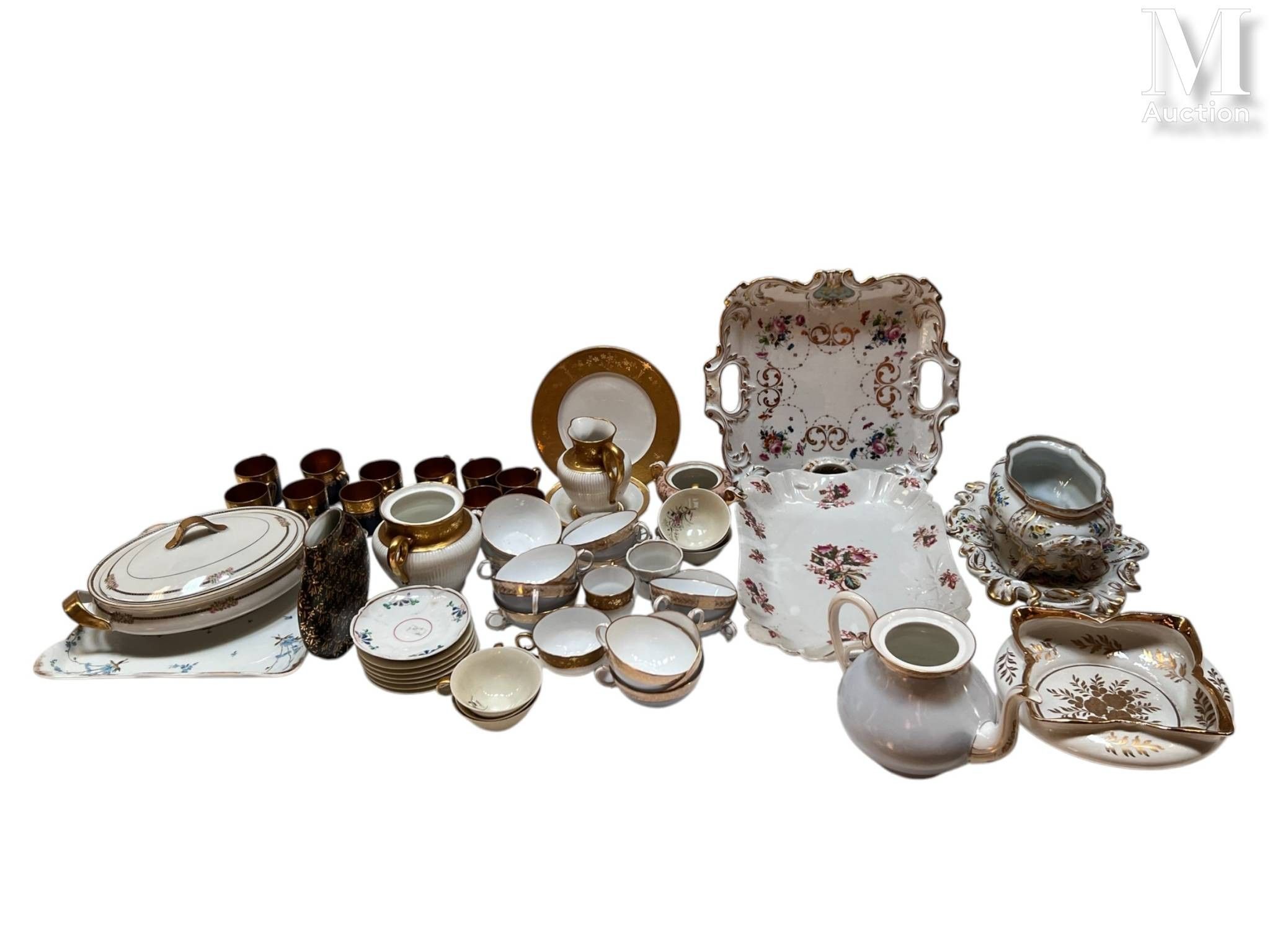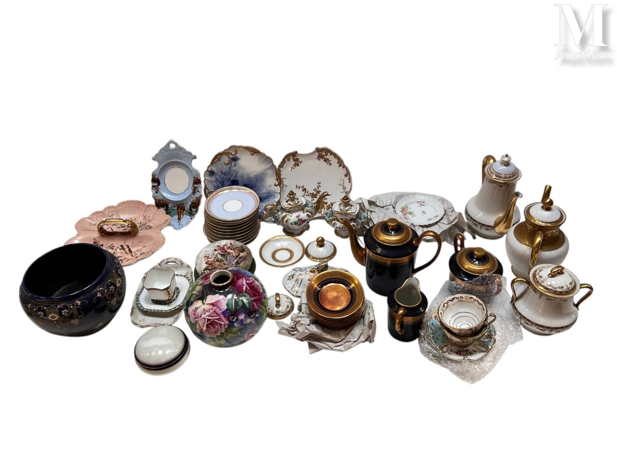 Porcelain including: trays, presentation dishes, serving dishes, soup tureens, tea and coffee sets (including teapot, coffee pot, milk jug, cups and saucers), pots and vases.