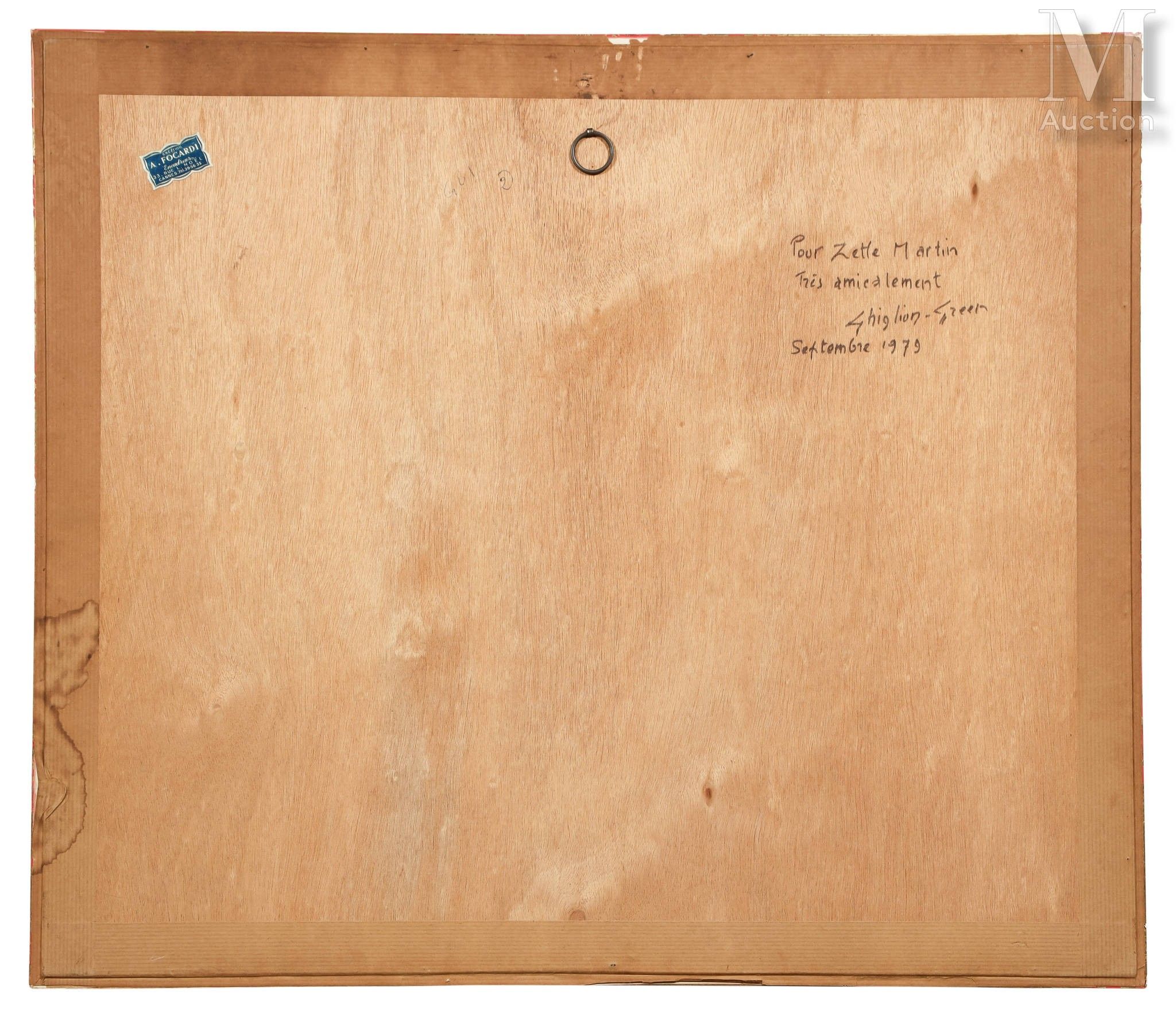 Signed lower left, countersigned, dedicated and dated "sept 1979" on the back on the frame