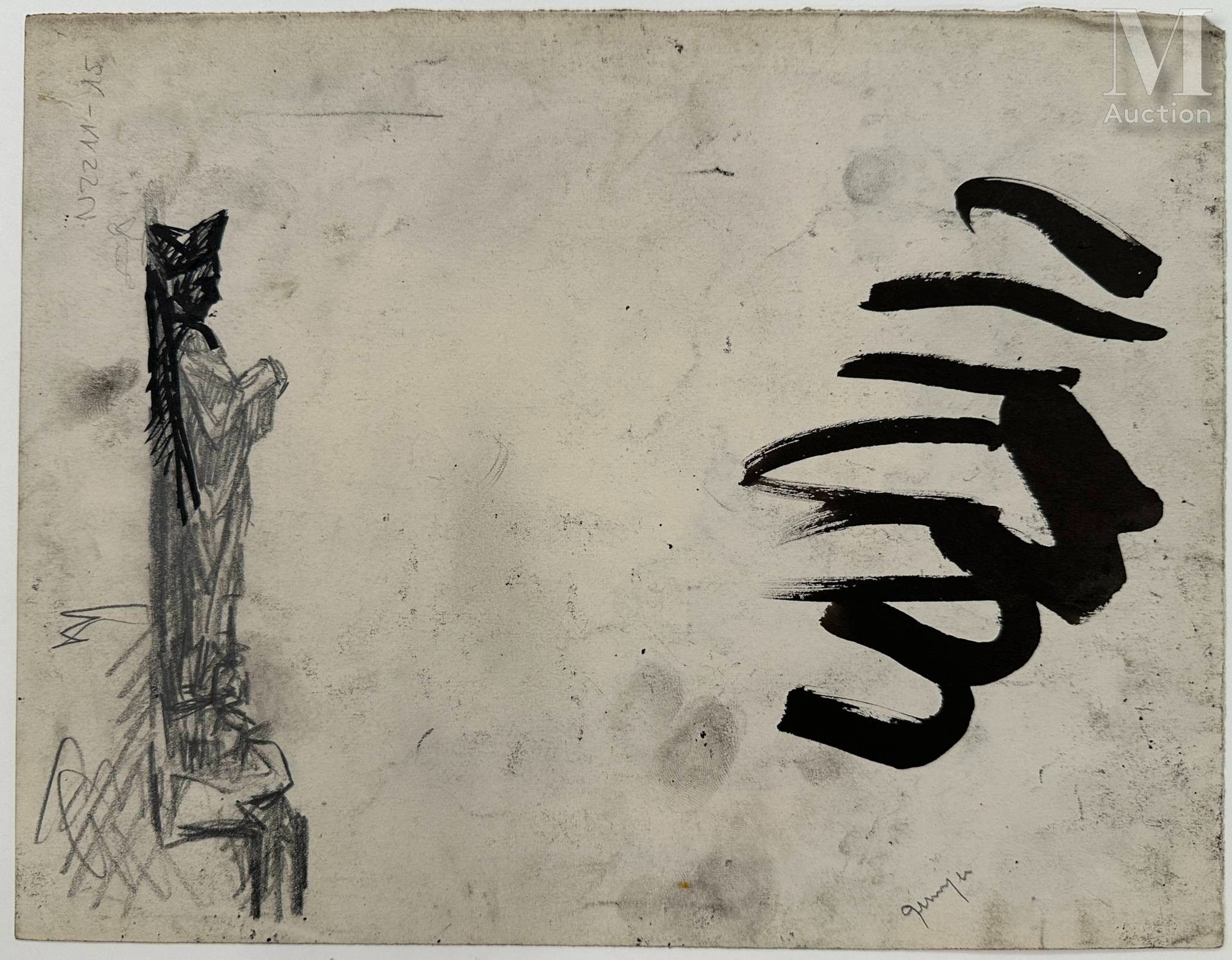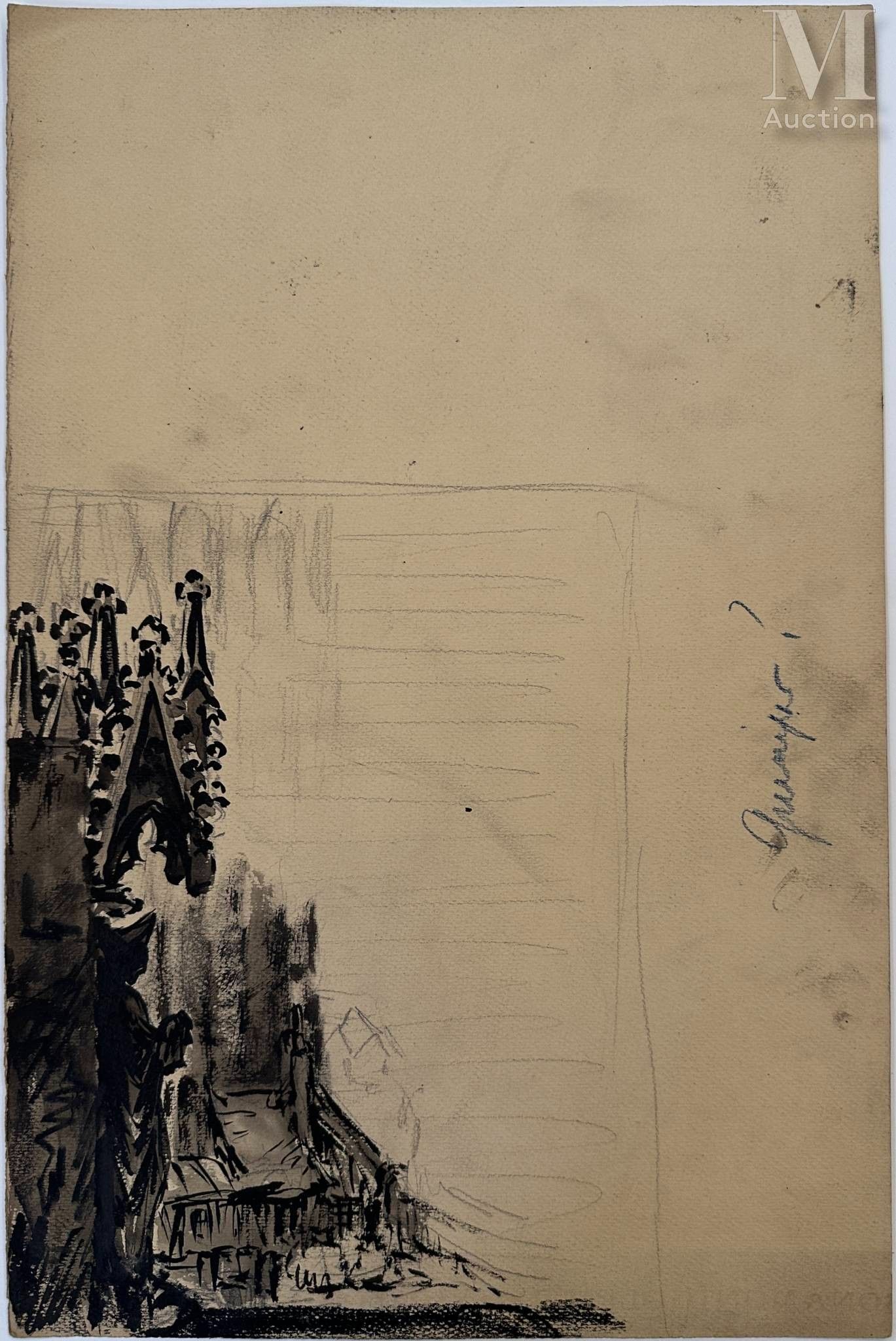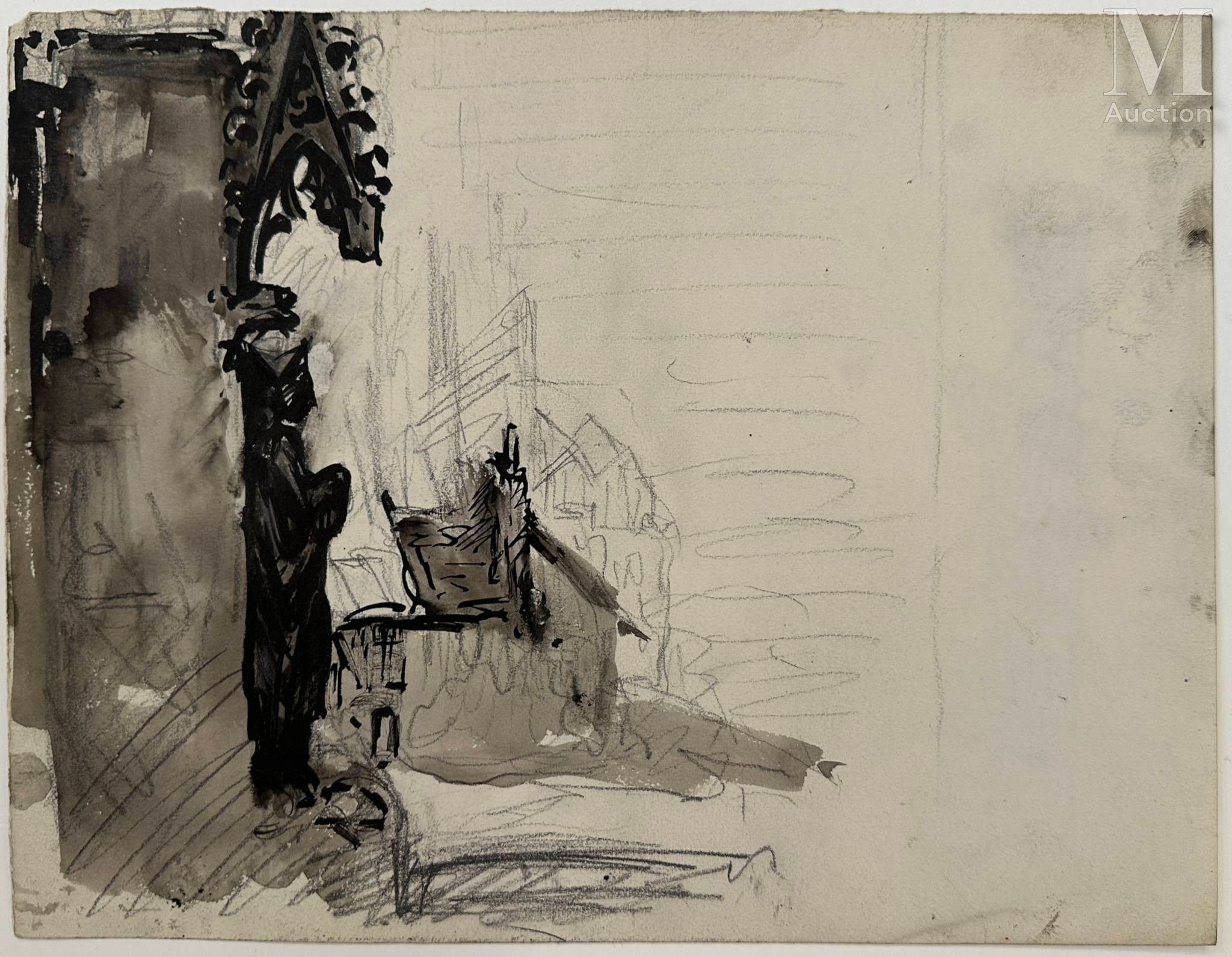 Lot of 5 works comprising 2 inks and ink washes on pencil lines, 1 charcoal, 1 charcoal and watercolour and 1 print