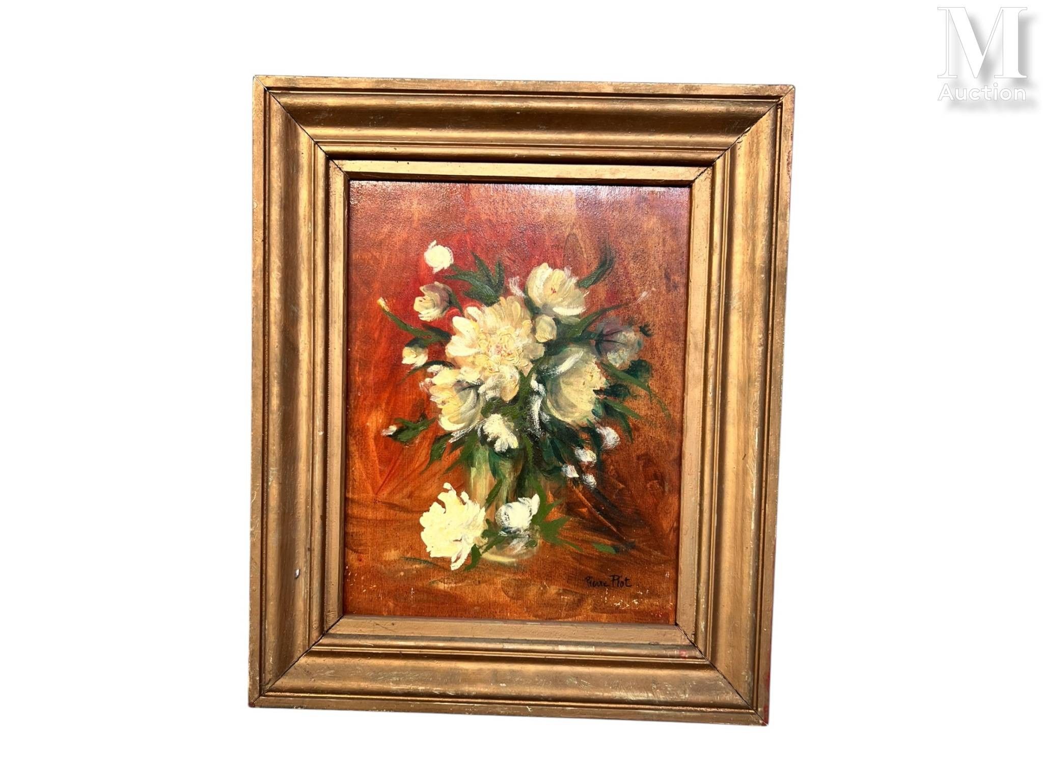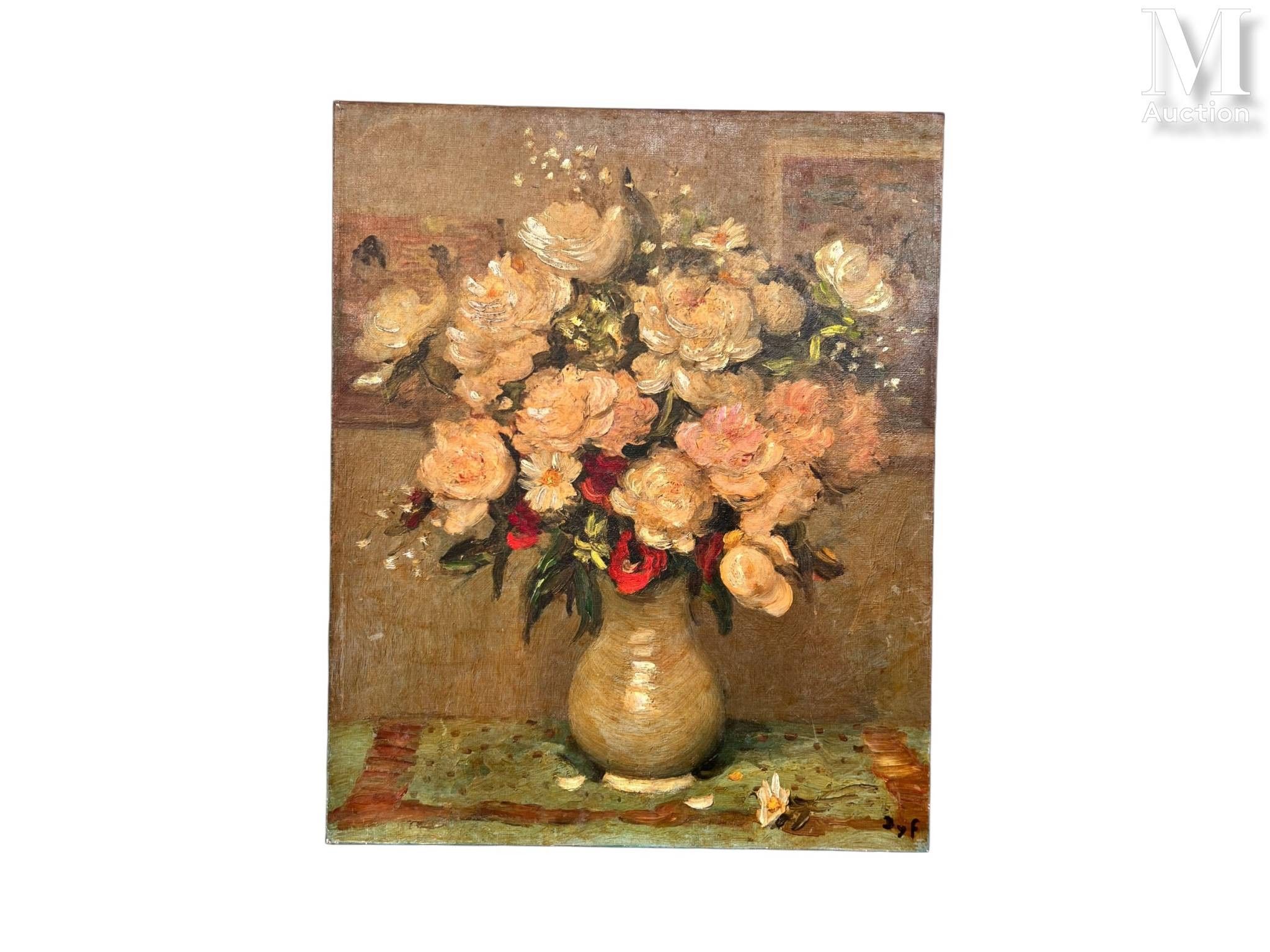 Attached is a reproduction on canvas of a bouquet of flowers by Marcel Dyf