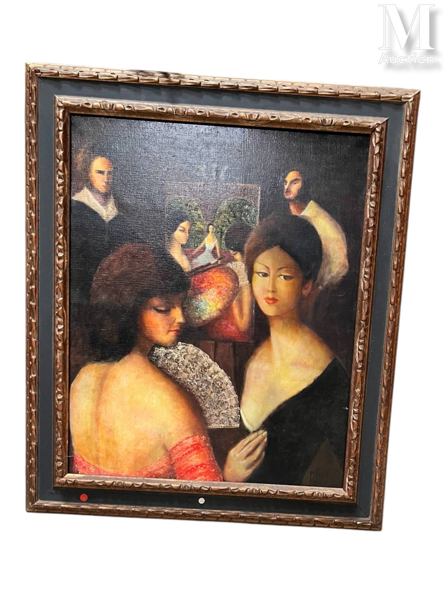Signed lower right, located in Paris, titled and dated 1974 on the stretcher, on the back of the canvas marked "salon d'automne Grand Palais Champs Elysée Paris".