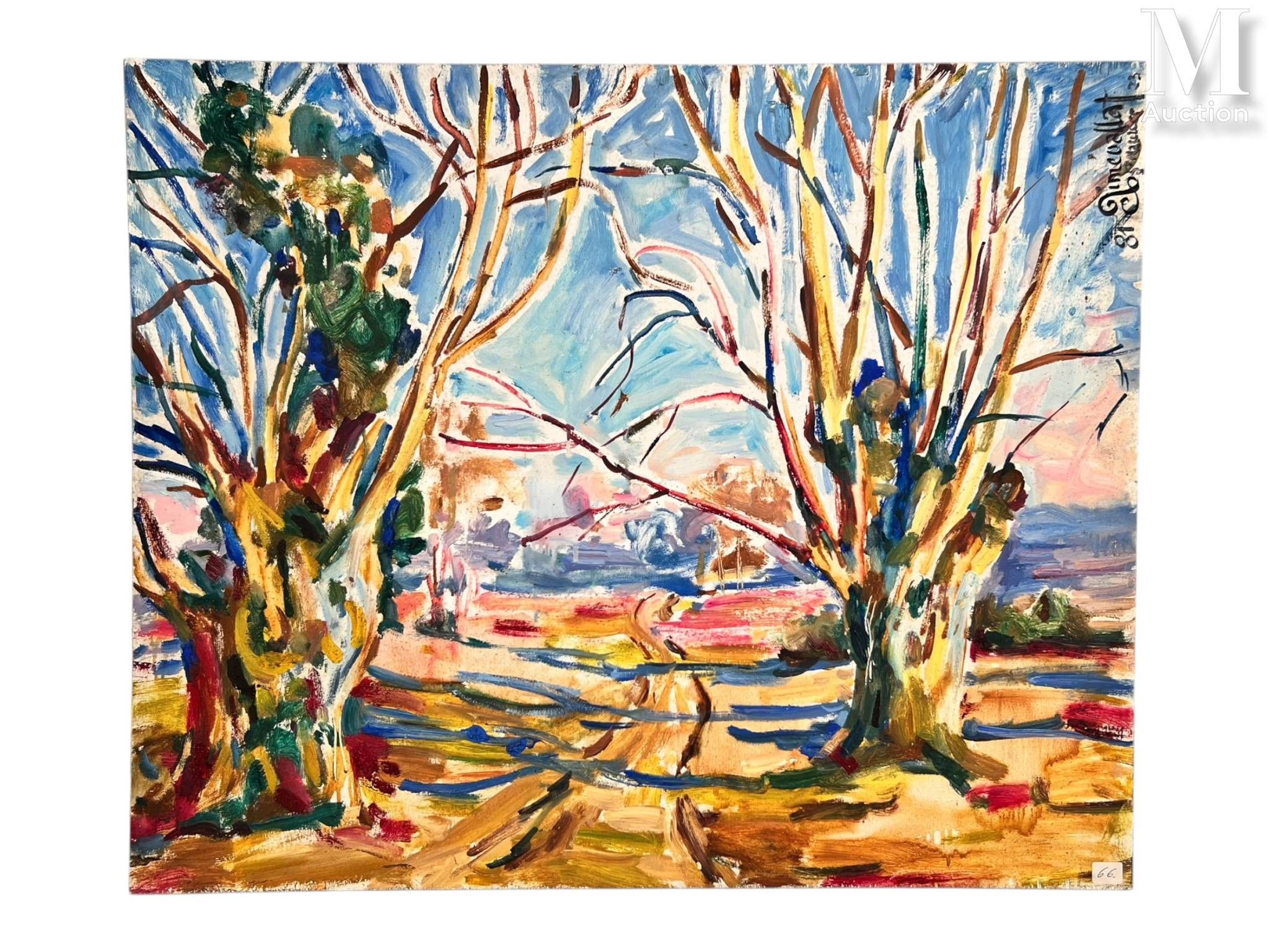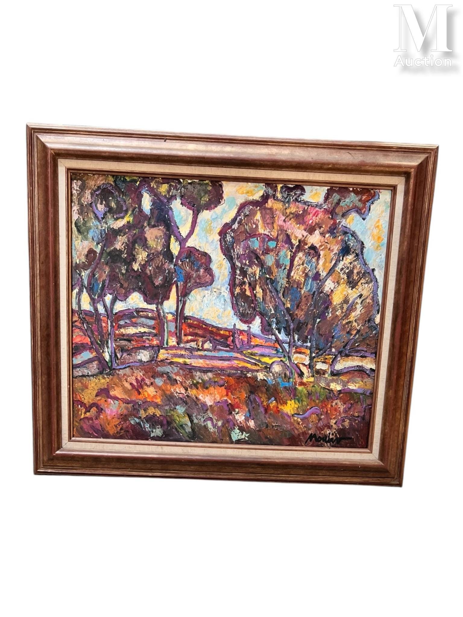 Signed lower right "MOULIN" (?), titled on the stretcher