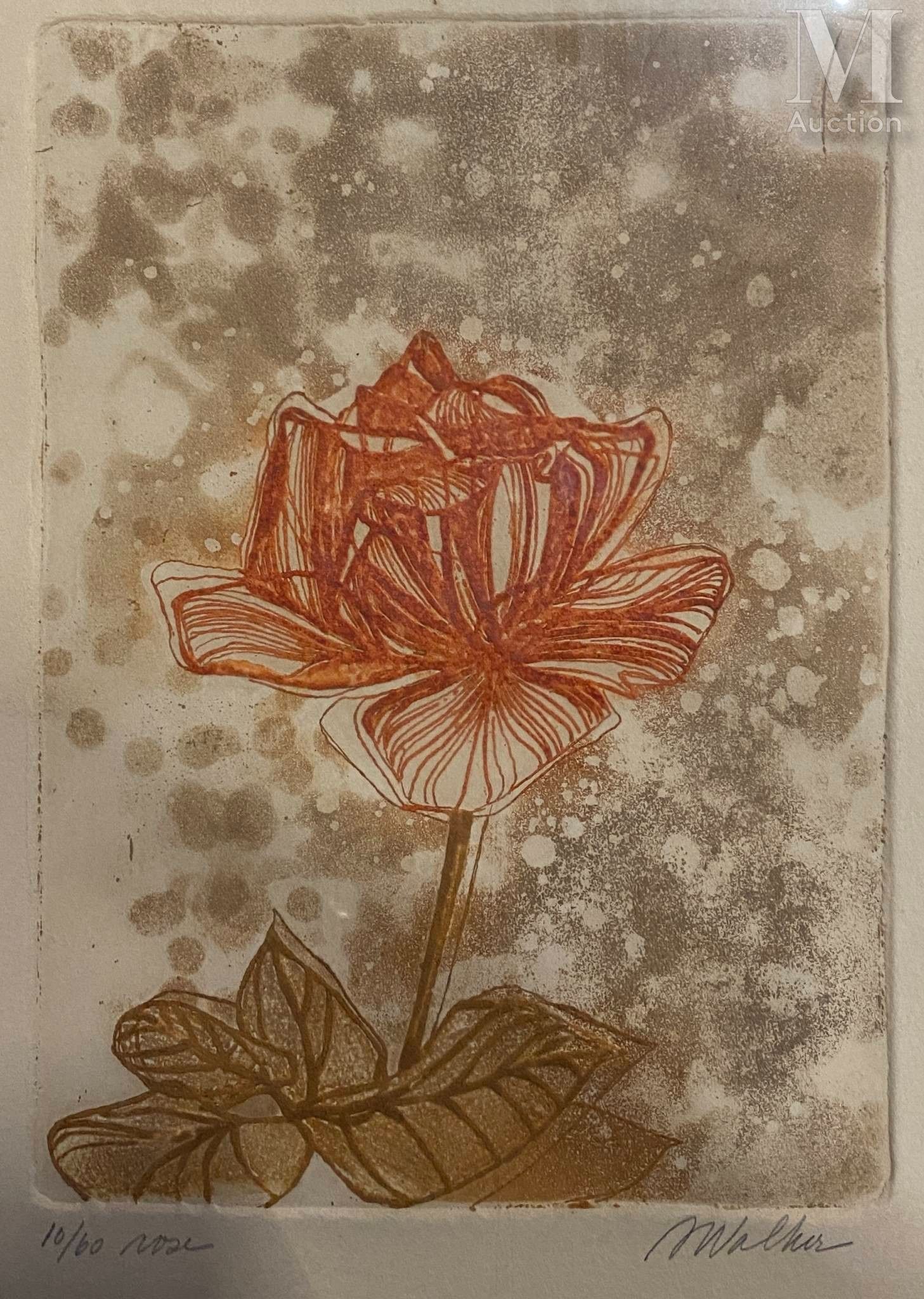 M WALKER ( XX-XXIth) Rose Aquatint and mixed technique.