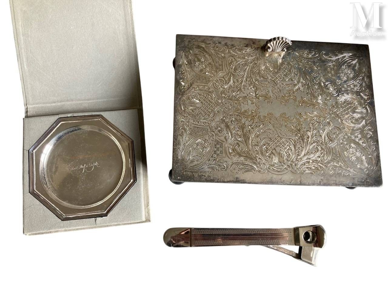 Cigar set A damaged cigar box (handle missing), "Silver plat…