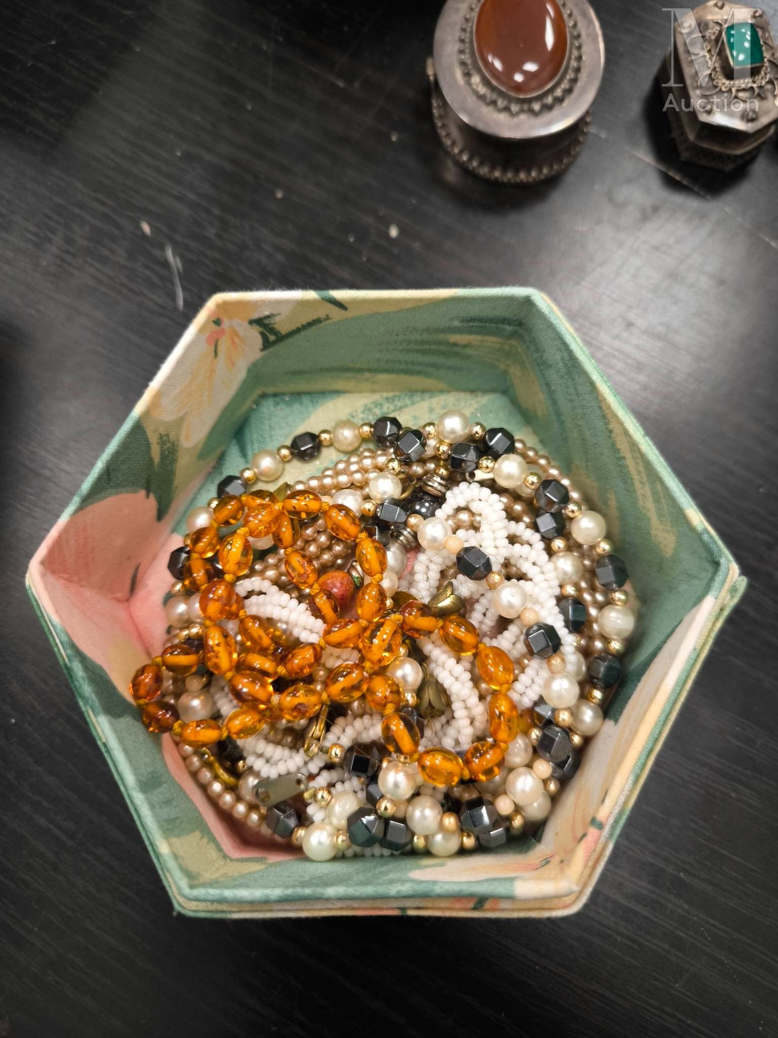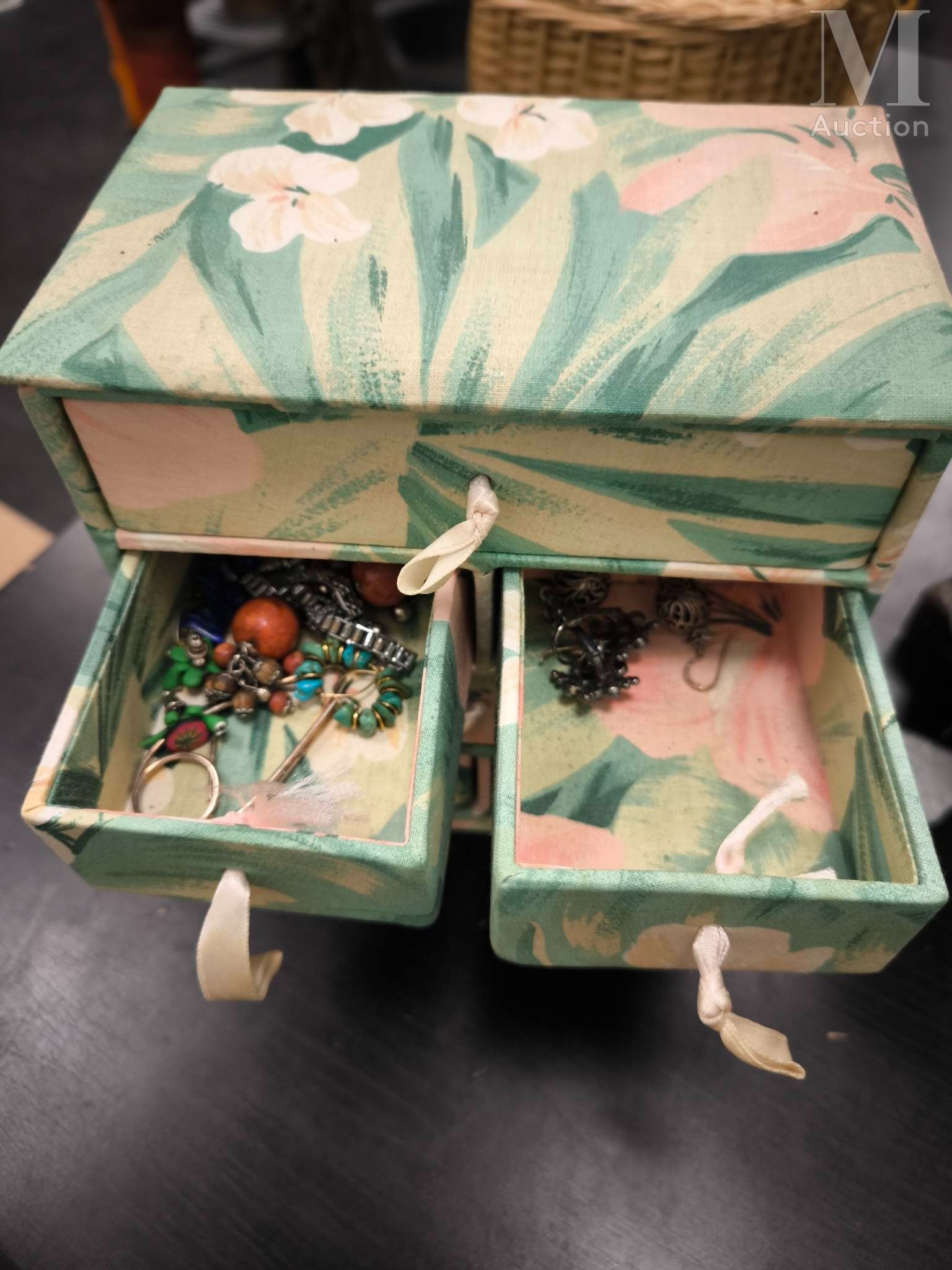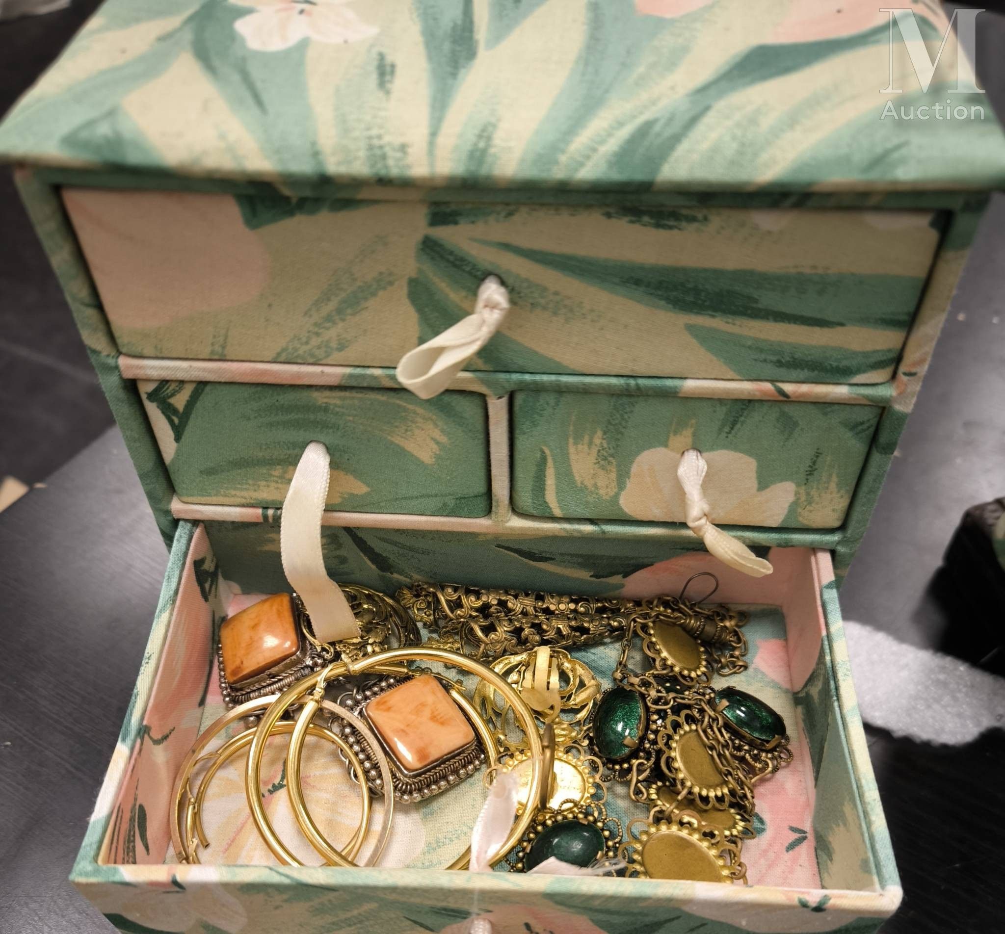 A wide range of costume jewellery: necklaces, earrings, brooches, bracelets, boxes and more.