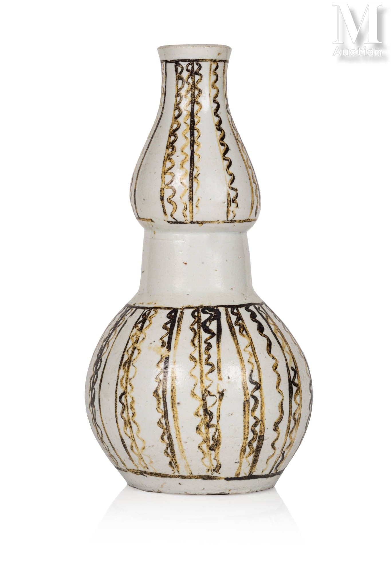 Gourd-shaped ceramic, decorated with brown serpentine highlights