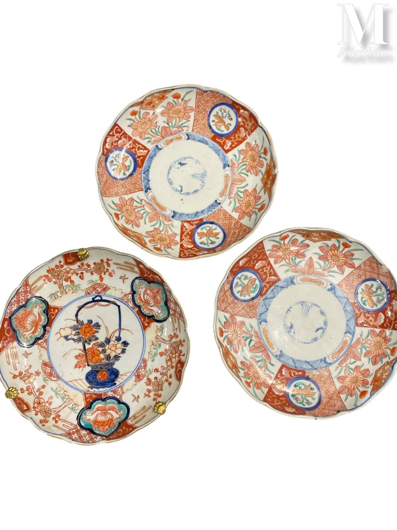 JAPAN Three Imari plates. Two with four characters on the ba…