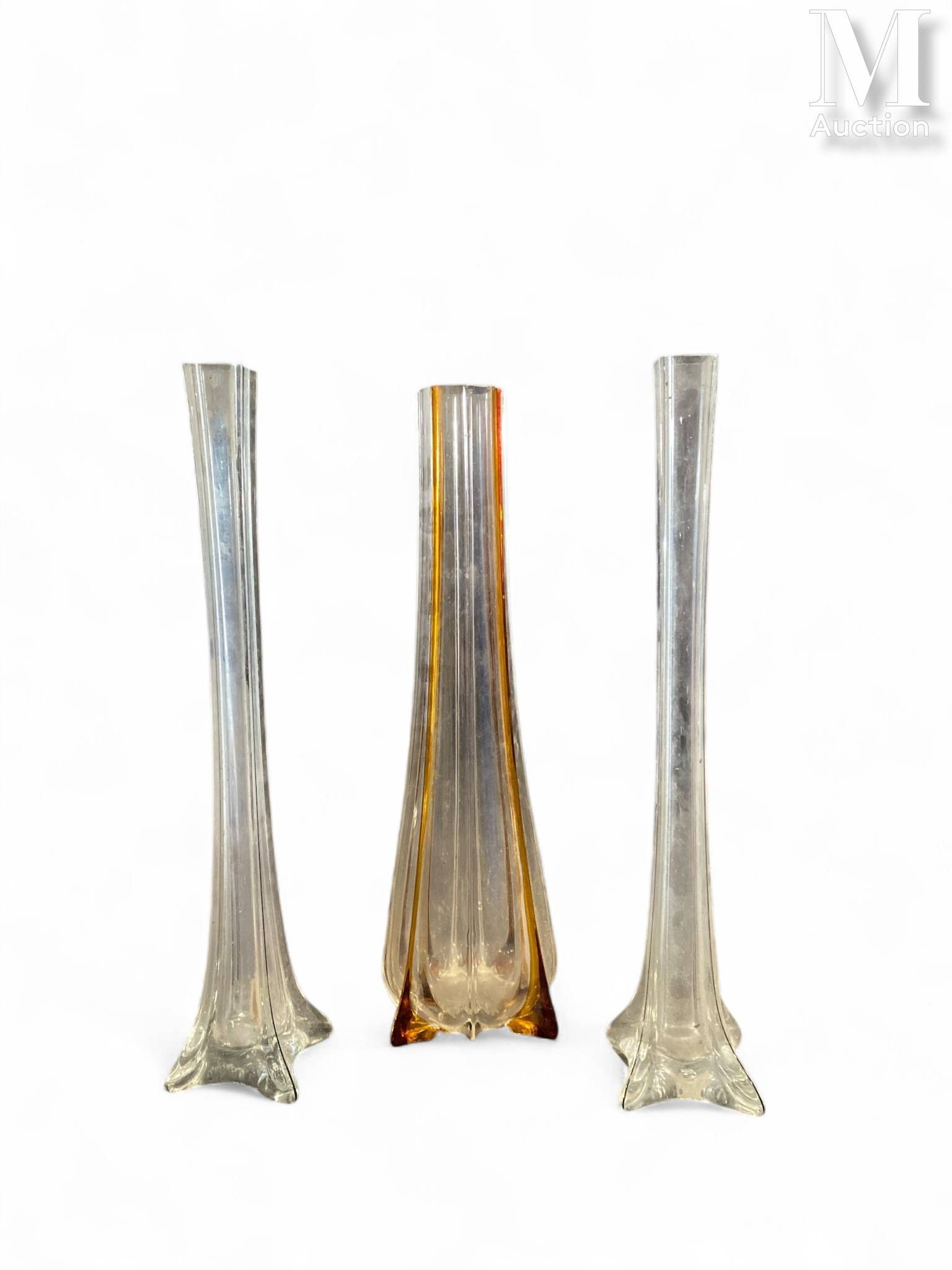 with pinched edges, one pair with black fillets and one vase with orange edges.