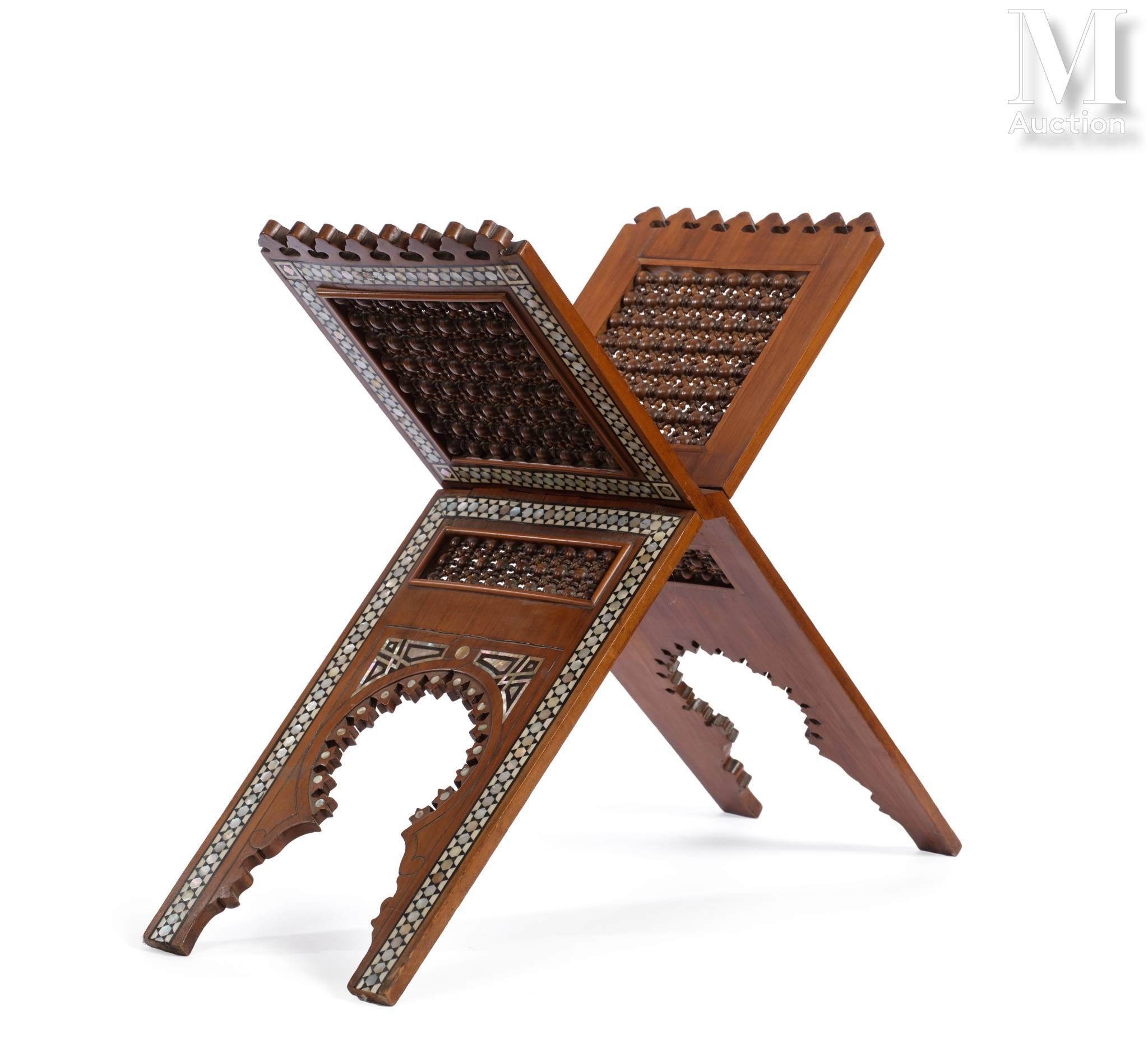 An openwork mother-of-pearl inlaid wood Qur'an stand (kursi), Near East, probably Egypt, early 20th century