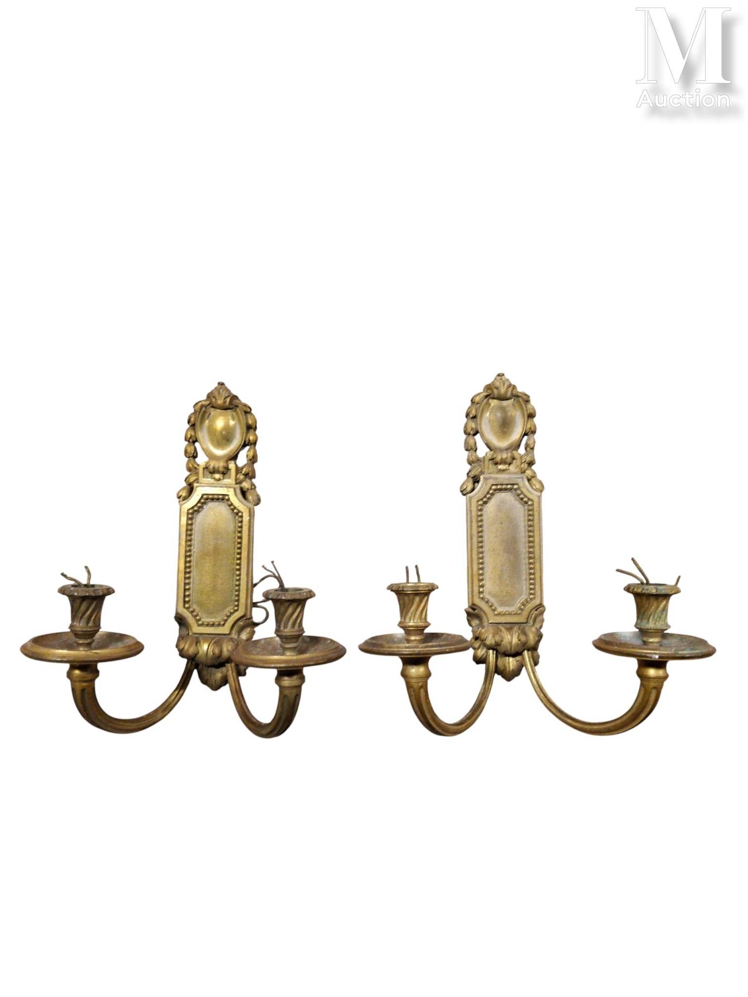 in gilt bronze, with two arms of light. The architectural base is topped by a cartouche and laurel leaves. Intaglio mark AC 2477 on the back of one of the arms.