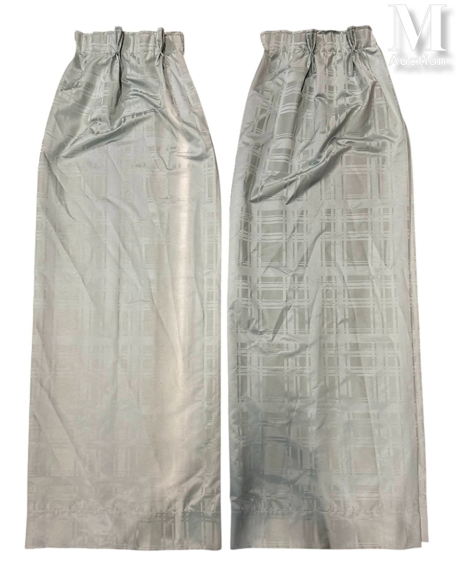 PAIR OF CURTAINS In celadon-coloured silk-like fabric with a…