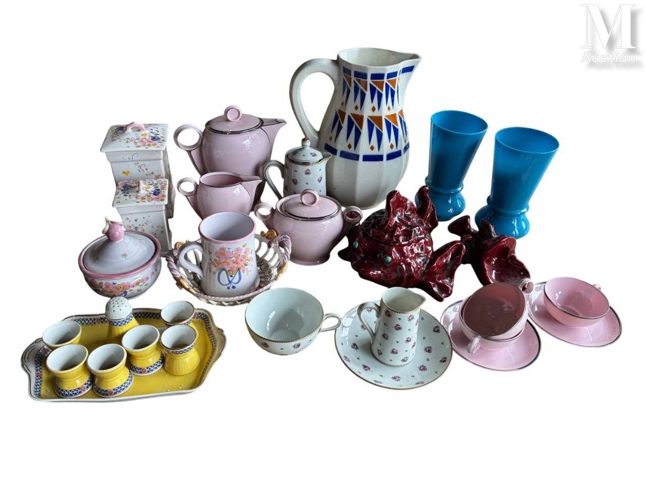 MANETTE - Ceramic a set of porcelain services, jug, opaline …