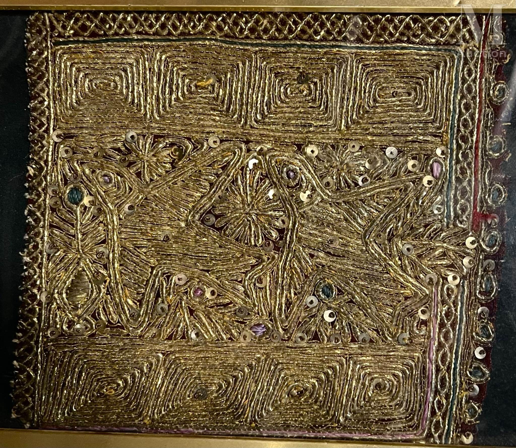 INDIA Mughal embroidery depicting two birds, woven with gold…