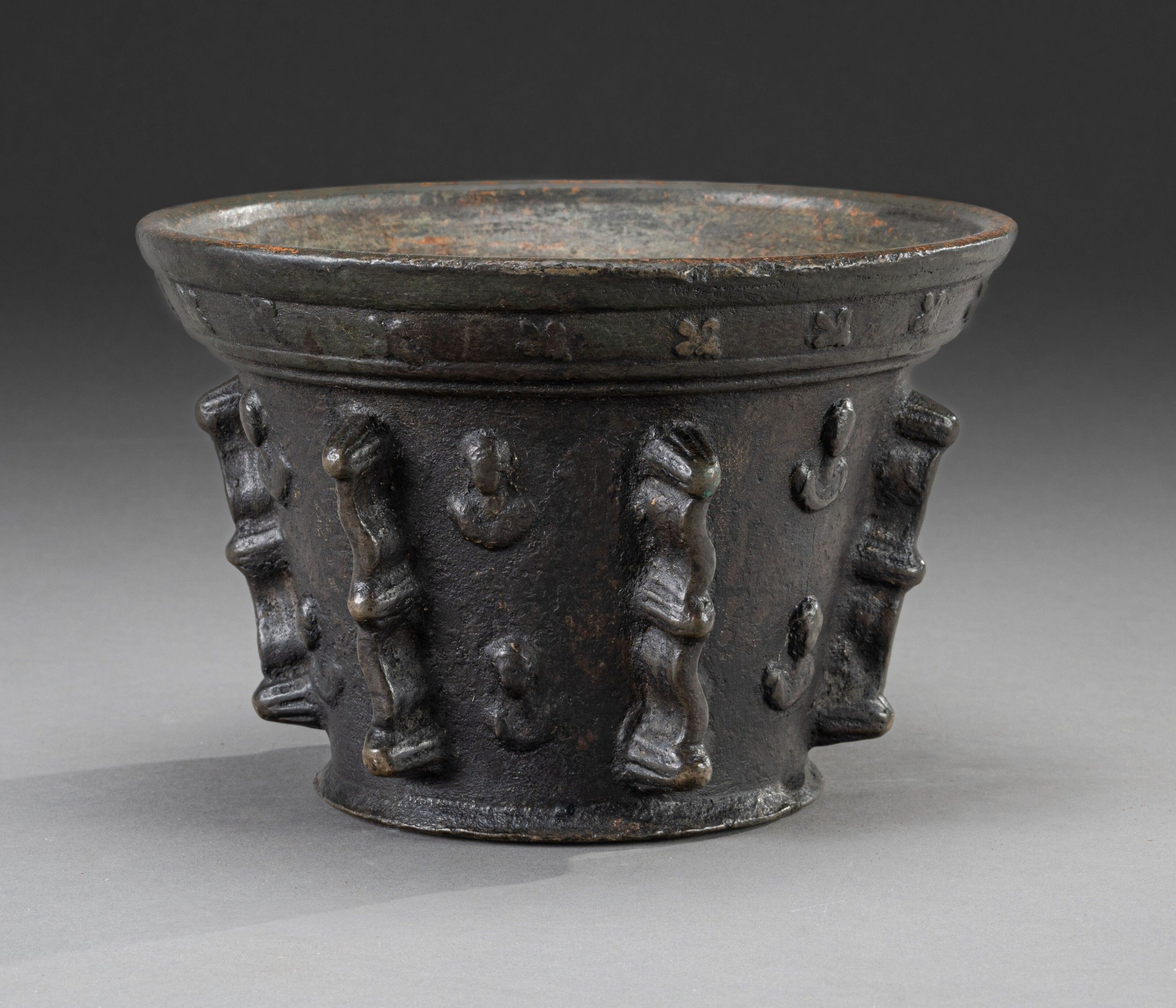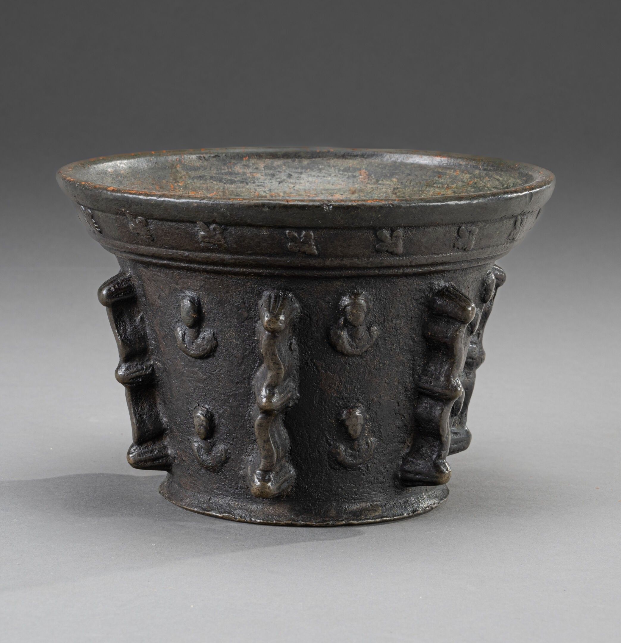 Bronze mortar with intercalary busts and fleurs-de-lys under…