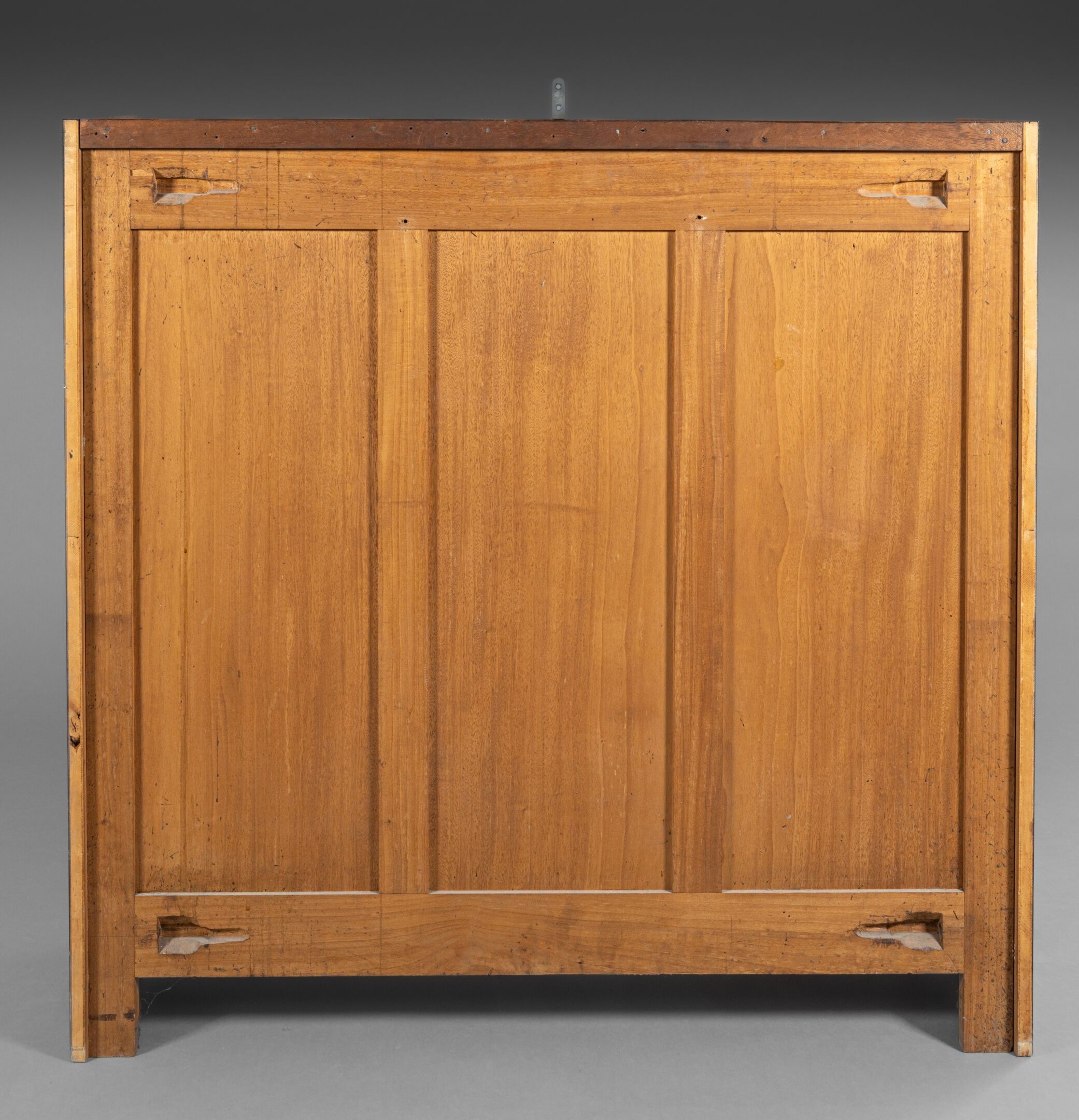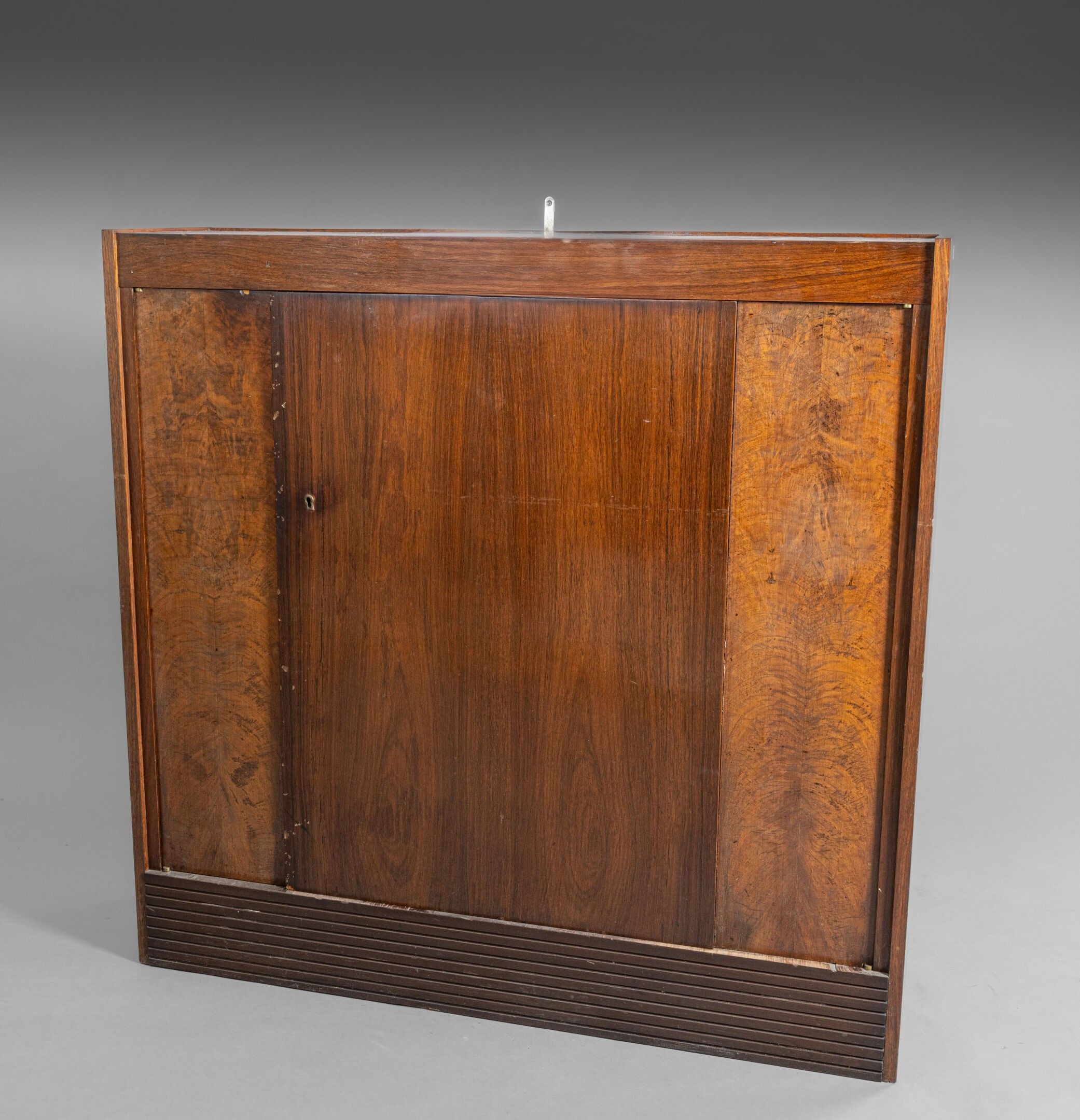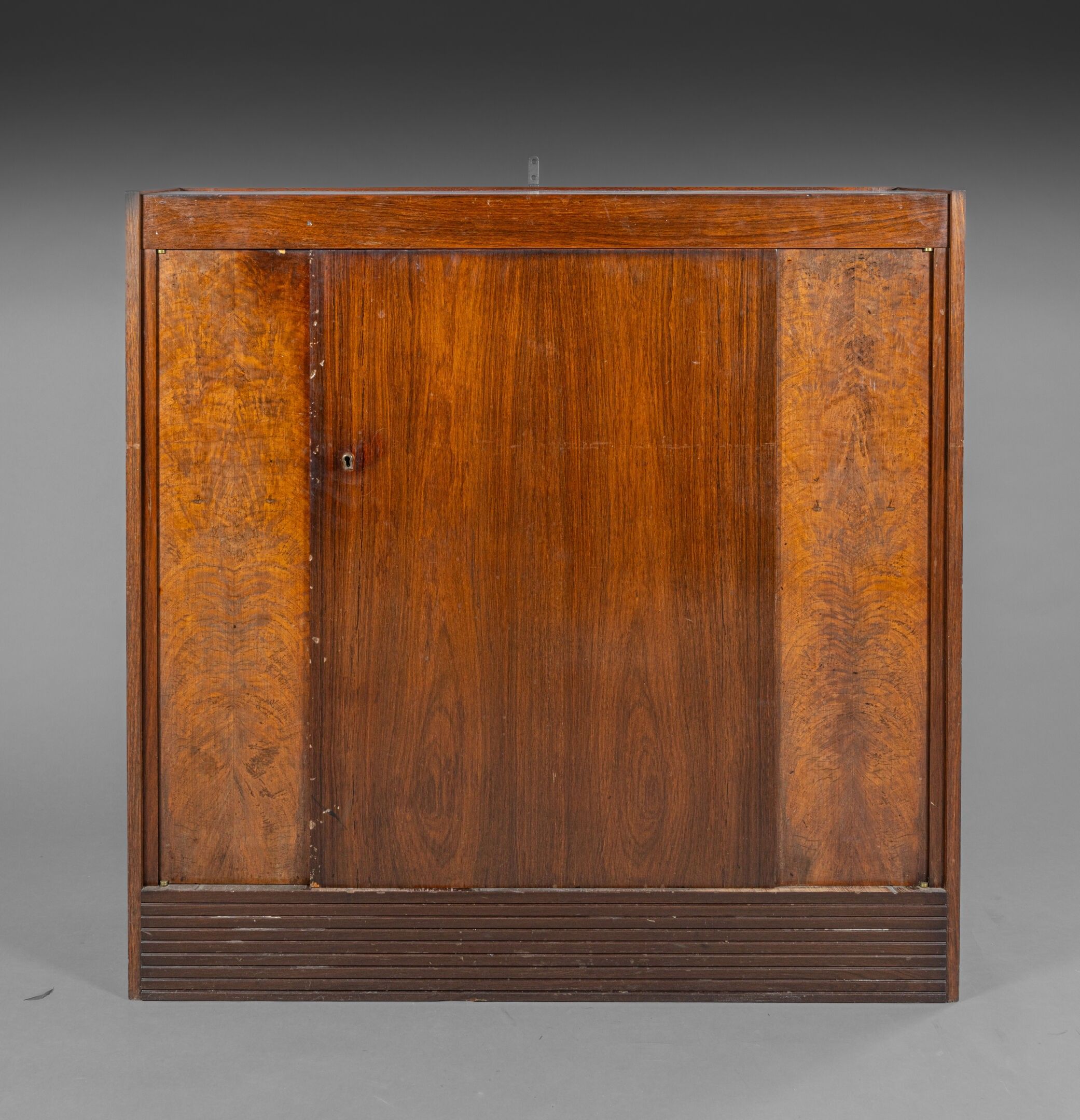 Marcel CHARPENTIER & Victor COURTRAY (in the style of) Exotic wood and walnut veneered bookcase with a quadrangular body opening onto a central door and two smaller side doors. Full grooved legs. H. 113 cm - W. 116 cm - D. 30 cm AM