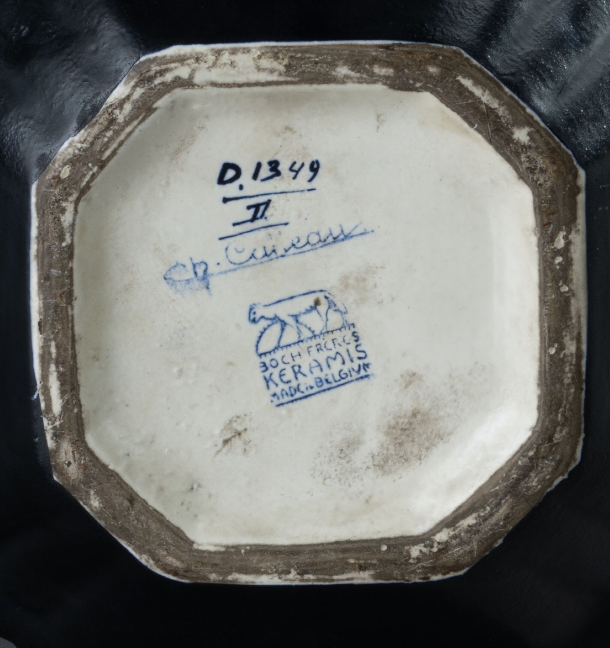 Bibliography: Marc Pairon, Art Deco Ceramics Made in Belgium, Fondation Charles Catteau, 2006, design no. 1349 referenced on p. 682 and similar model referenced under no. 895 and reproduced on pp. 398-399.