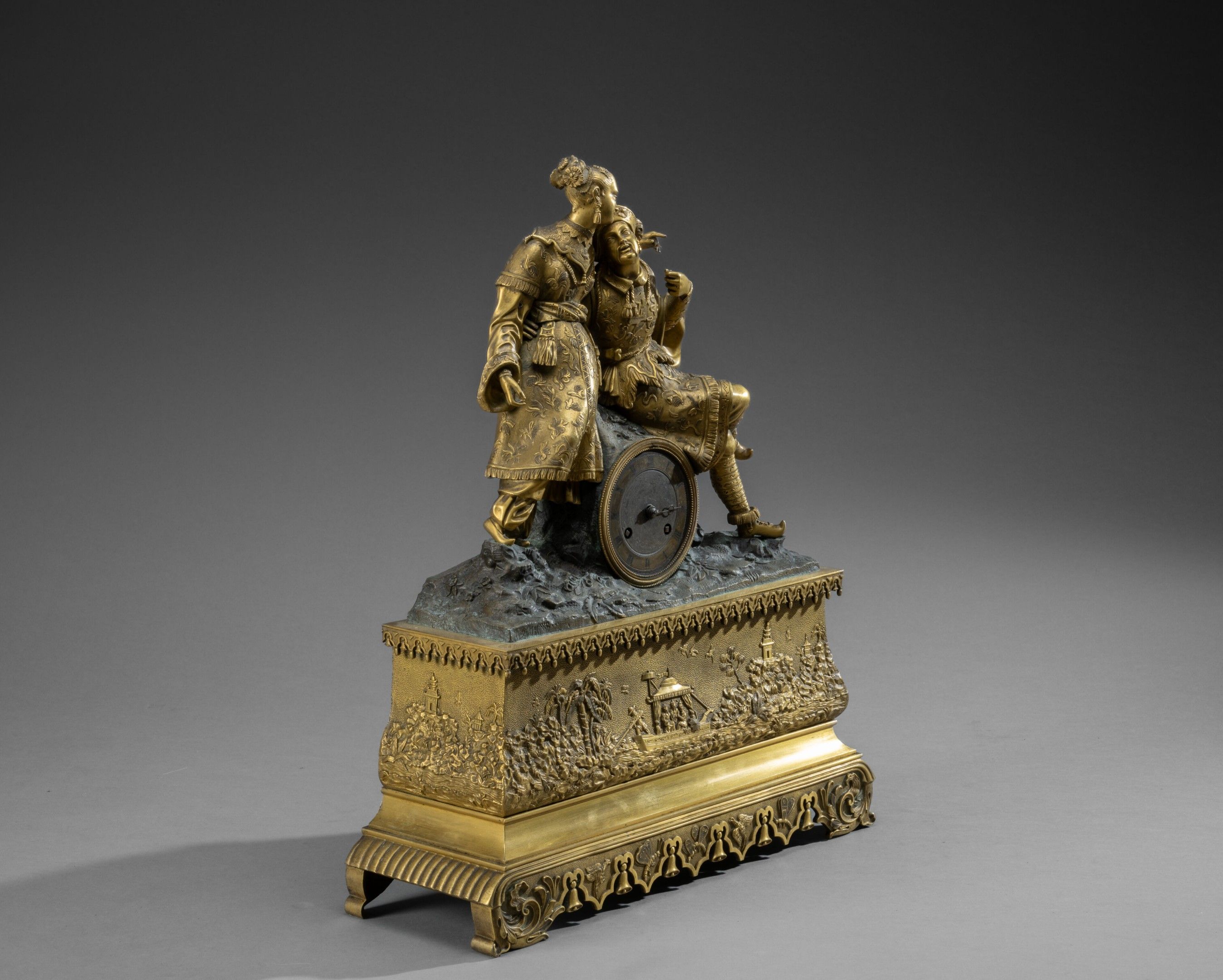 Premium An ormolu and patinated clock with a figure of a Chinese cou…
