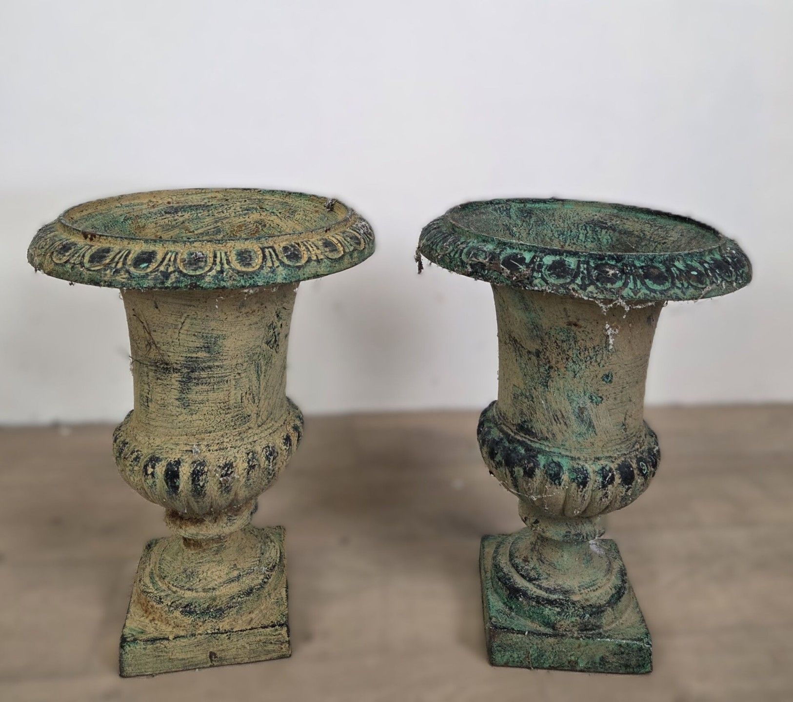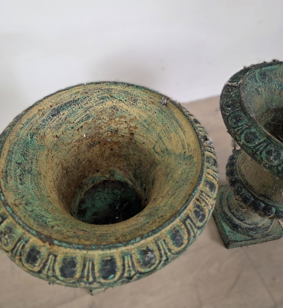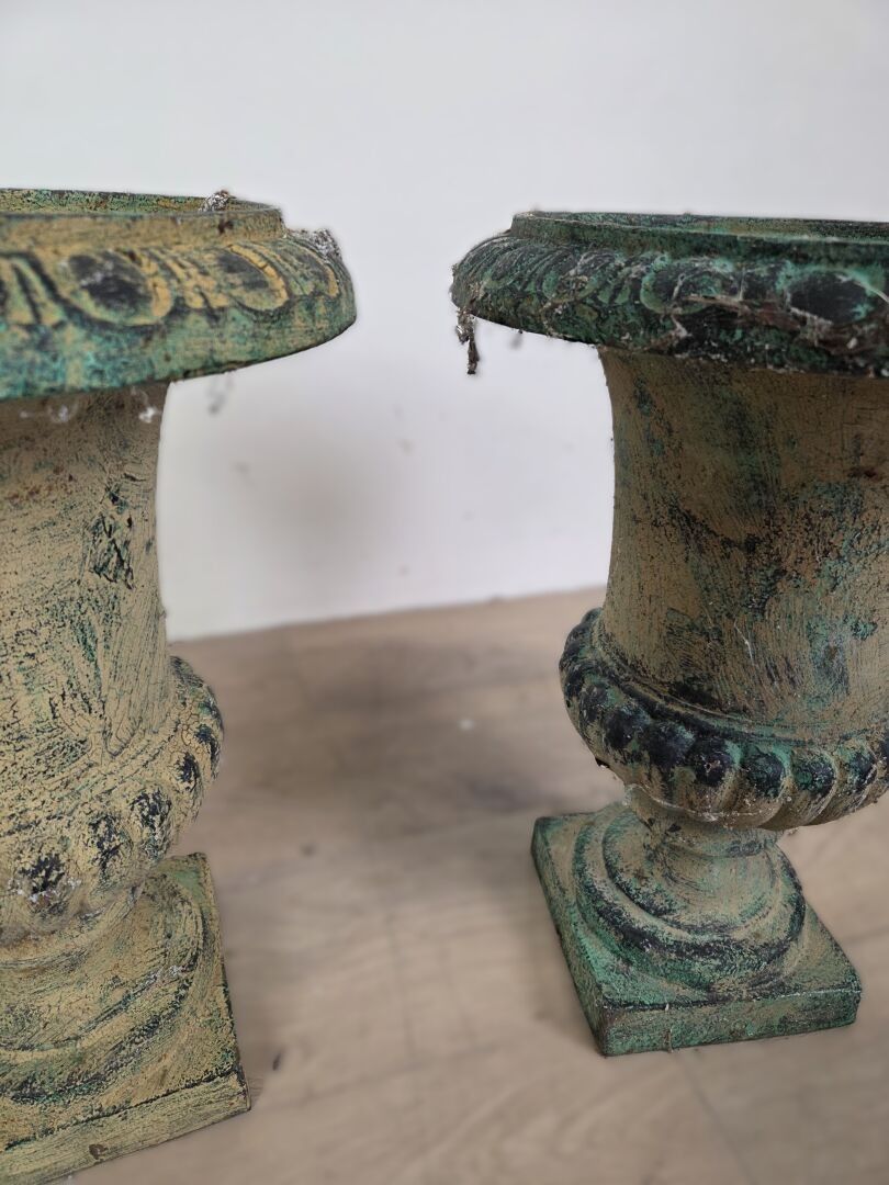 Two Medici-shaped vases in cast iron with green patina - Height: 45 cm