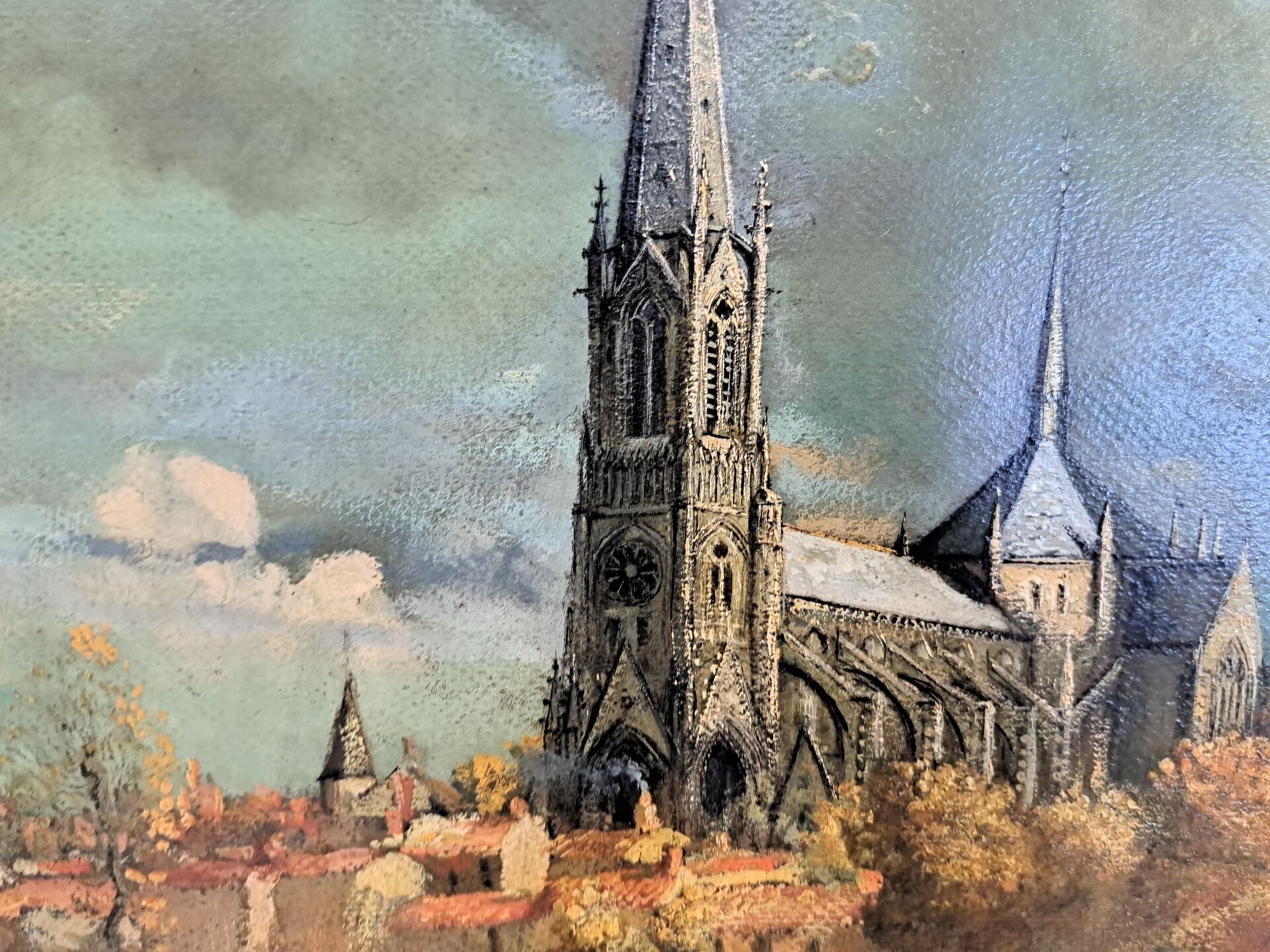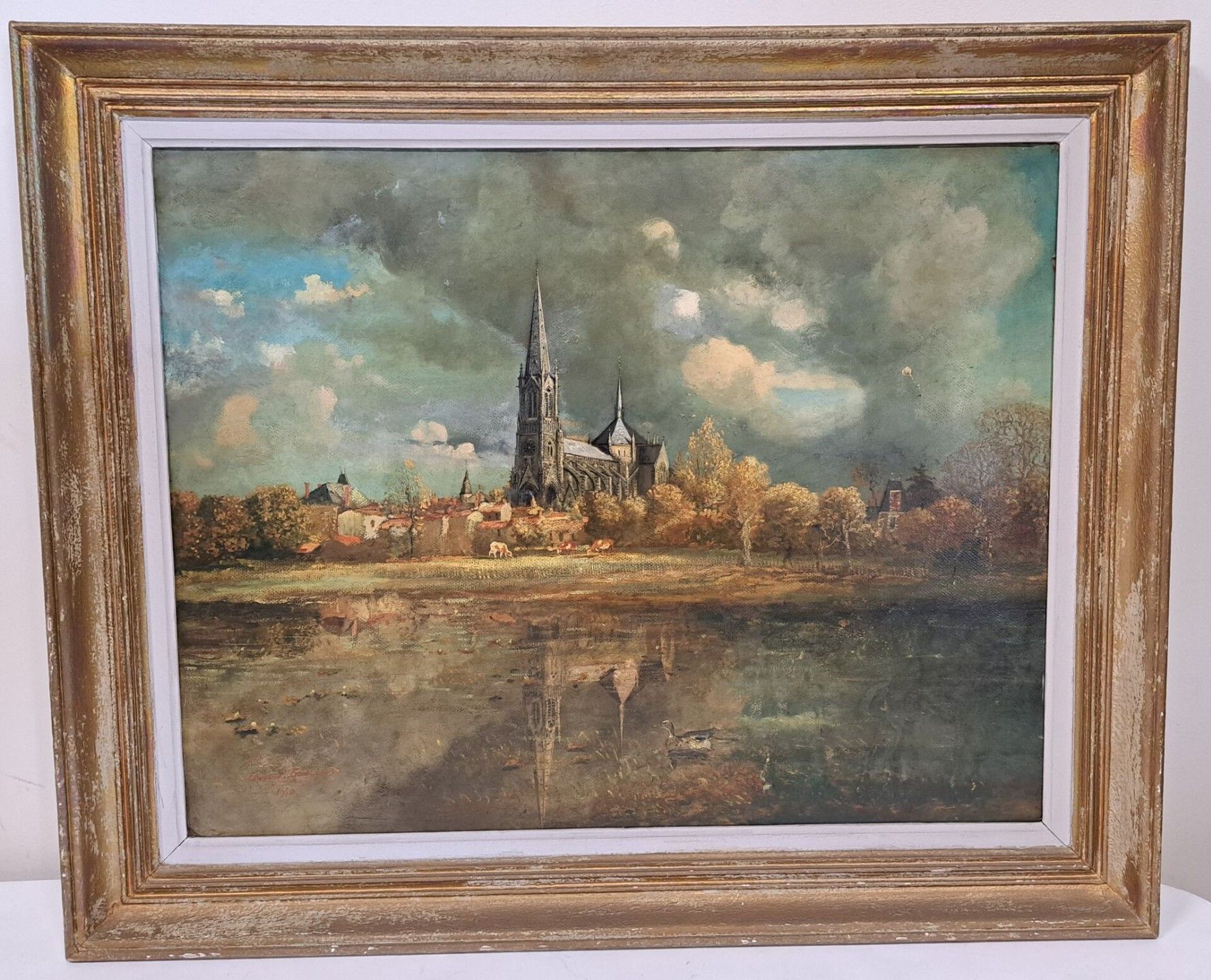BERTREUX Edmond (1911-1991) - View of the church of Trentemoux. Oil on canvas, signed lower left, 59 x 65 cm