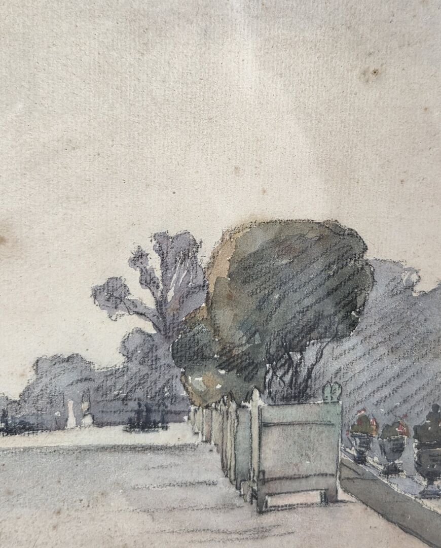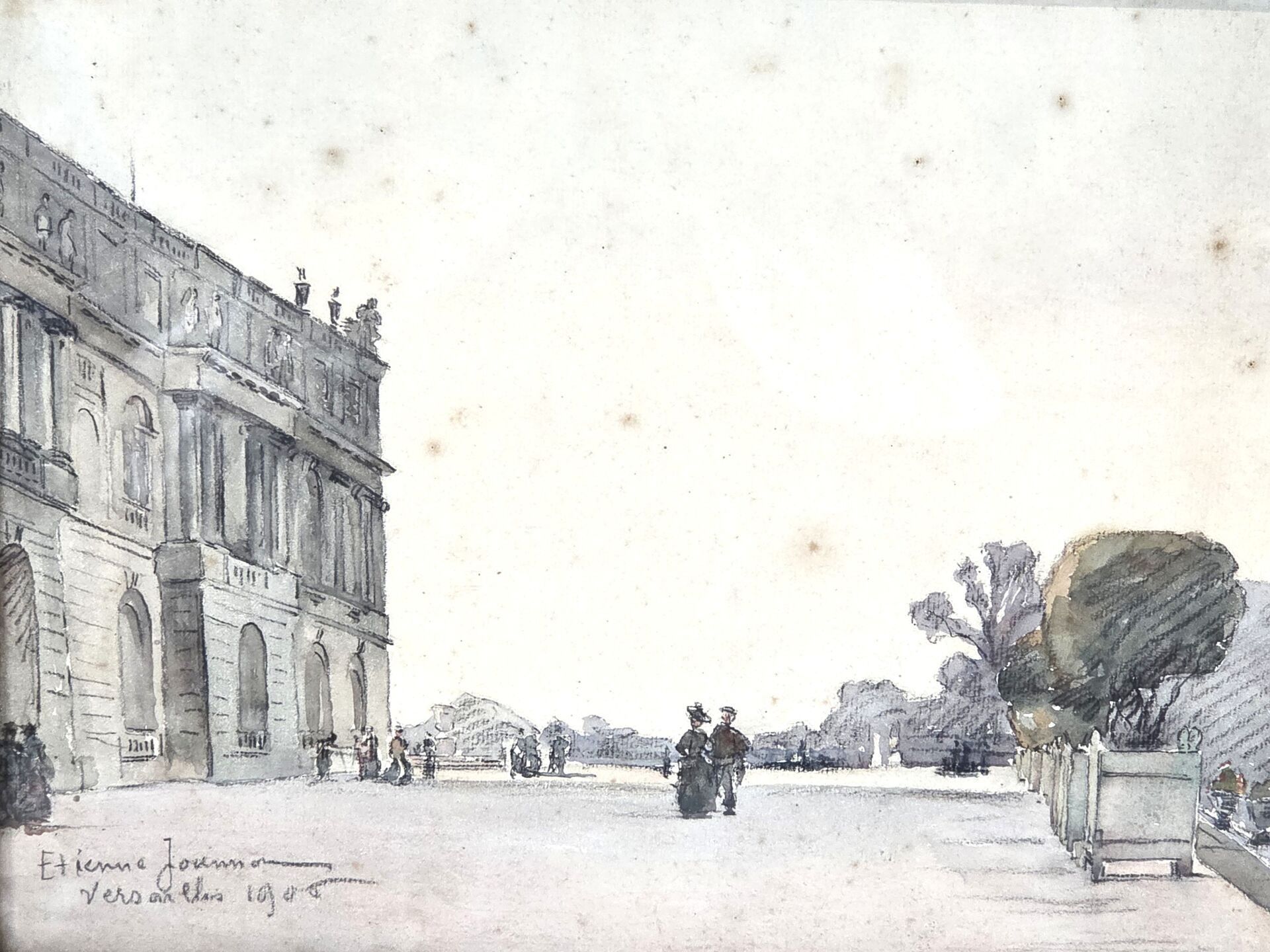 Etienne Albert JOANNON NAVIER (1857-1911) - View of Versailles, watercolour signed lower left and dated 1906 - 25 x 33 cm (foxing)