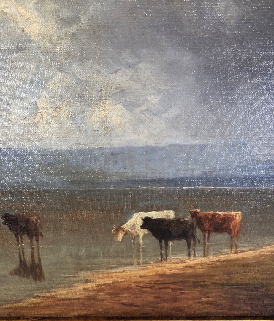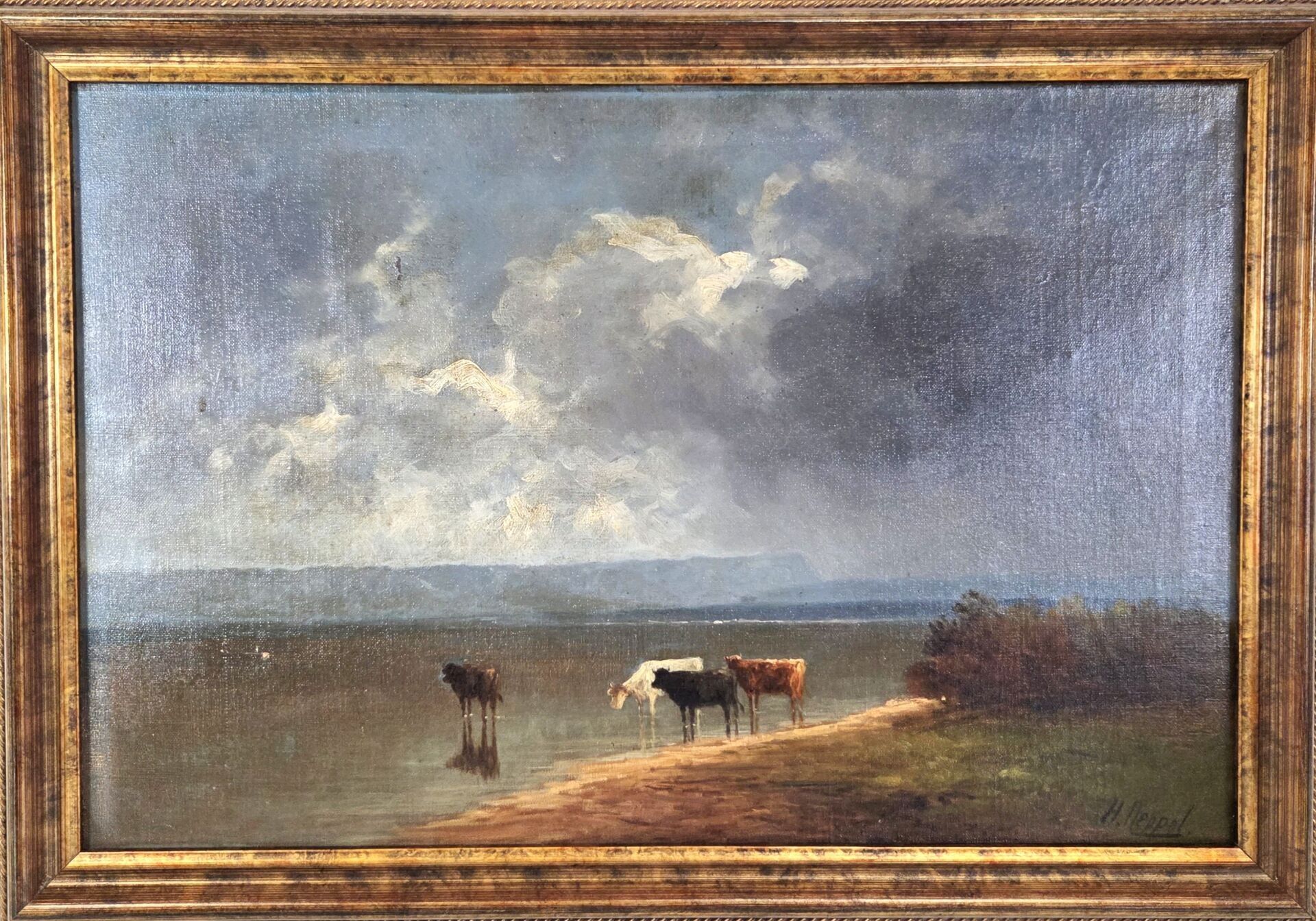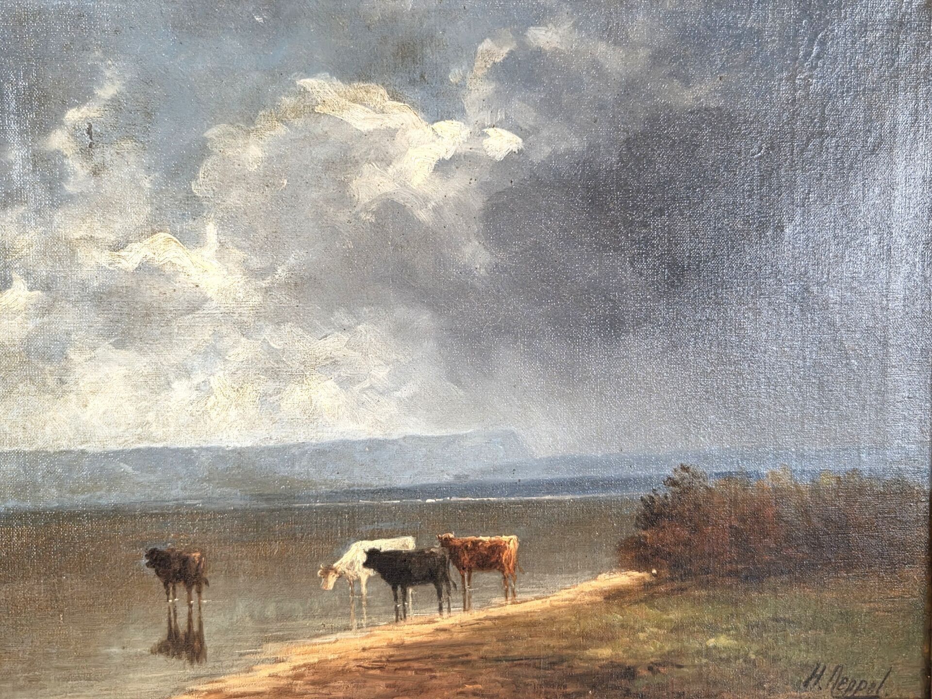 Heinrich NEPPEL (1874-1936), Cows by a lake, oil on canvas, signed lower right, 40 x 60 cm, restoration